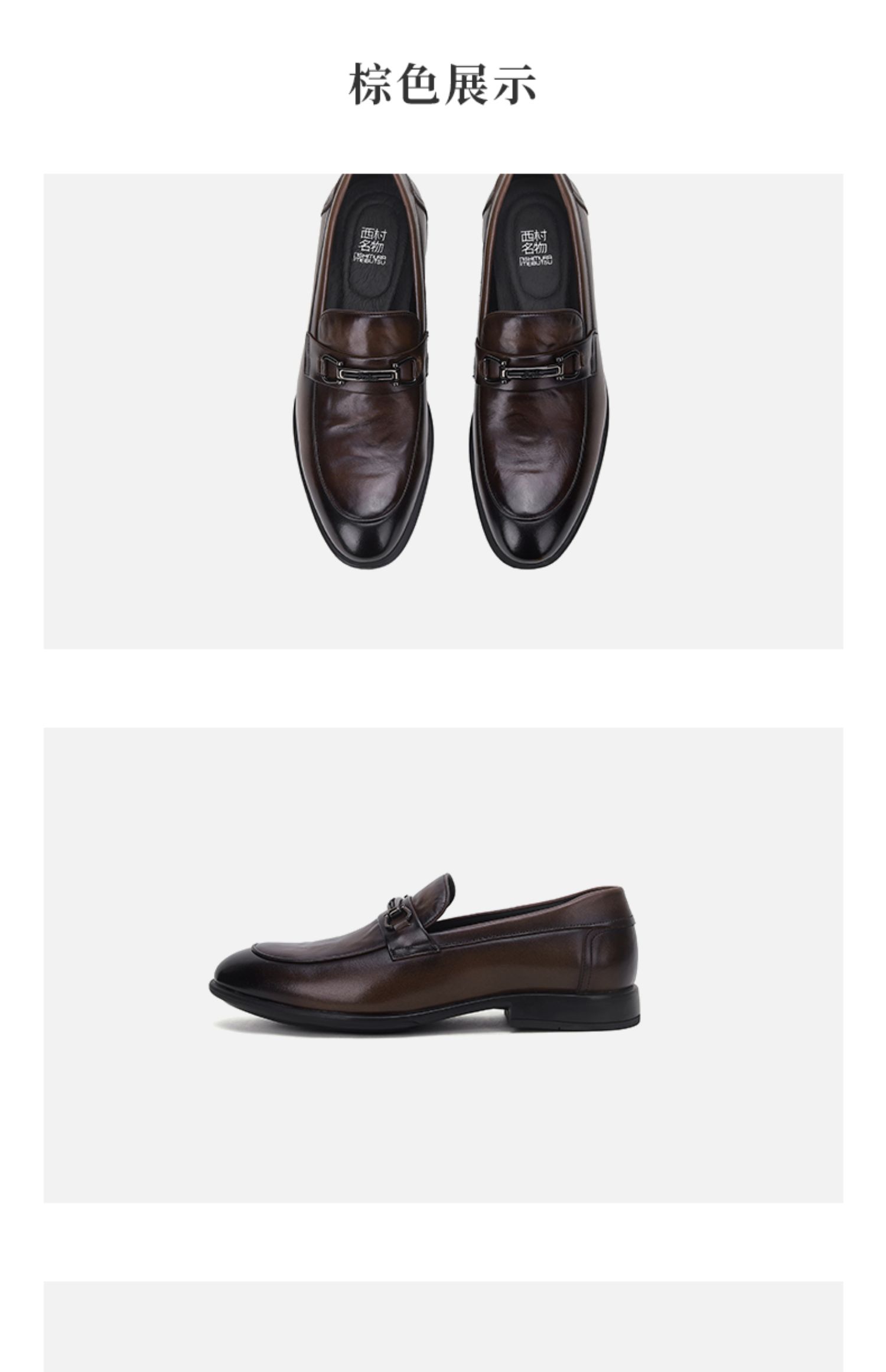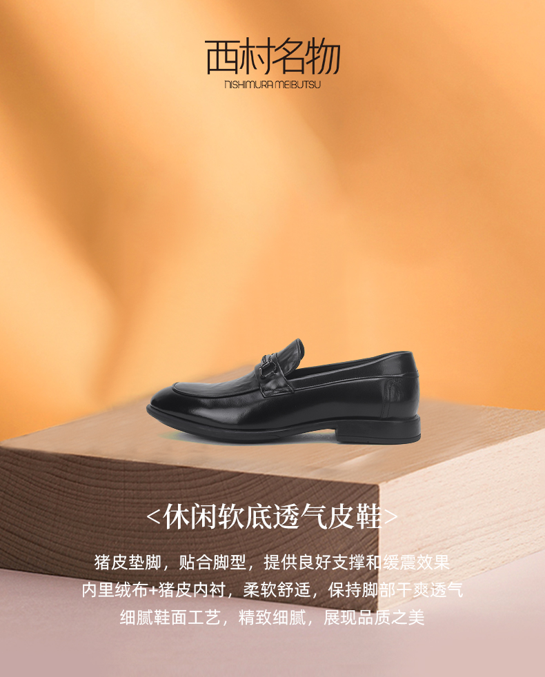 西村名物2024夏季新品真皮软底舒适透气高档亮面搭扣休闲男士皮鞋X14AW13891