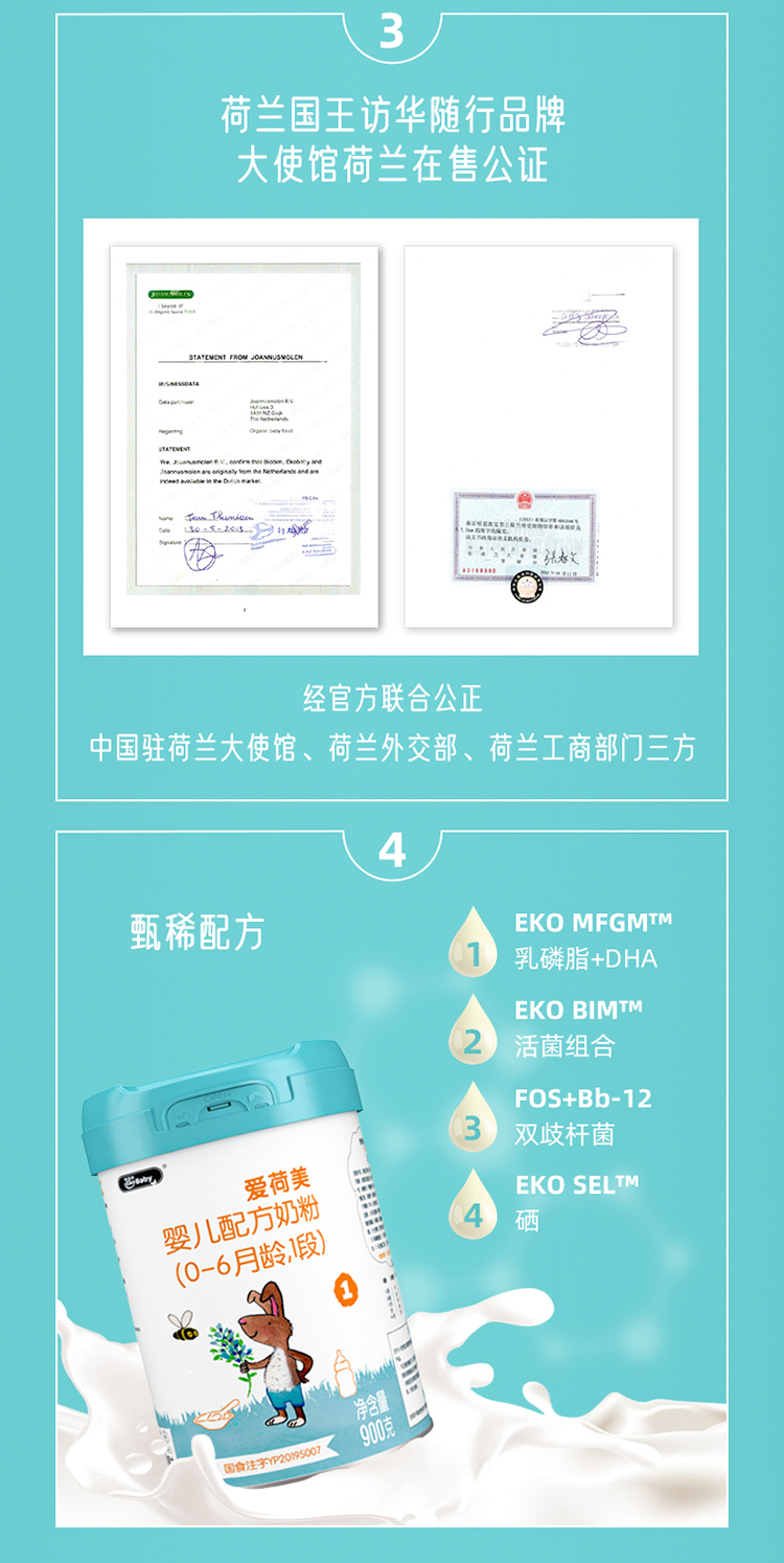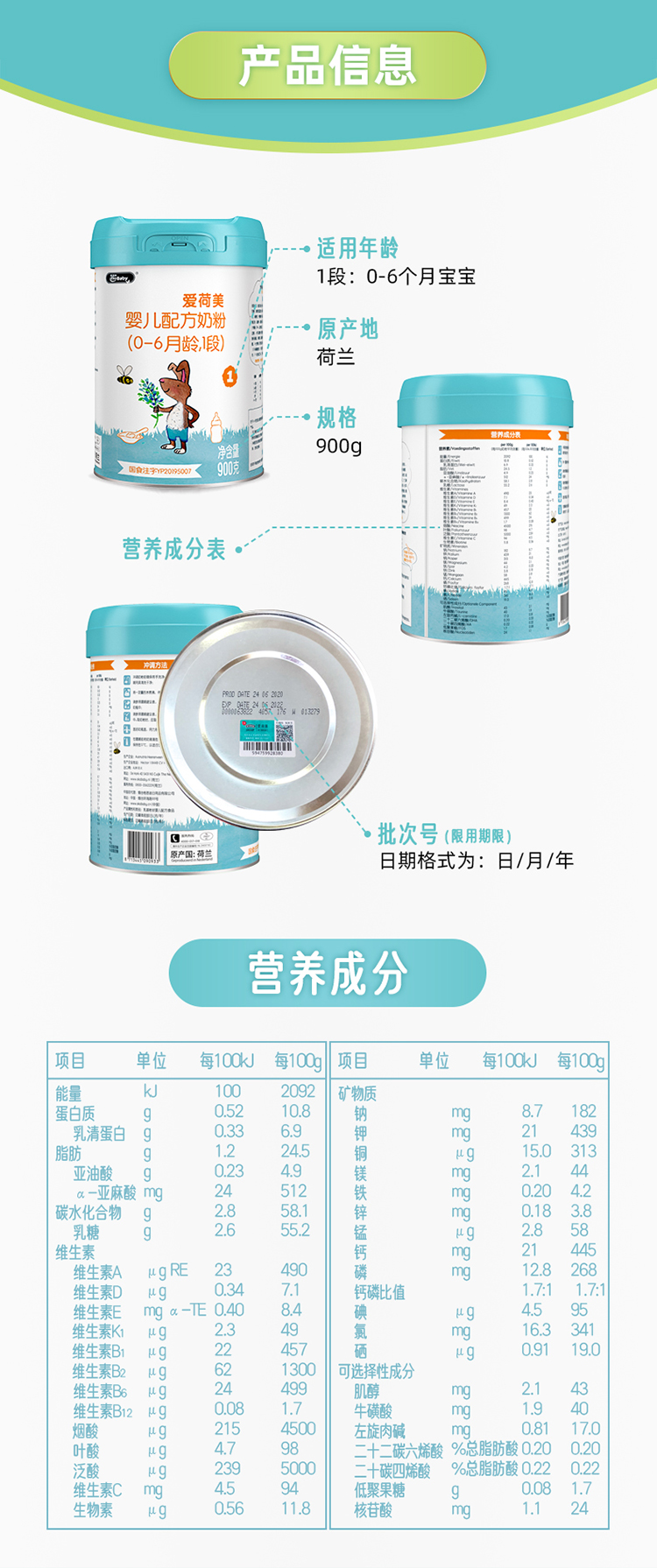 Ekobaby爱荷美婴儿配方奶粉1段900G
