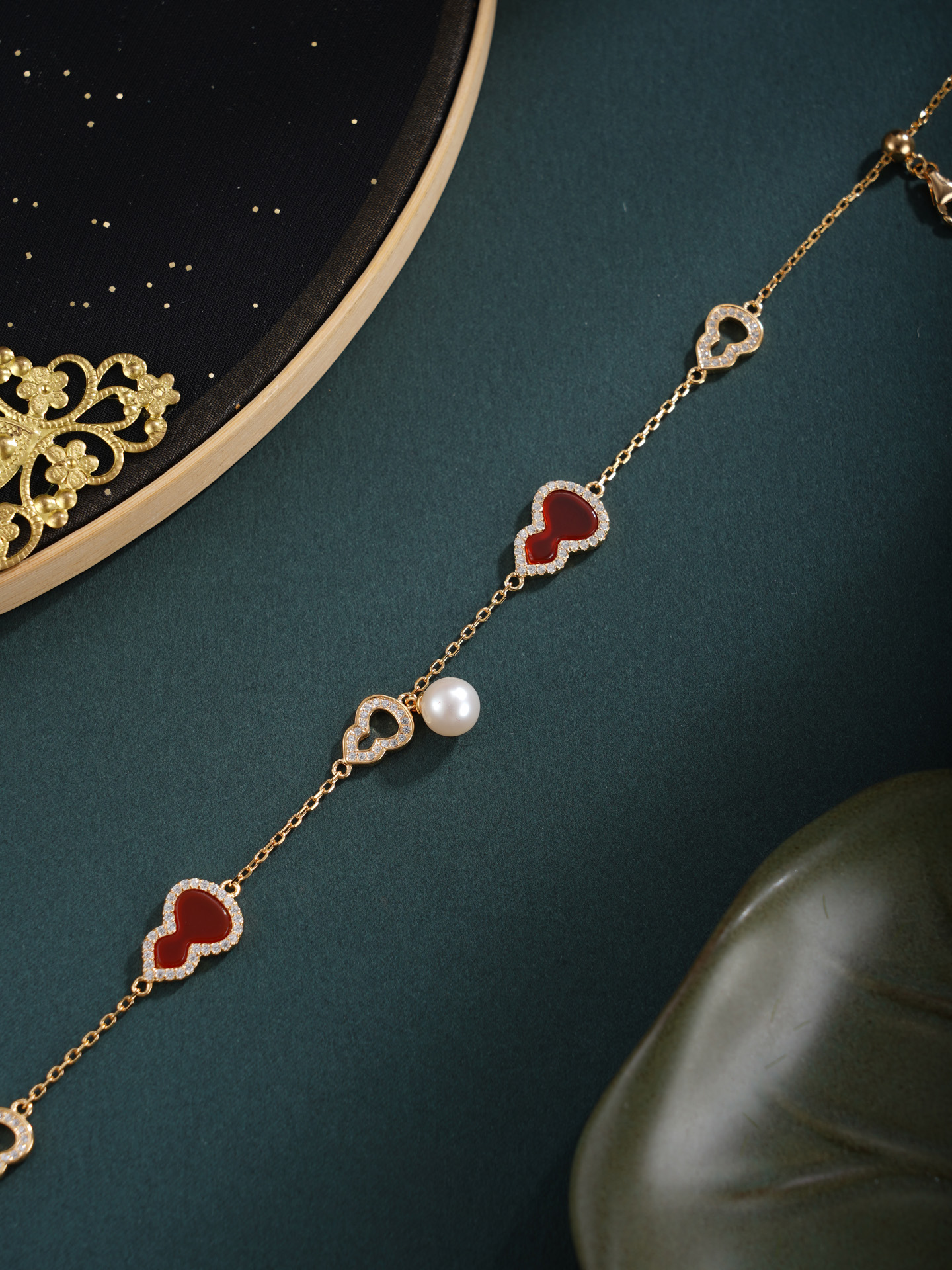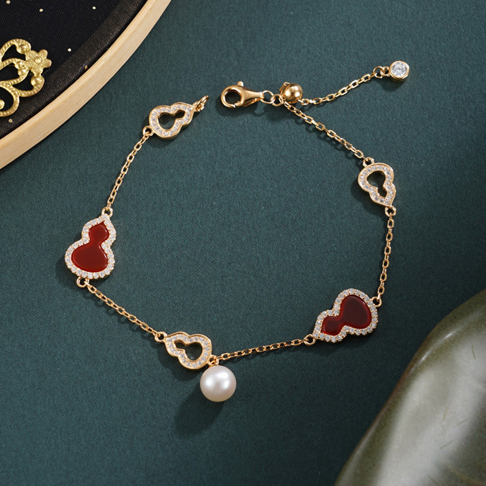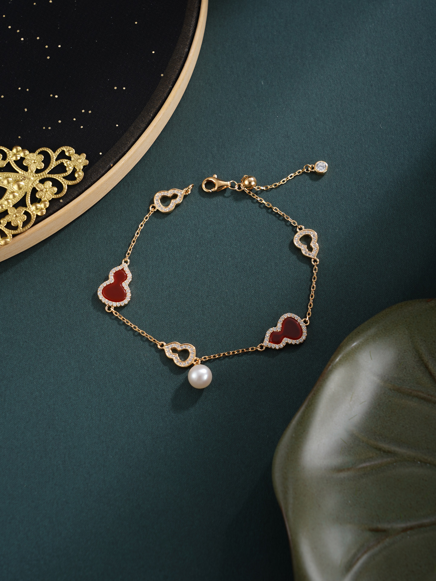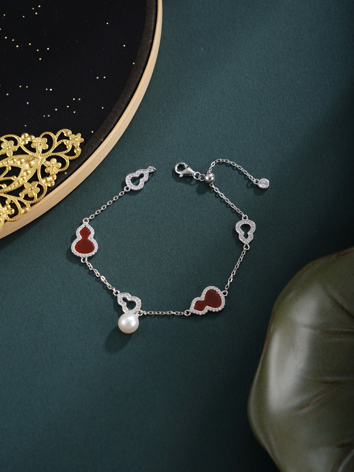 子佩集【福禄欢颜】银S925珍珠惜王妃手链【W6564】双色红葫芦2602