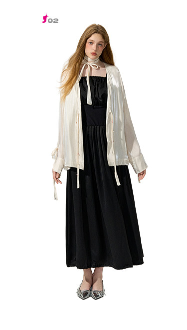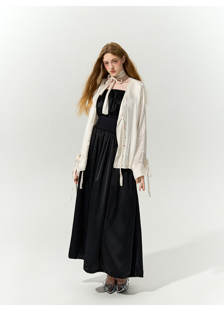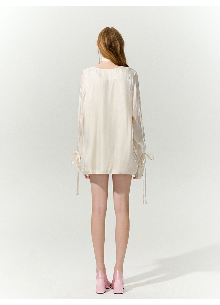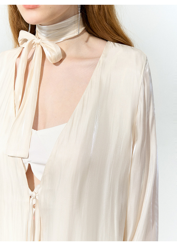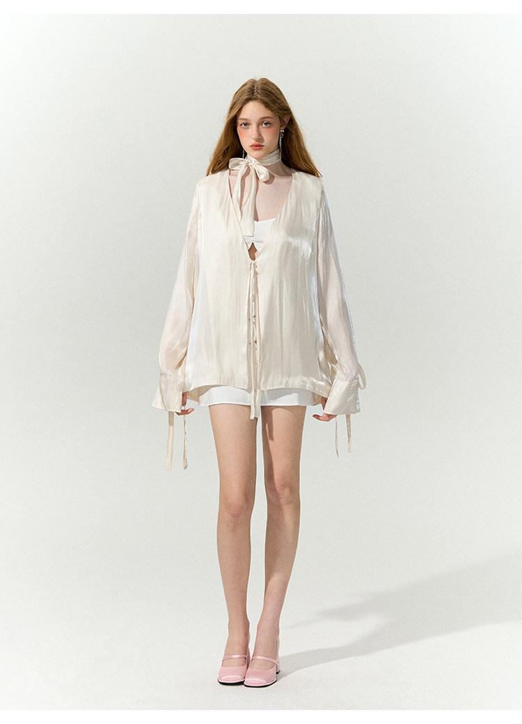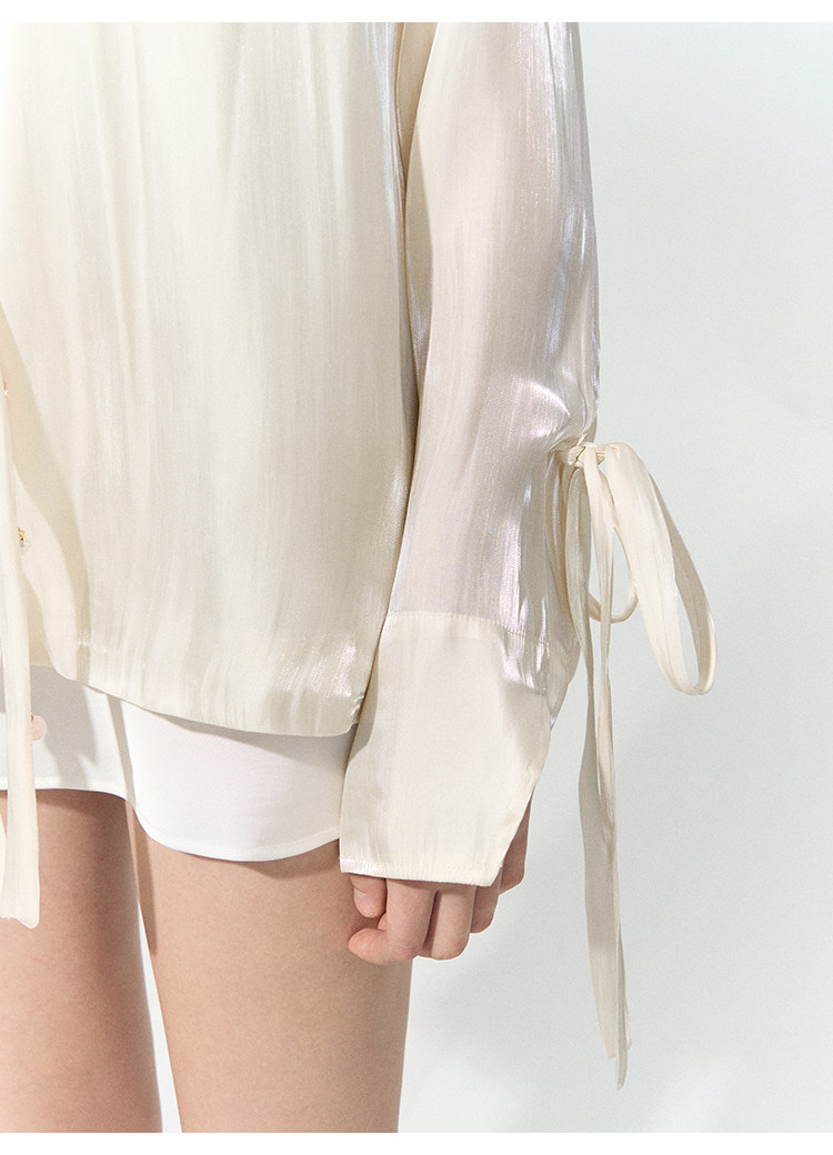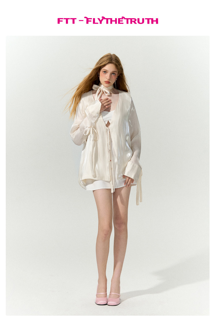 FTT Flythetruth 光影流萤 欧若风绑带白衬衫女上衣复古飘带衬衣