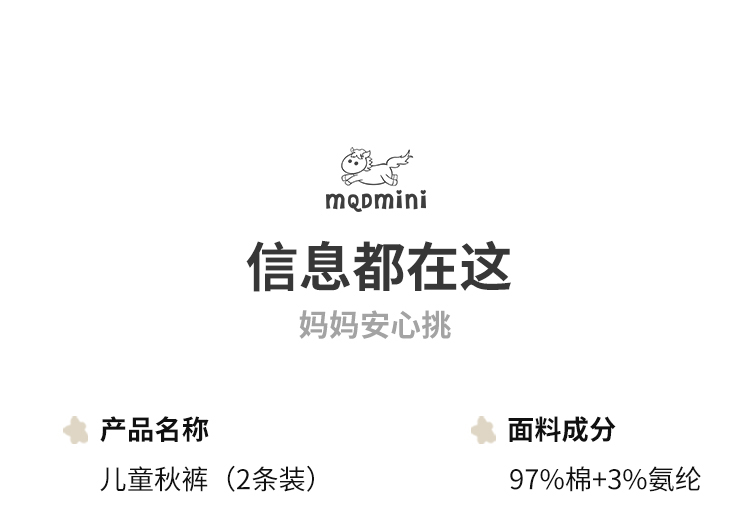 【2件装】【MQDmini】【80-130】男女童冬款保暖秋裤
