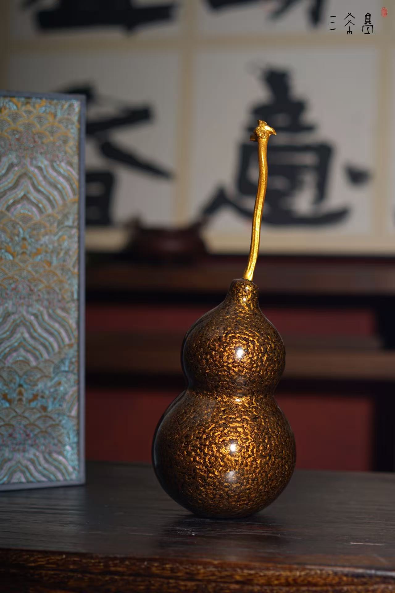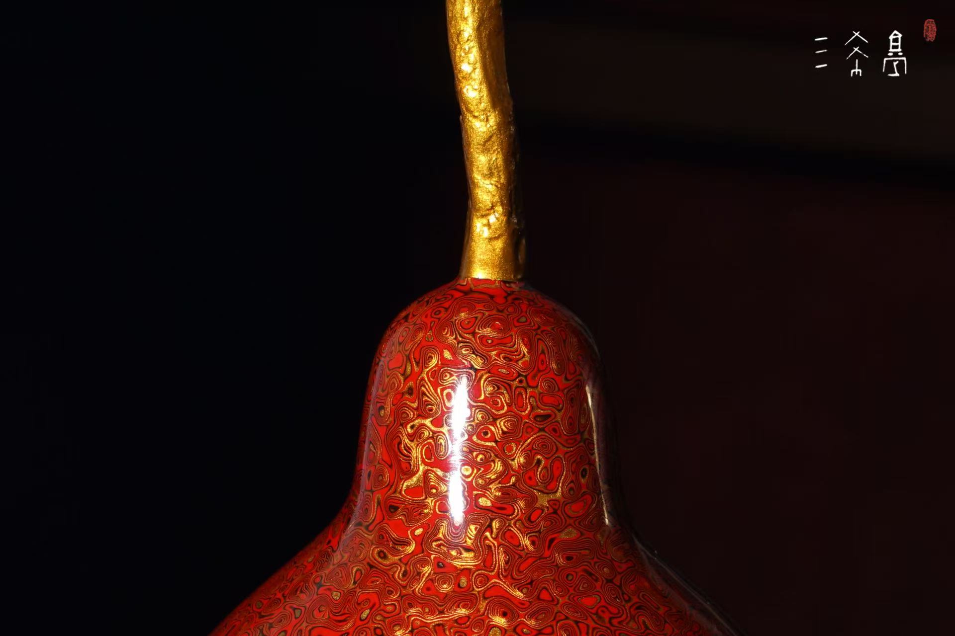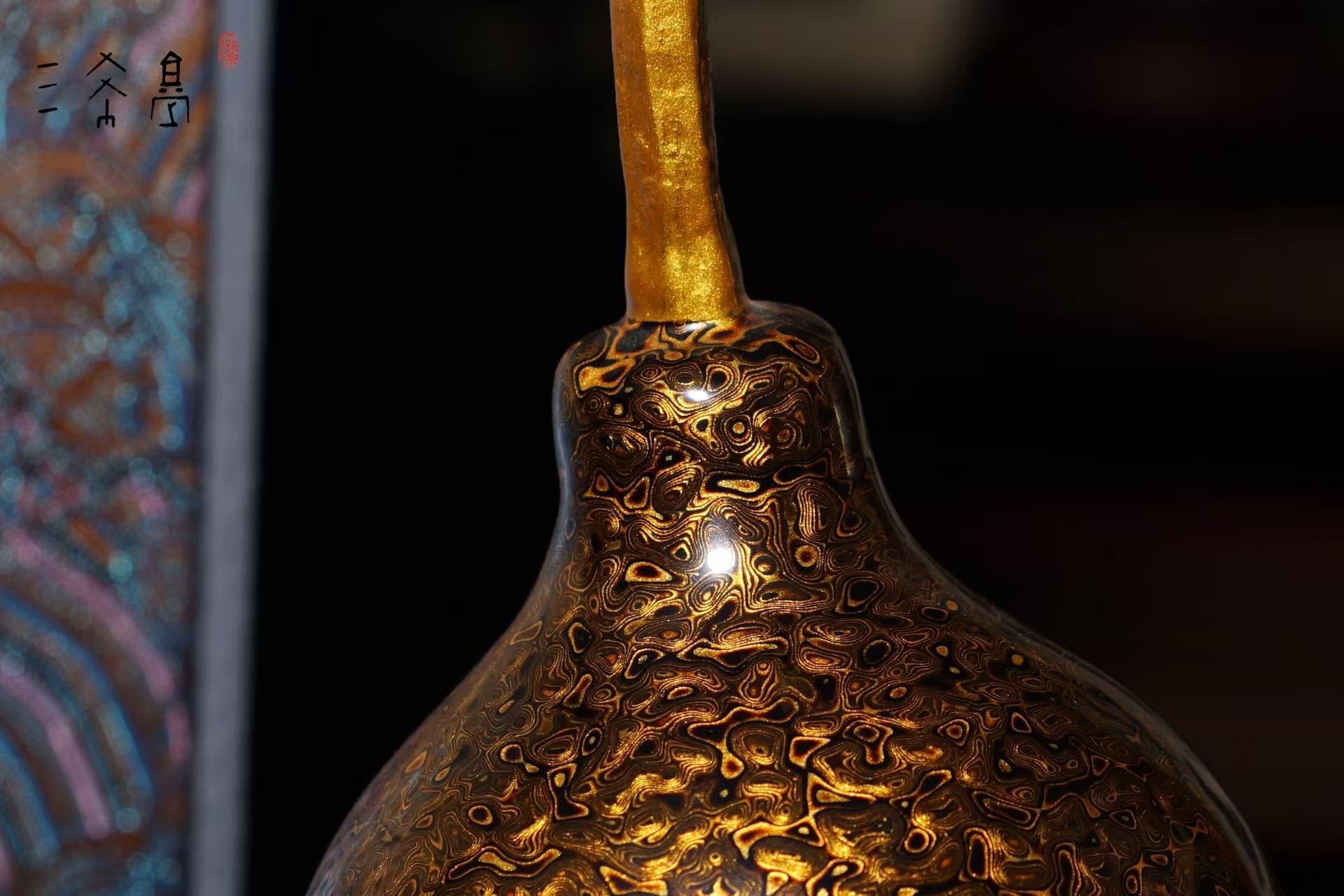 为今年新年制作的作品,个头很大,非常有意思,做了快一年,用的天然的葫芦做胎,外面刷了几十层大漆,弧面很难刷,只做了5只