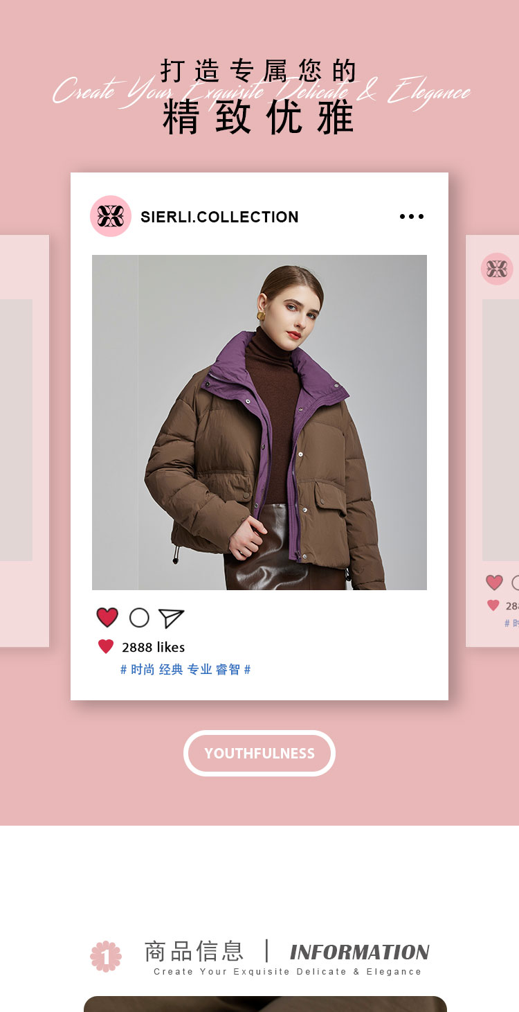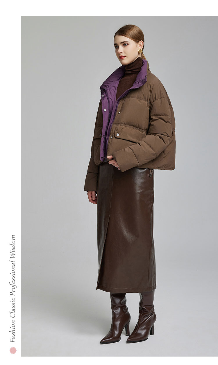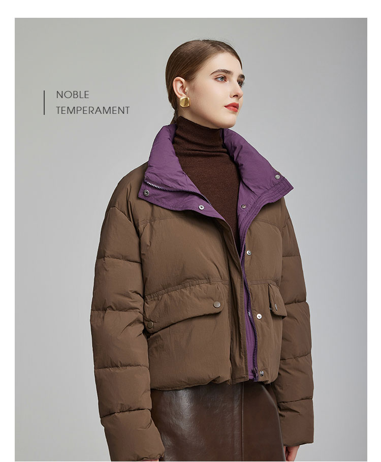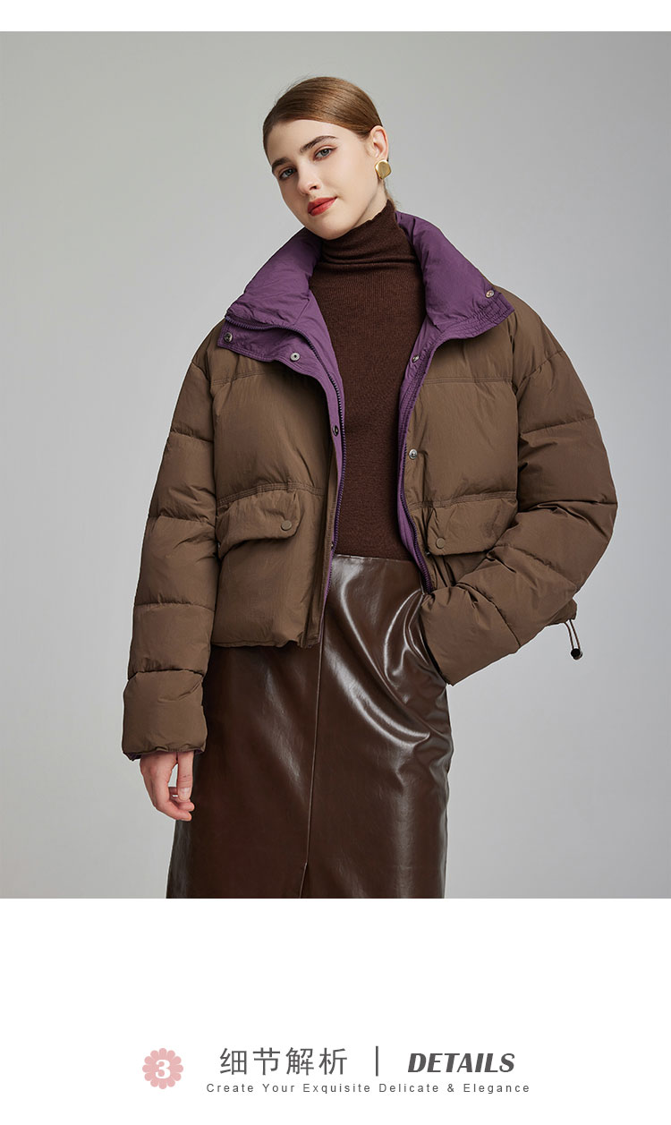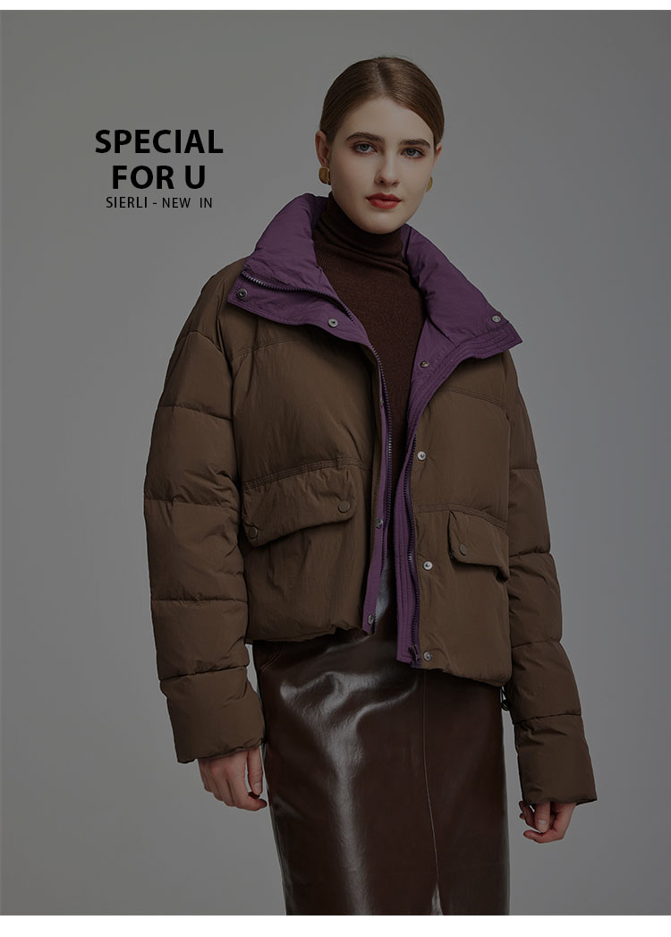 NR014斯尔丽23冬季宽松显瘦小个子内里撞色立领减龄保暖白鸭绒羽绒服