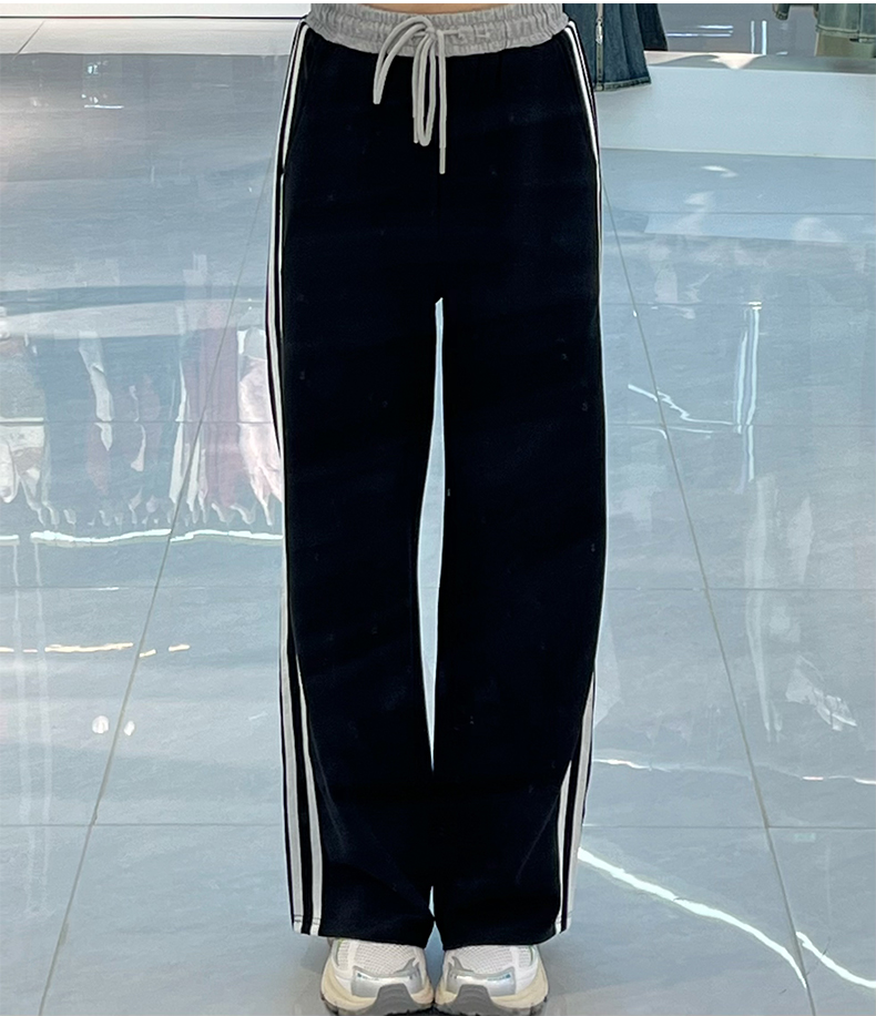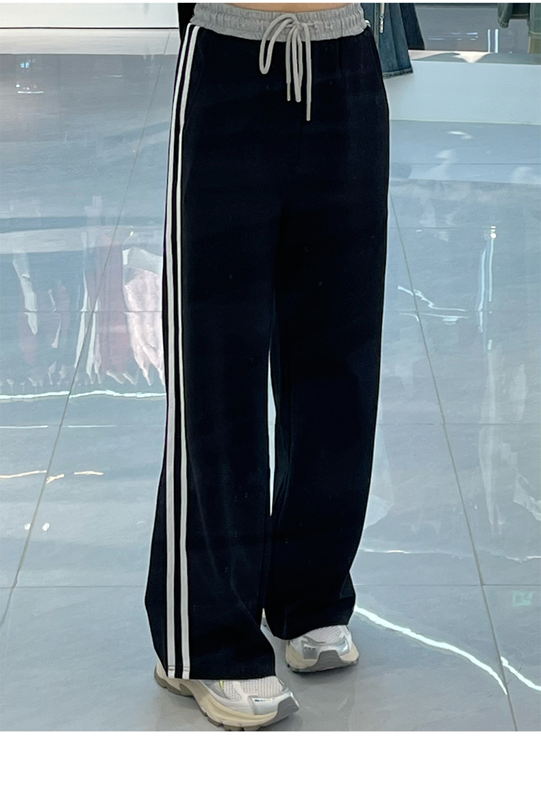 P&X春秋季美式运动裤女高腰垂感宽松直筒休闲卫裤 824309286 黑色