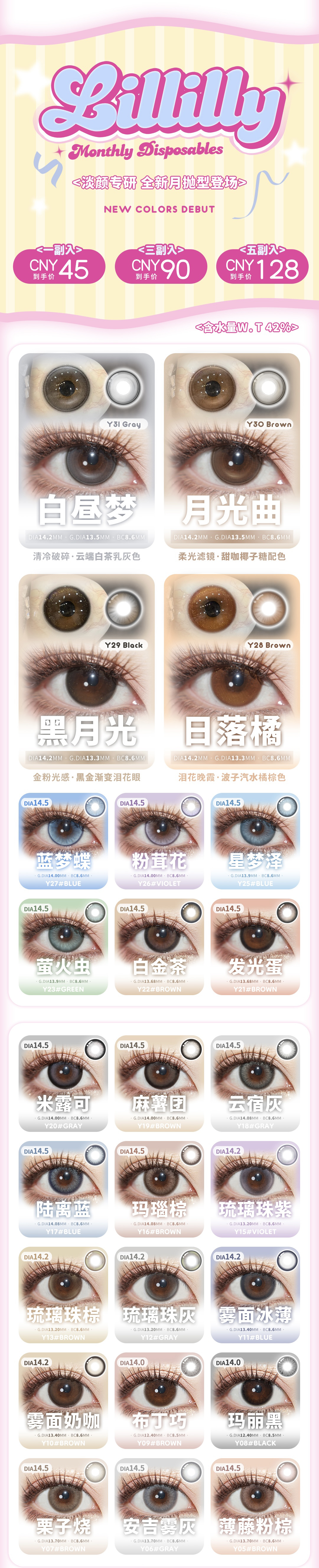 【活动】Lillilly月抛 新品 白昼梦/月光曲/黑月光/日落橘 爆款 蓝梦蝶/星梦泽/萤火虫/白金茶/麻薯团/陆离蓝/玛瑙棕/琉璃珠系列/雾面冰薄/玛丽黑/安吉雾灰/薄藤粉棕 混血日常 显色美瞳
