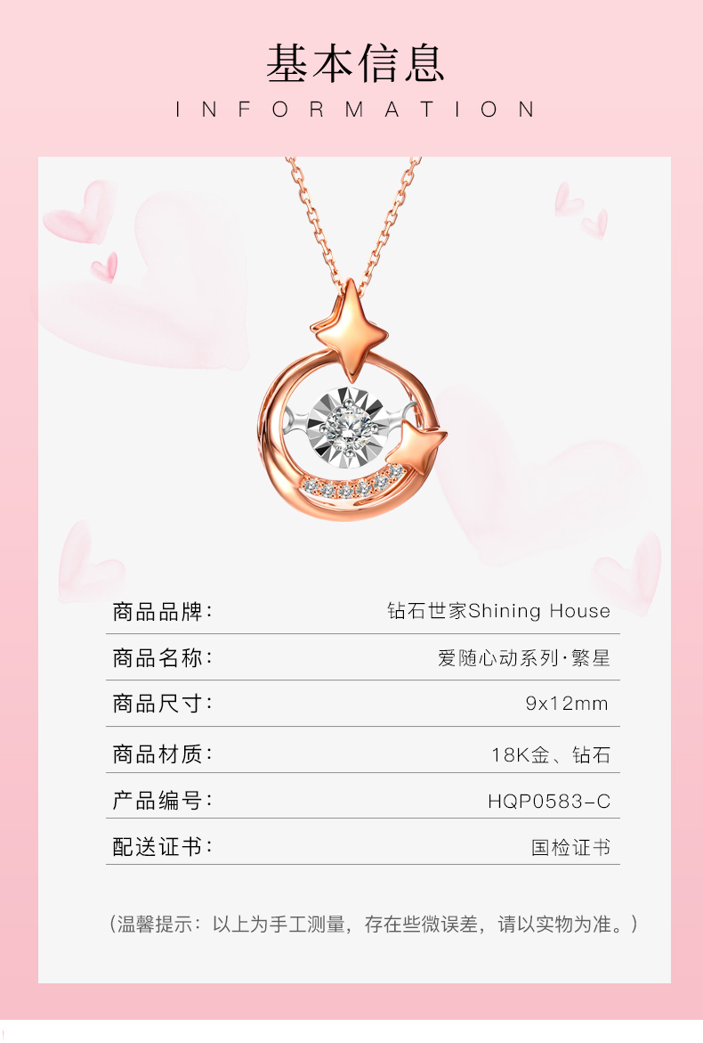 【年终盛典秒杀】A4钻石世家 爱随心动-星辰系列 18K金钻石吊坠 女款时尚吊坠钻石项链女 送女友(可搭配项链购买)