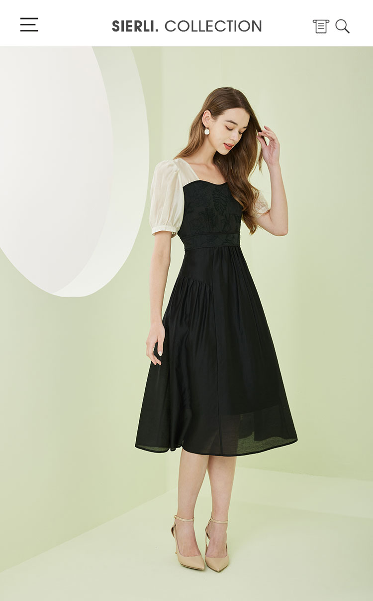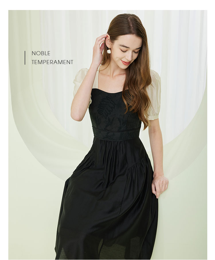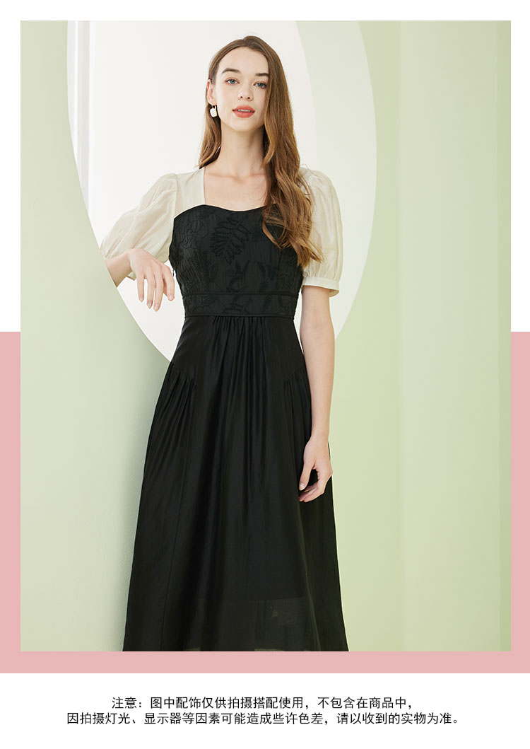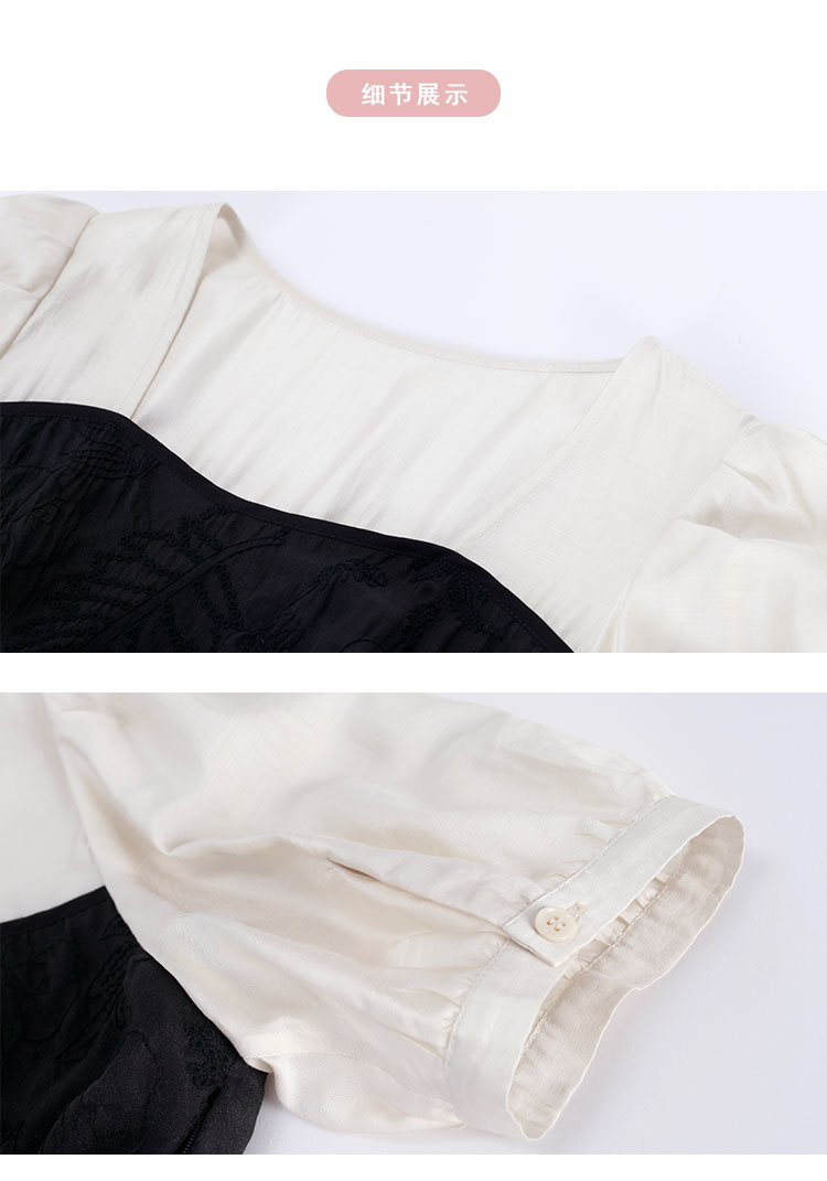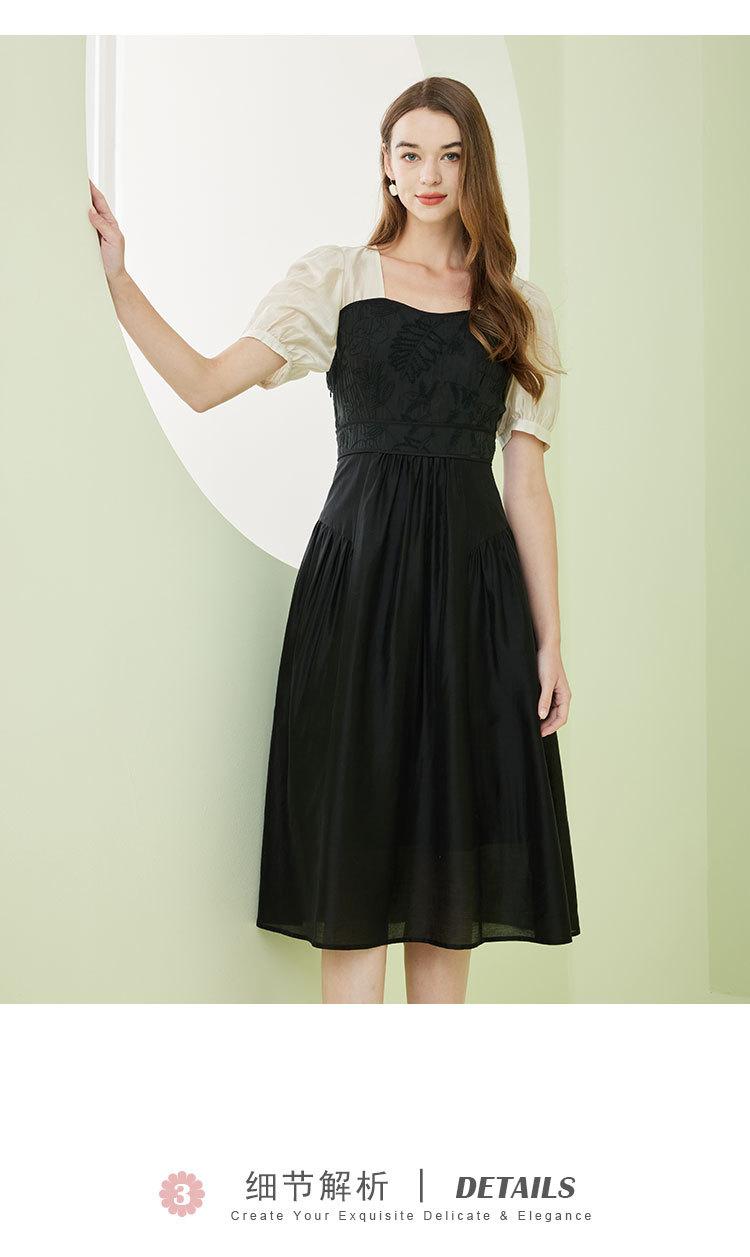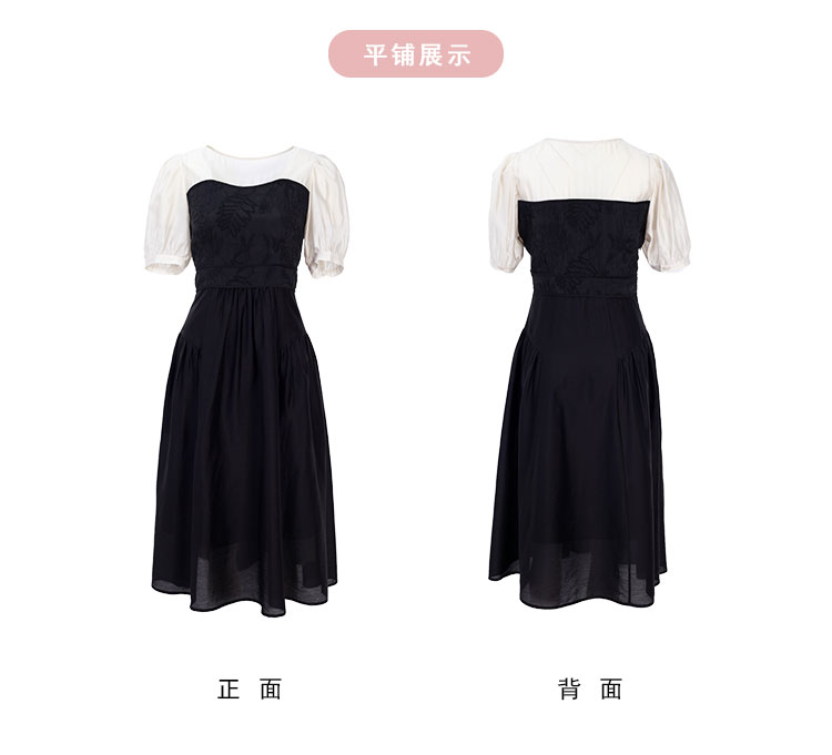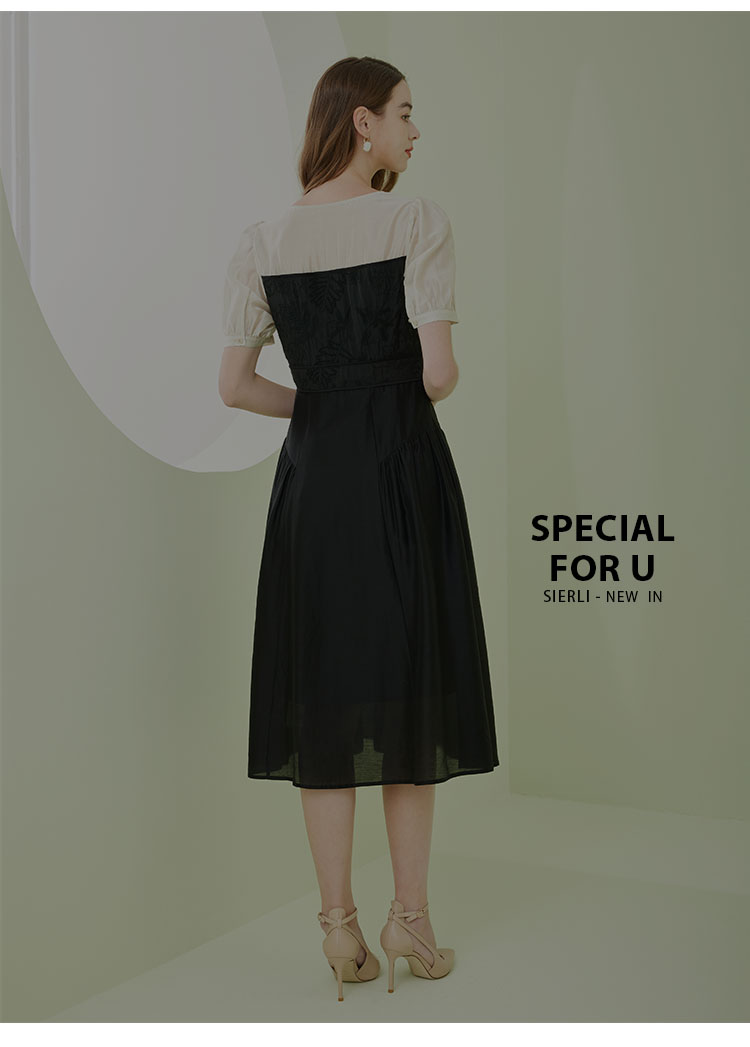 NF8A7斯尔丽瑟俪2023夏季新款法式赫本风高级感短袖双色拼接连衣裙