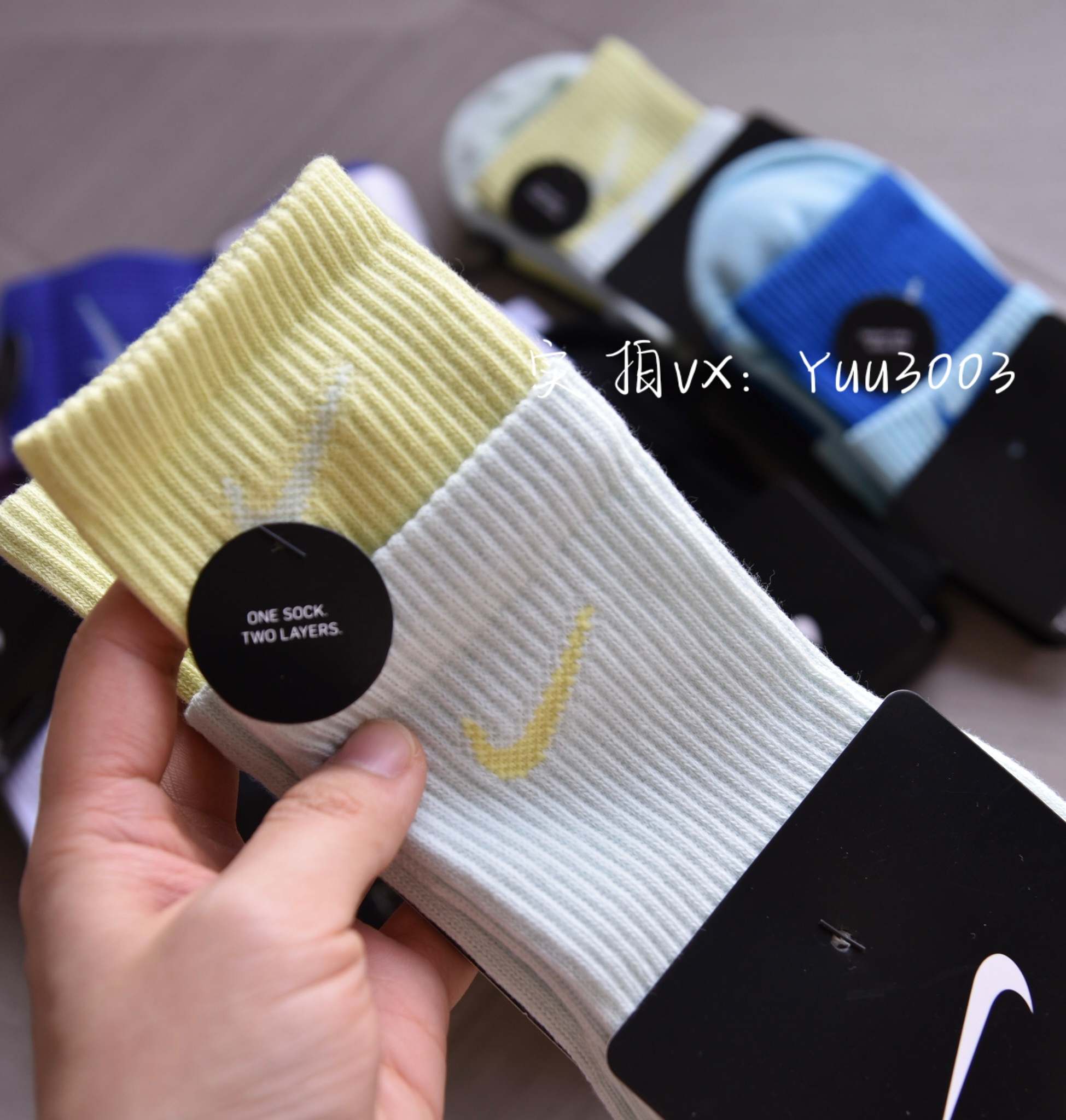 NIKE 专柜款,双层假两件棉袜,