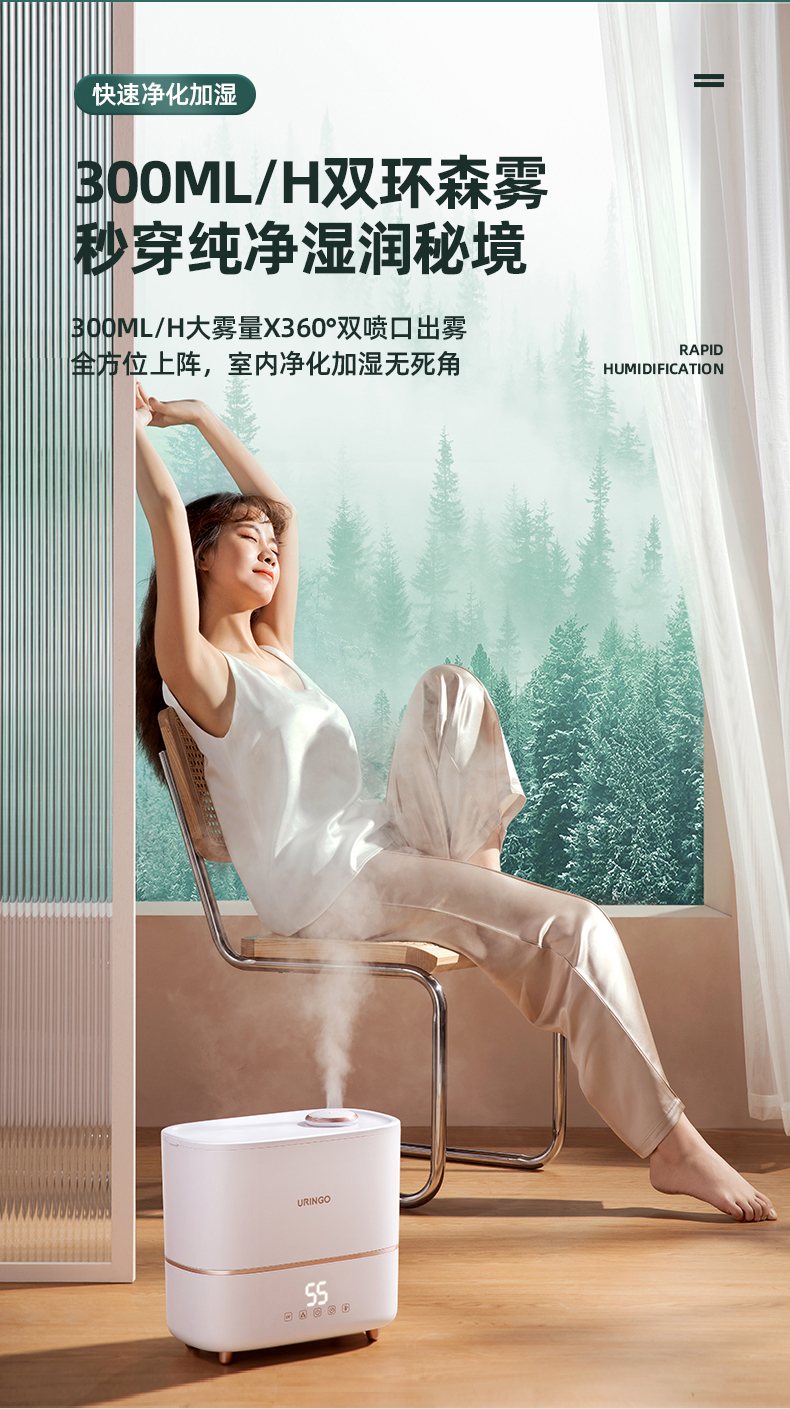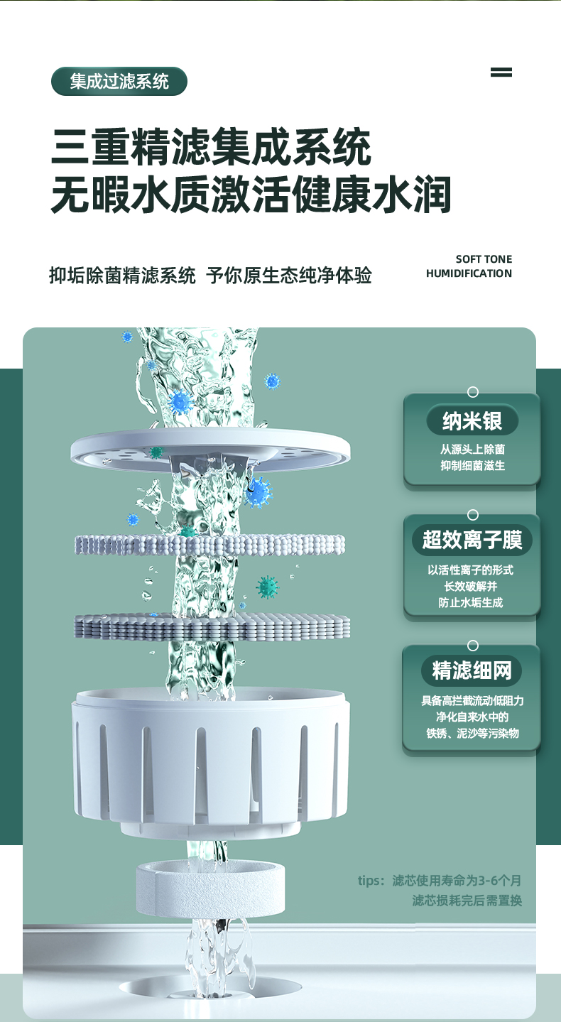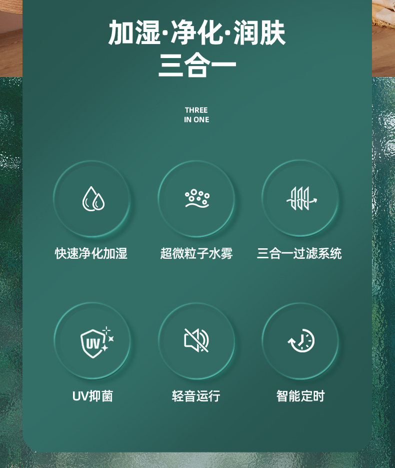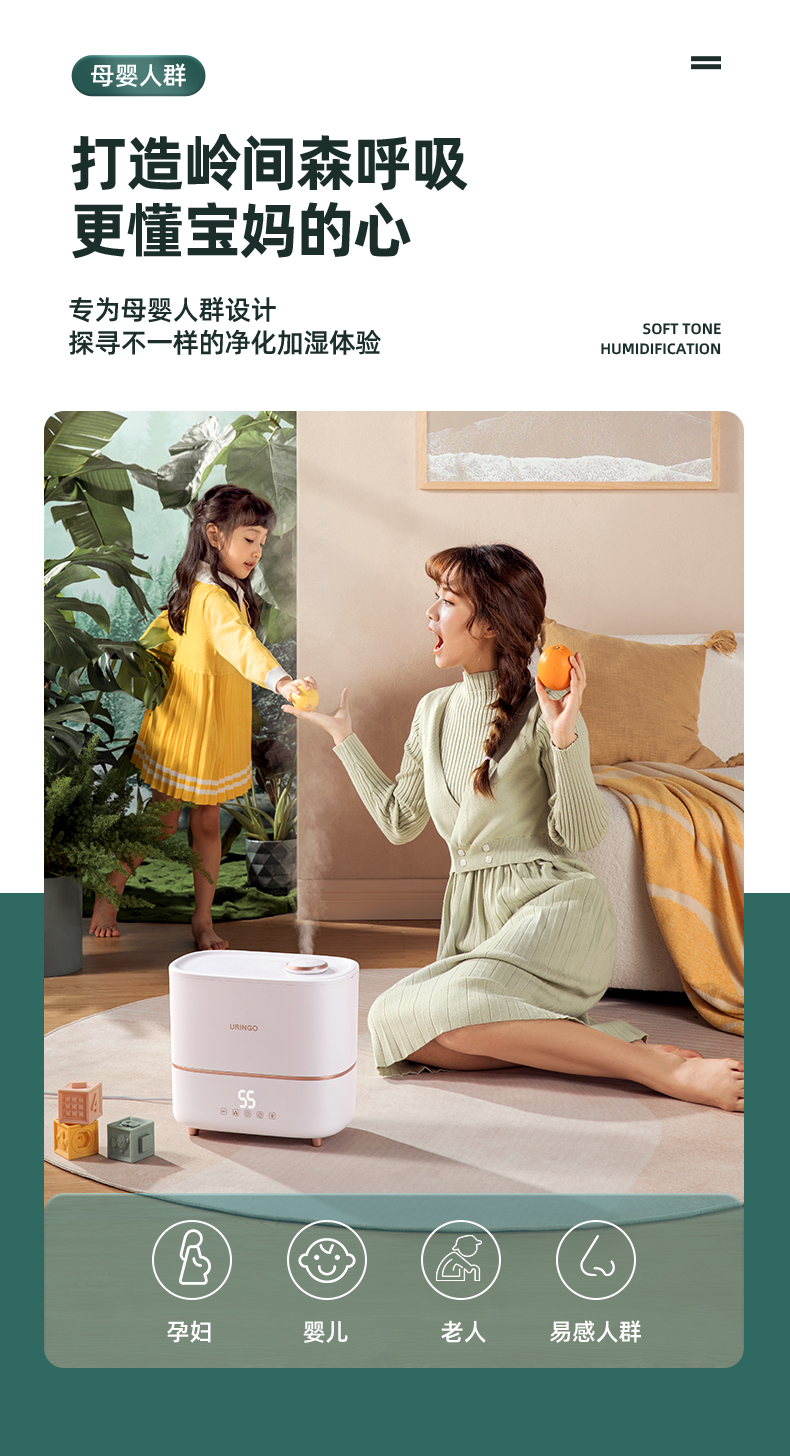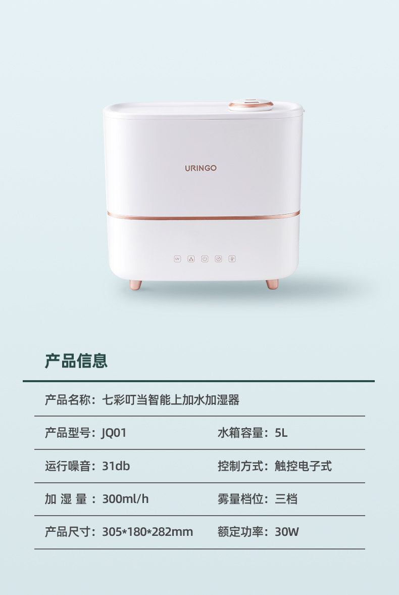 【纯净细雾三重精滤】七彩叮当智能加湿器净化/加湿/润肤三合一UVC双重chu菌12H智能定时静音/易清洗母婴适用