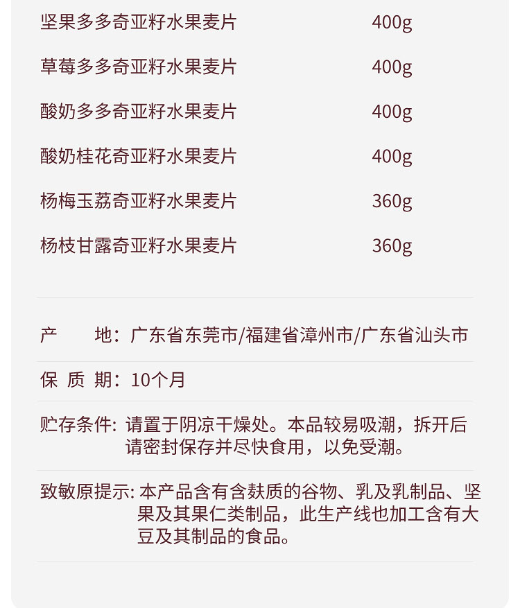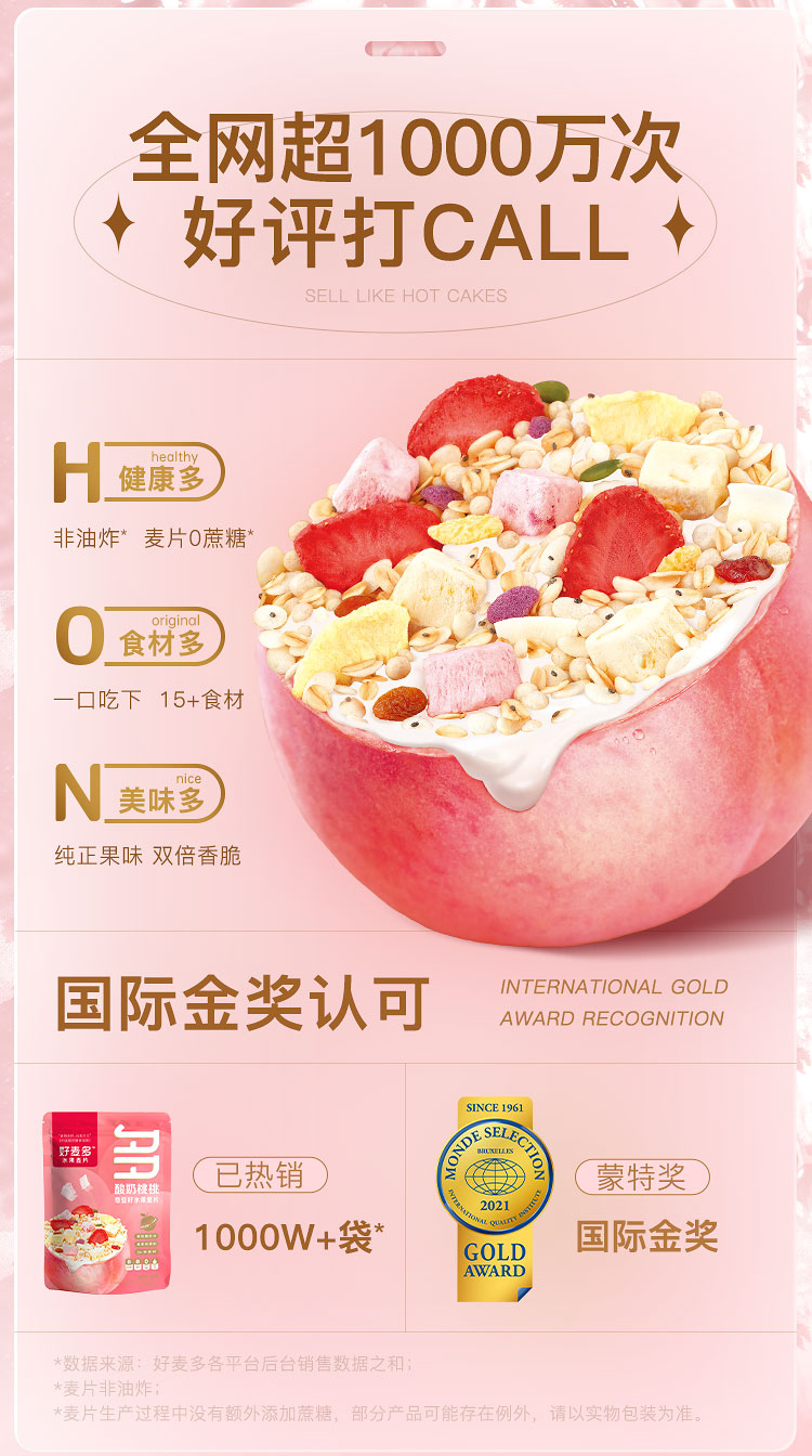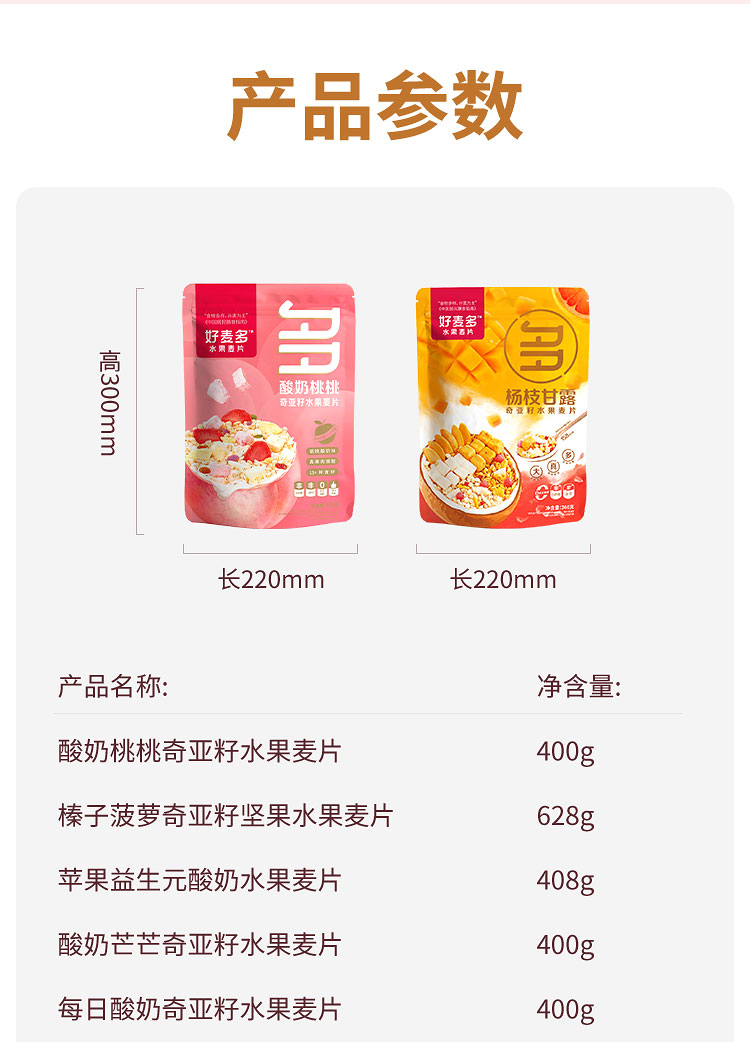 好麦多 水果麦片 桃桃/酸奶/菠萝百香果/坚果400g