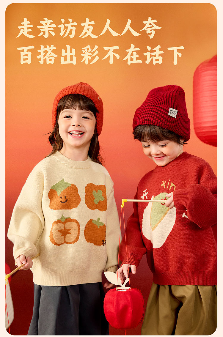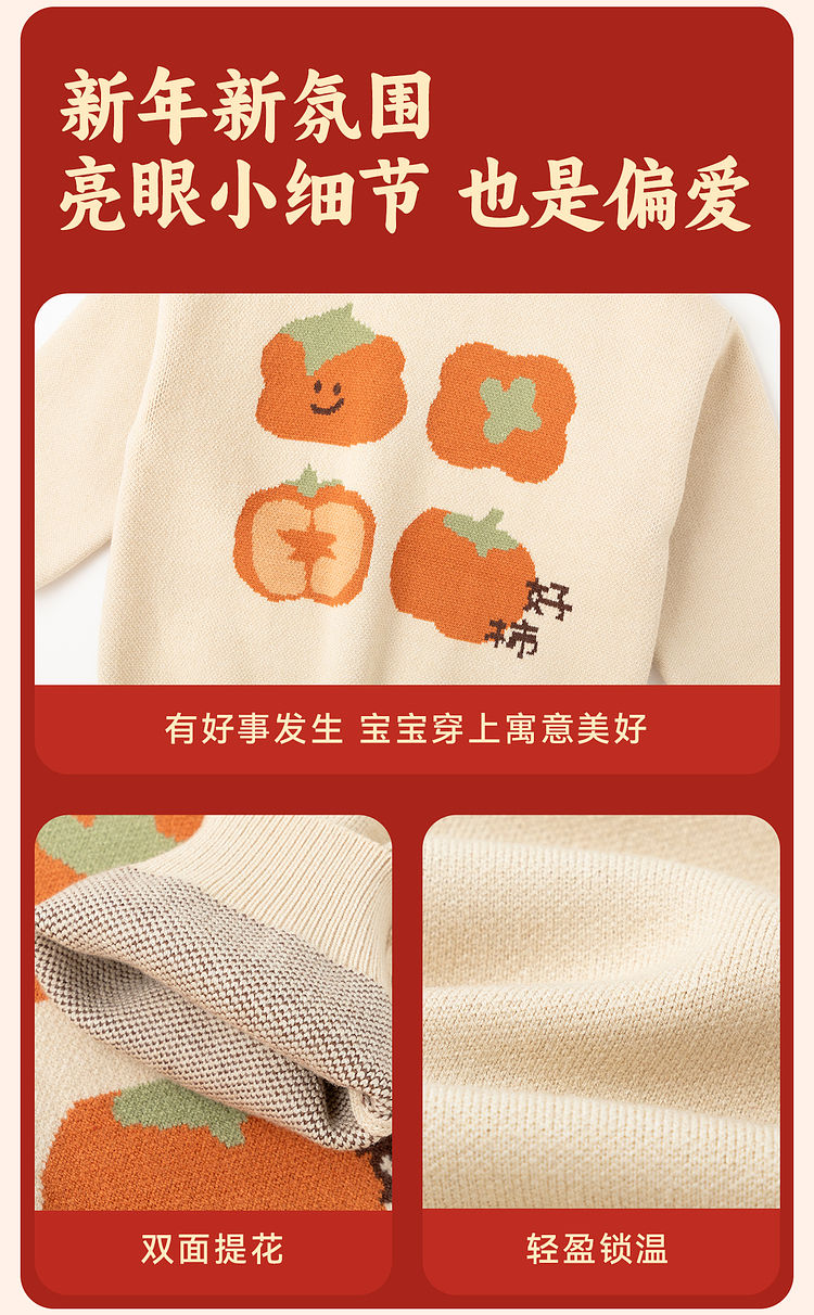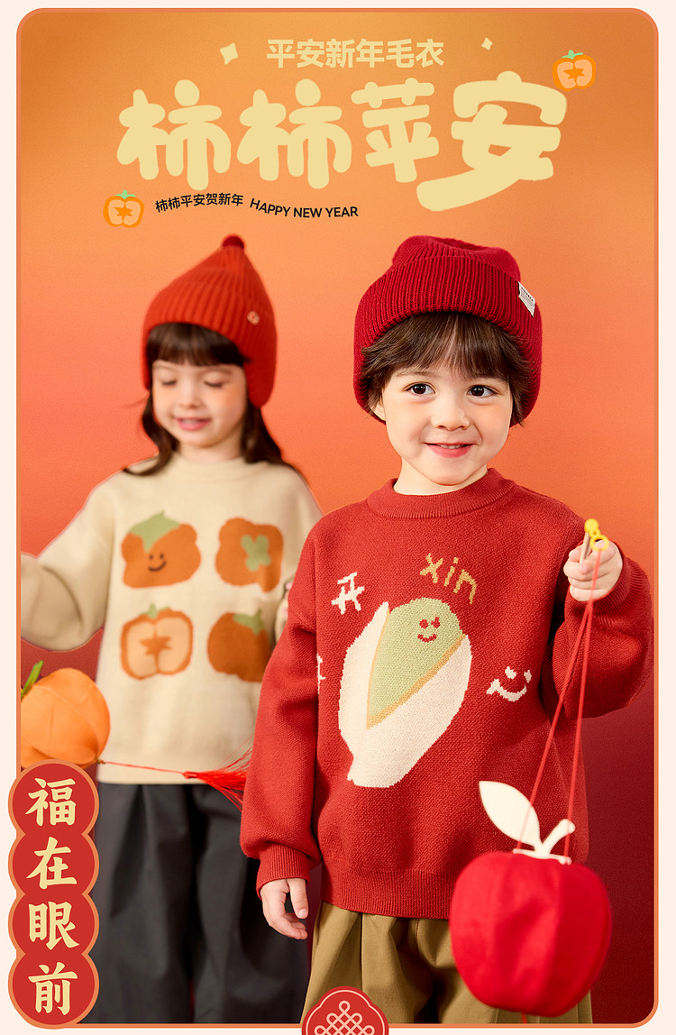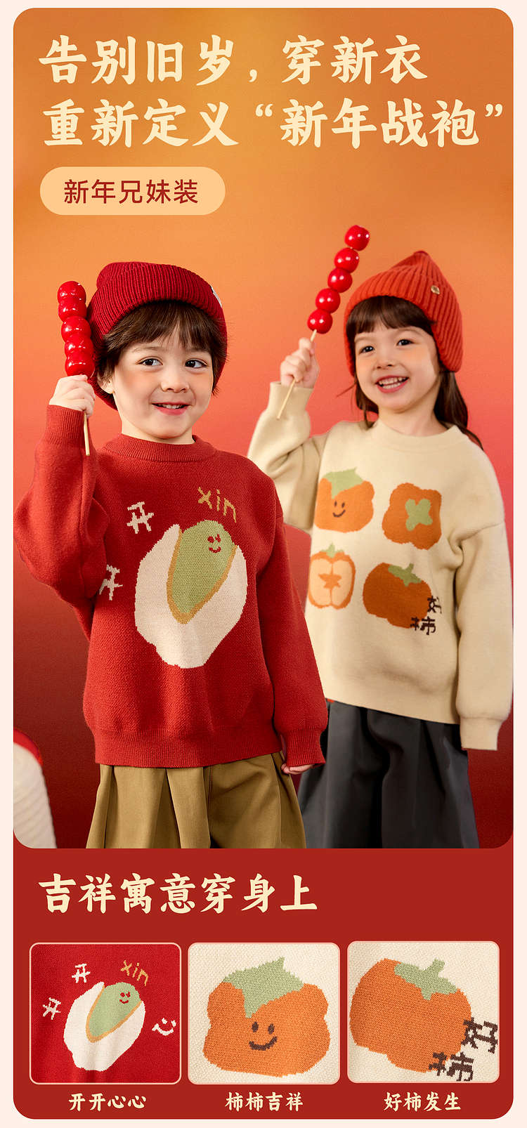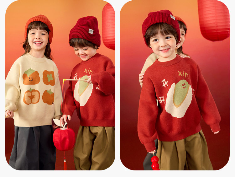 嘟嘟家男童毛衣儿童新年拜年服宝宝冬季上衣国风童装女童过年衣服