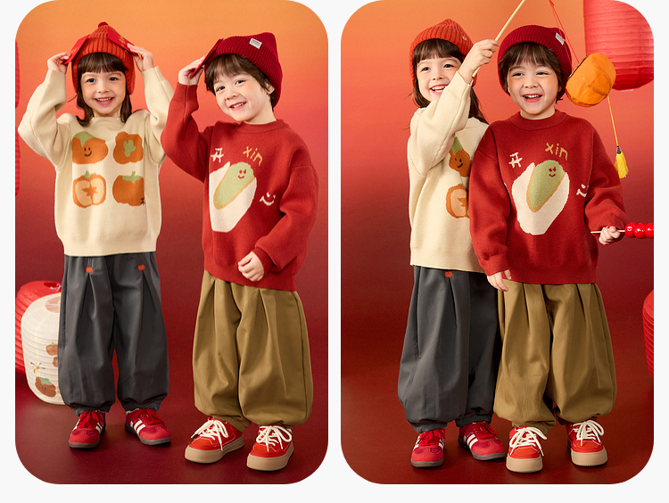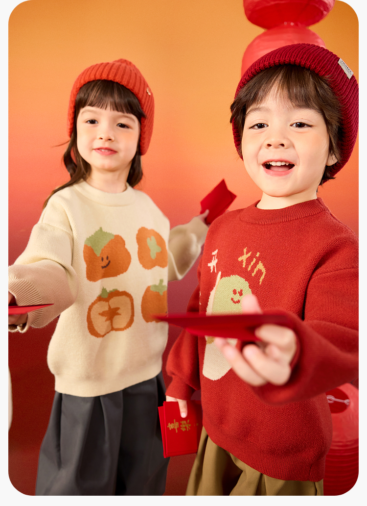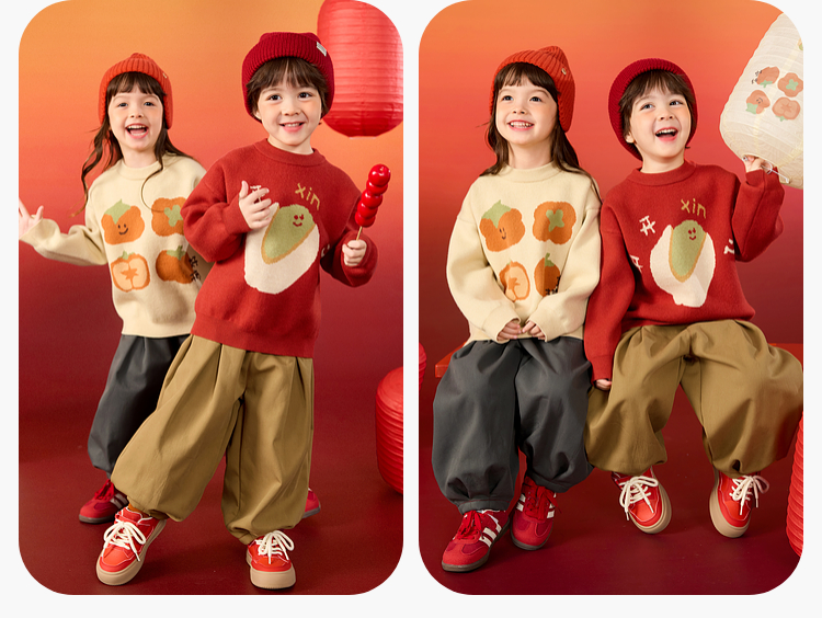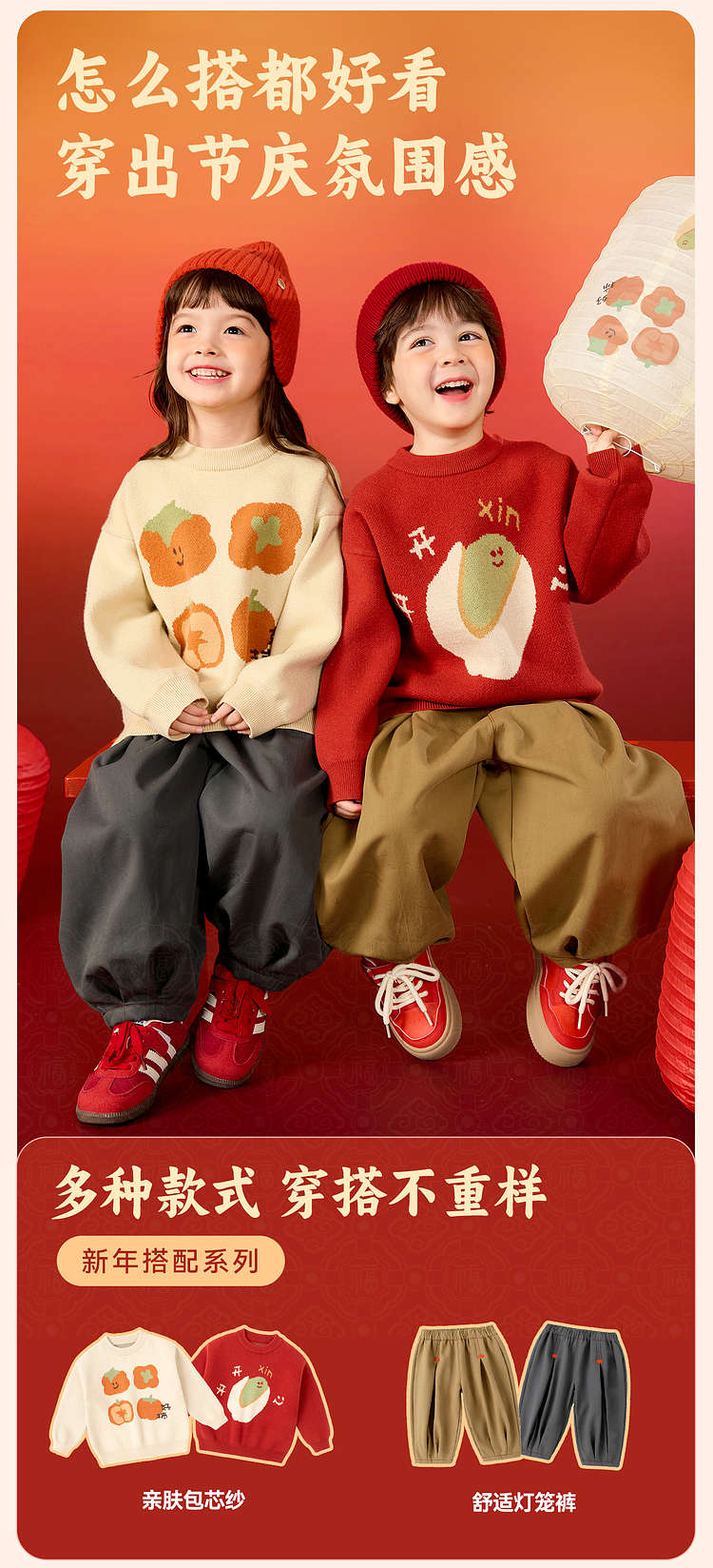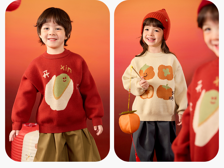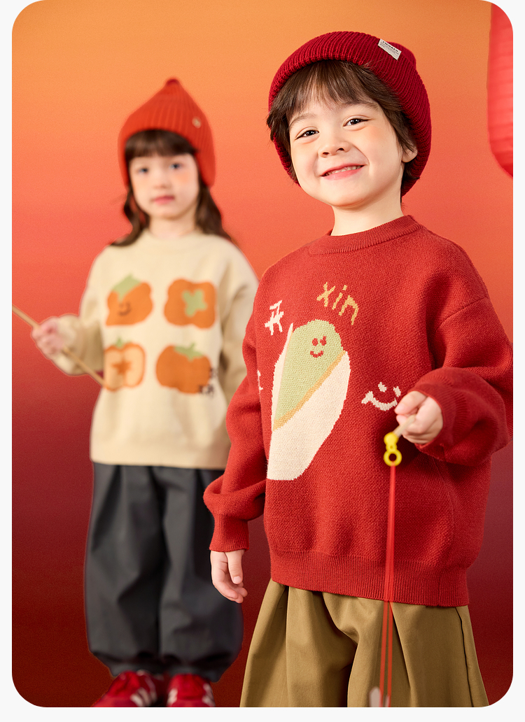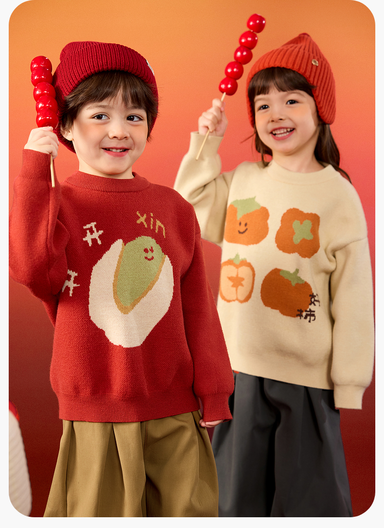 嘟嘟家男童毛衣儿童新年拜年服宝宝冬季上衣国风童装女童过年衣服