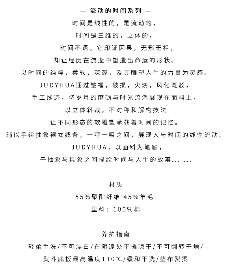 以极简建筑风格,诠释对生活美学之独特理解,JUDYHUA以作品触动您心。更多新款上架,请亲临JUDYHUA STUDIO试穿选购。预约电话:021-62663449,18201881913