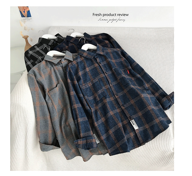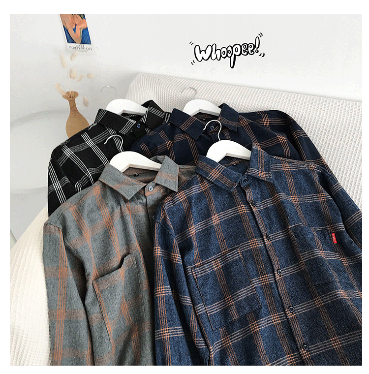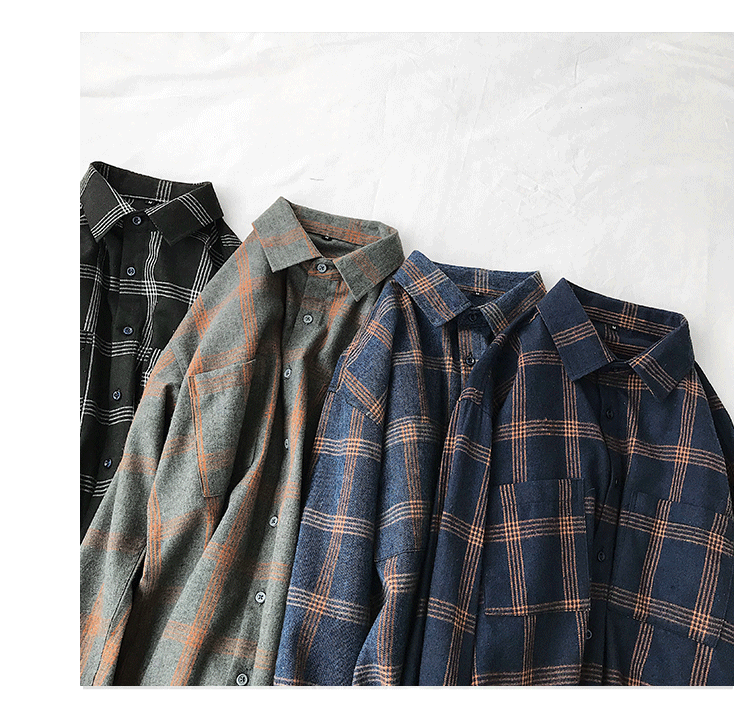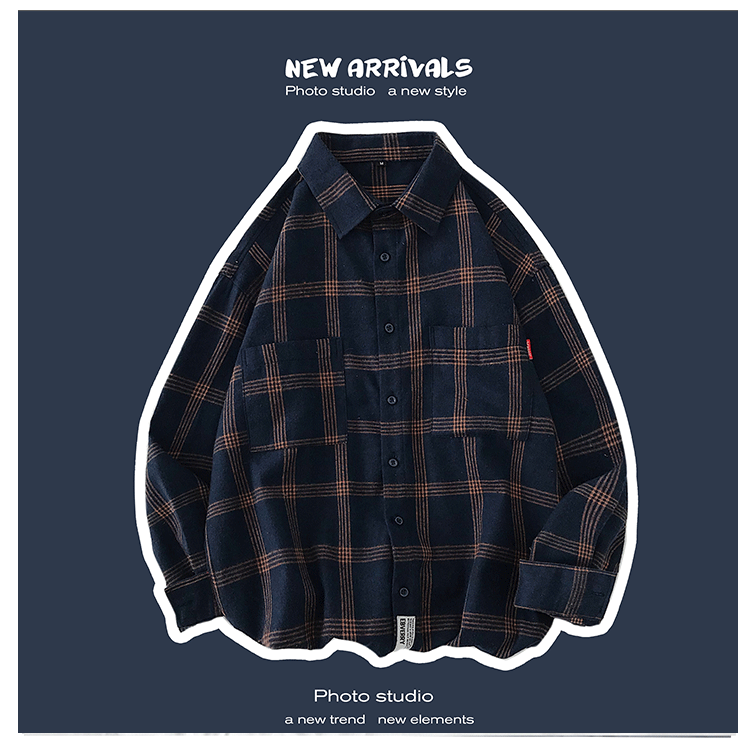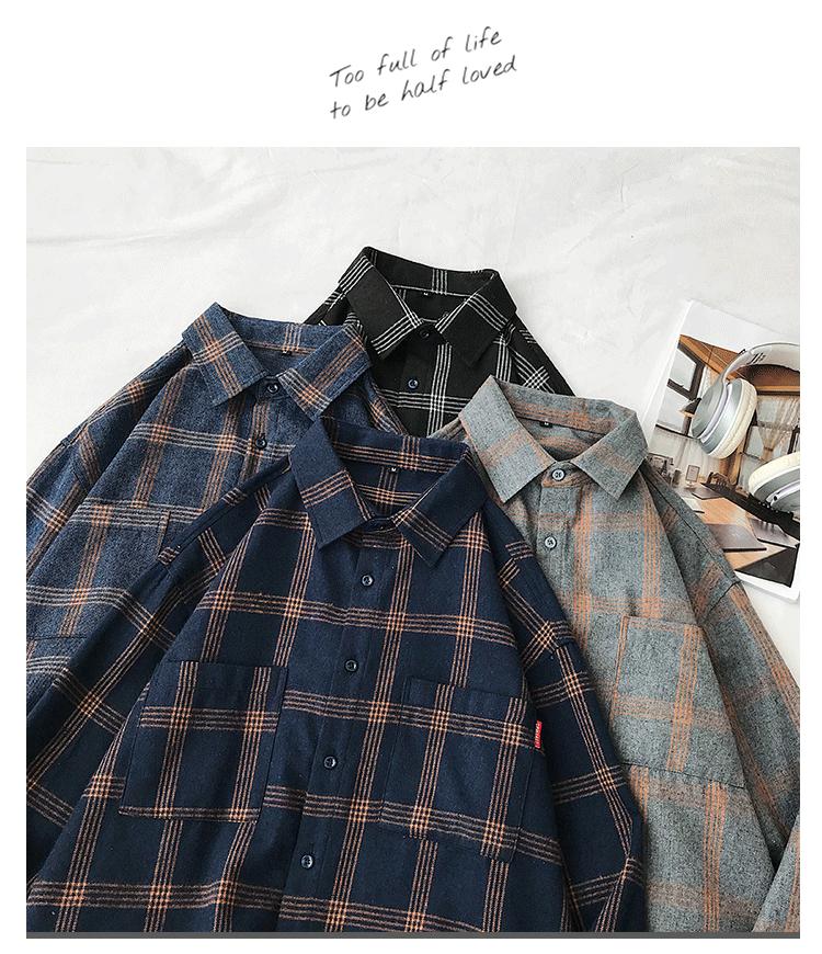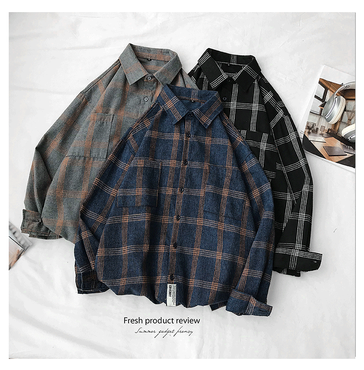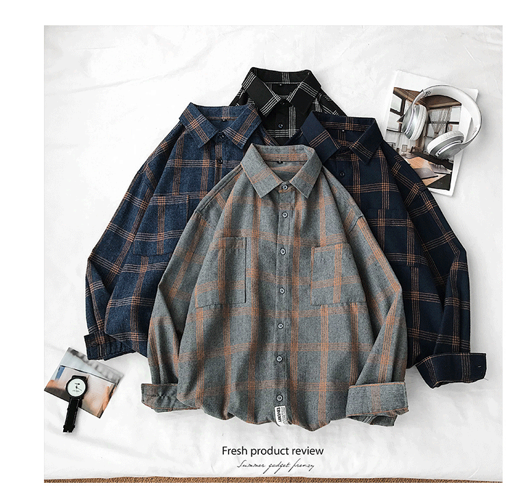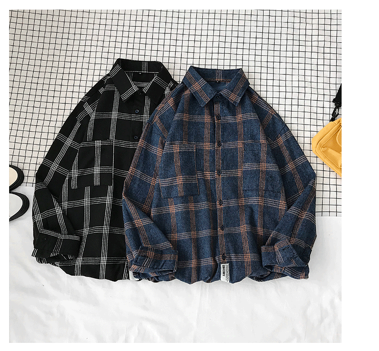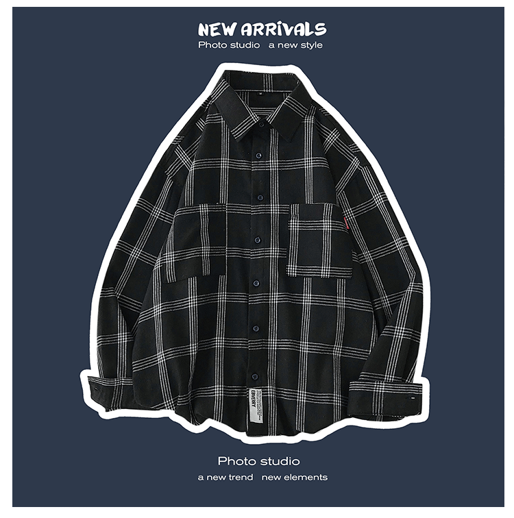 韩版宽松格子衬衣潮流休闲情侣外套新款黑色秋装港风衬衫长袖打底