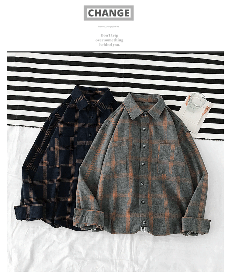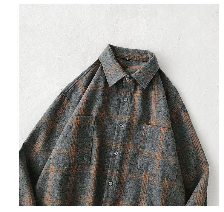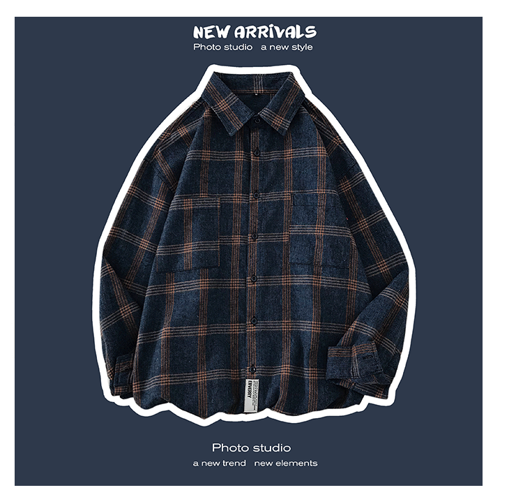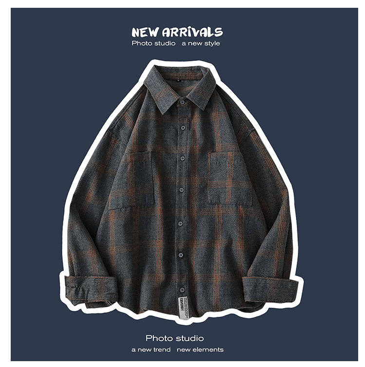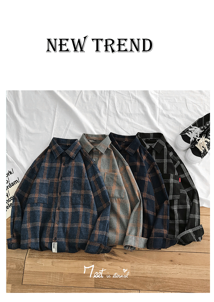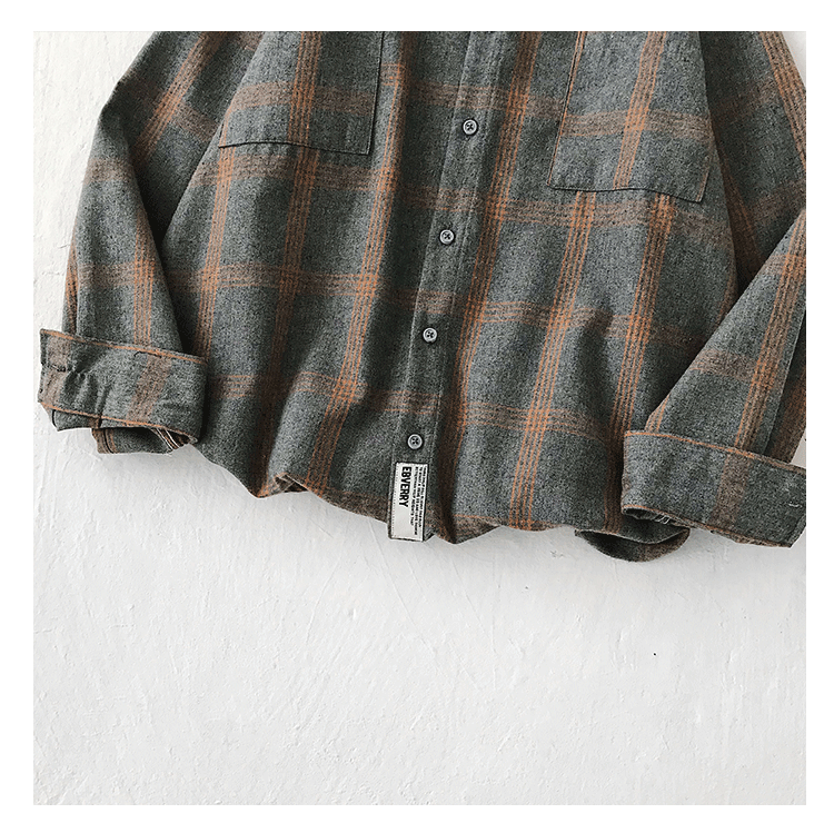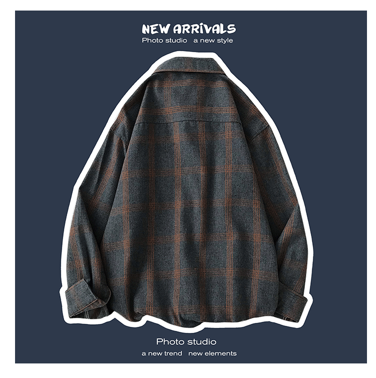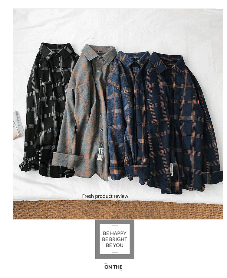 韩版宽松格子衬衣潮流休闲情侣外套新款黑色秋装港风衬衫长袖打底