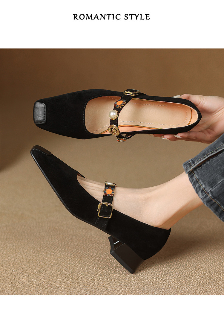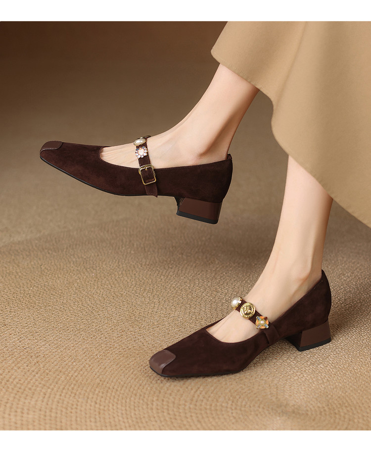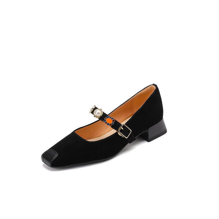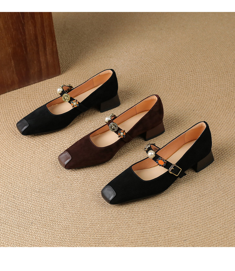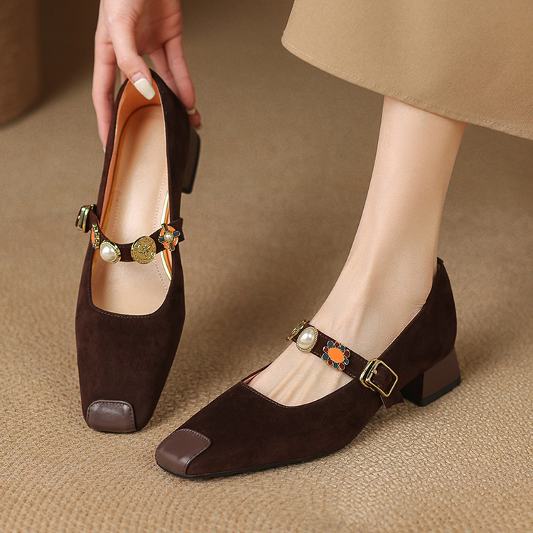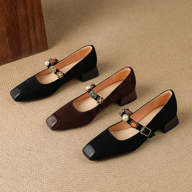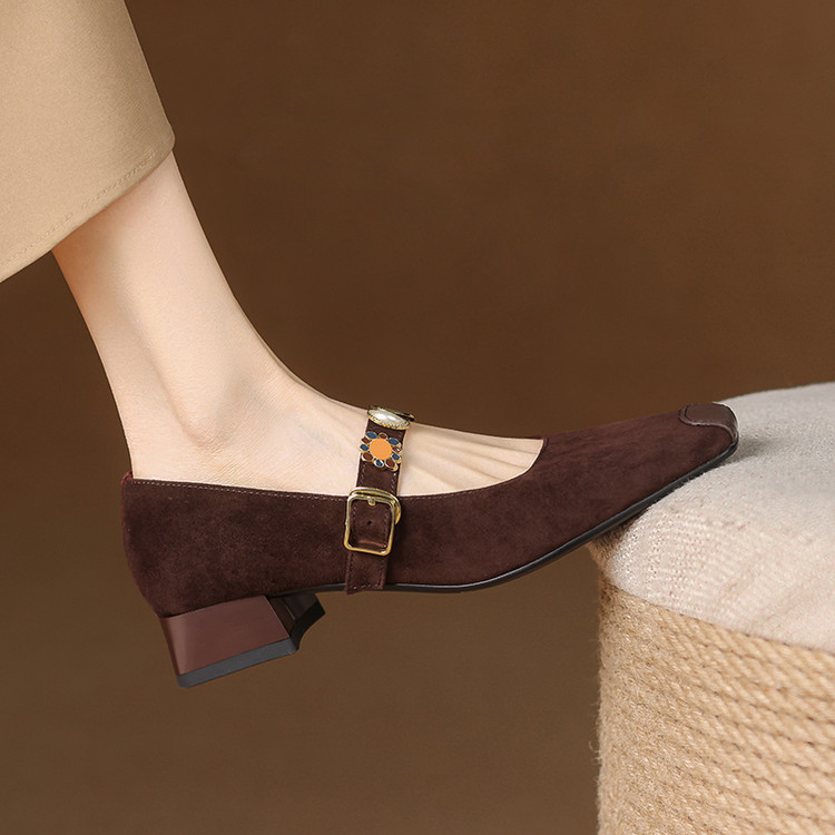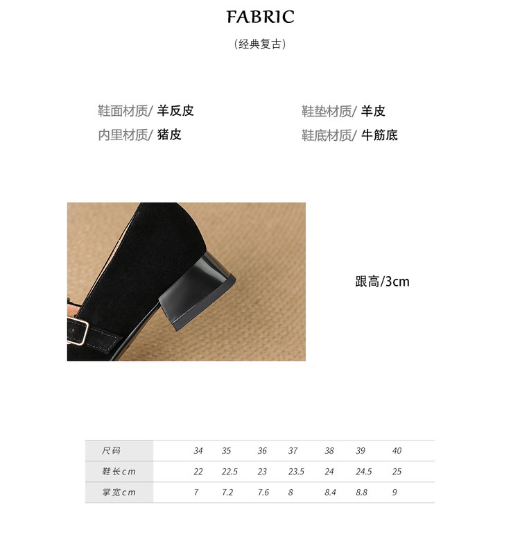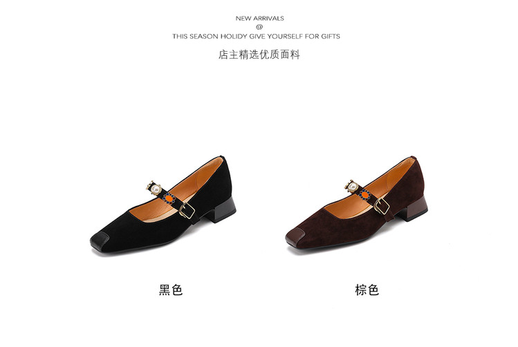 【预售5天】法式复古磨砂真皮一字带粗跟玛丽珍鞋女春秋新款方头中跟浅口单鞋SLLK&sl-7880