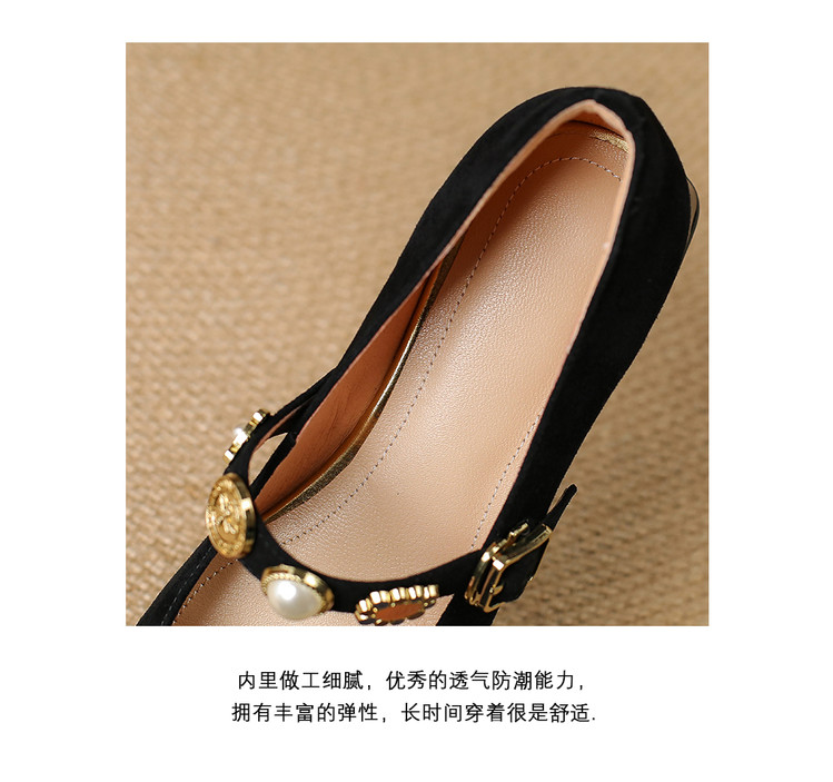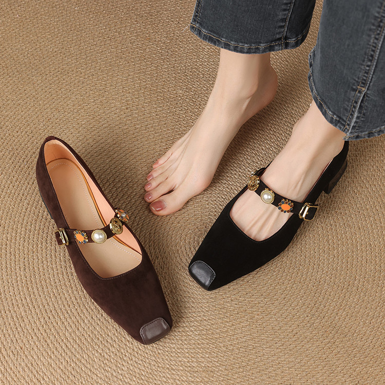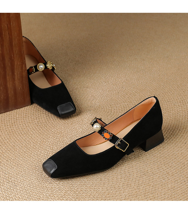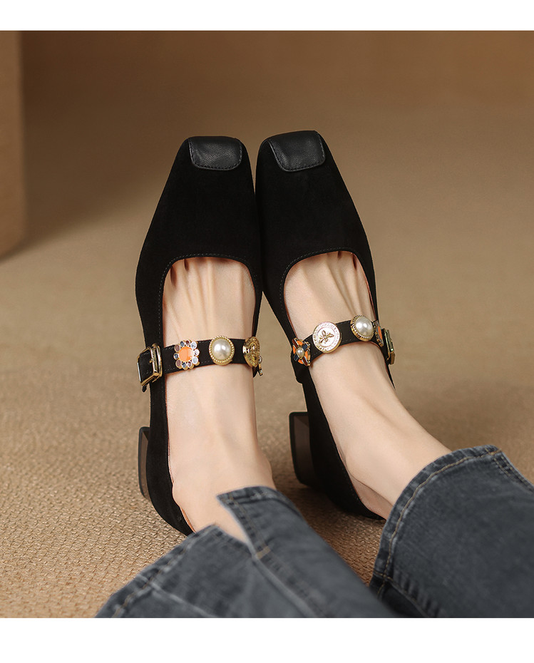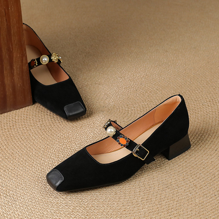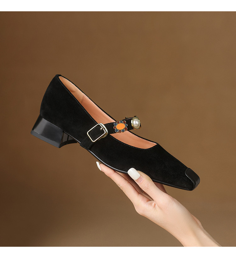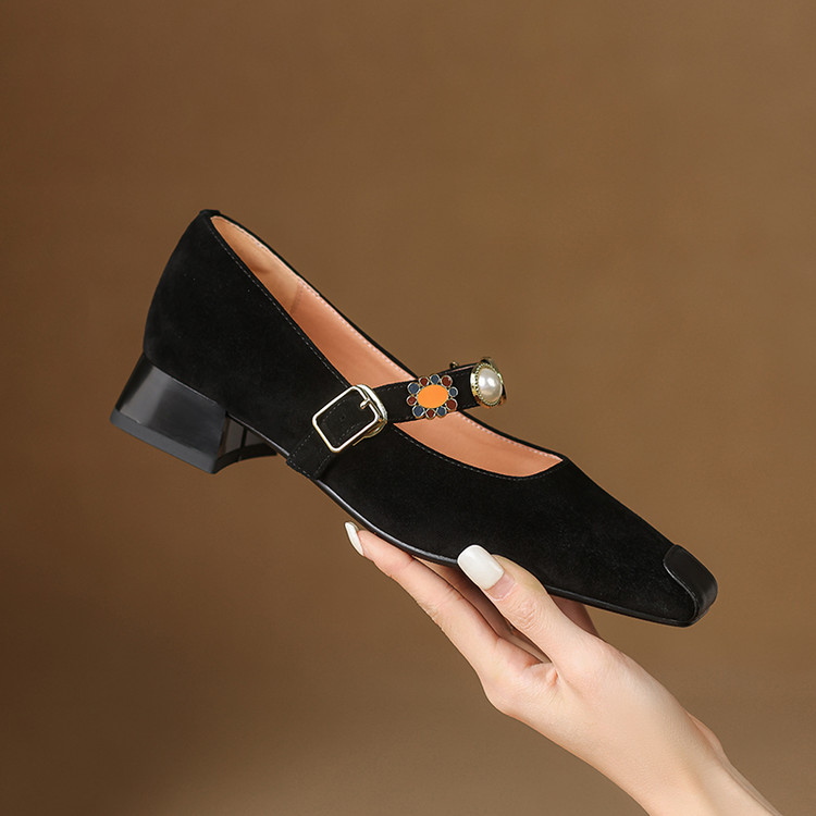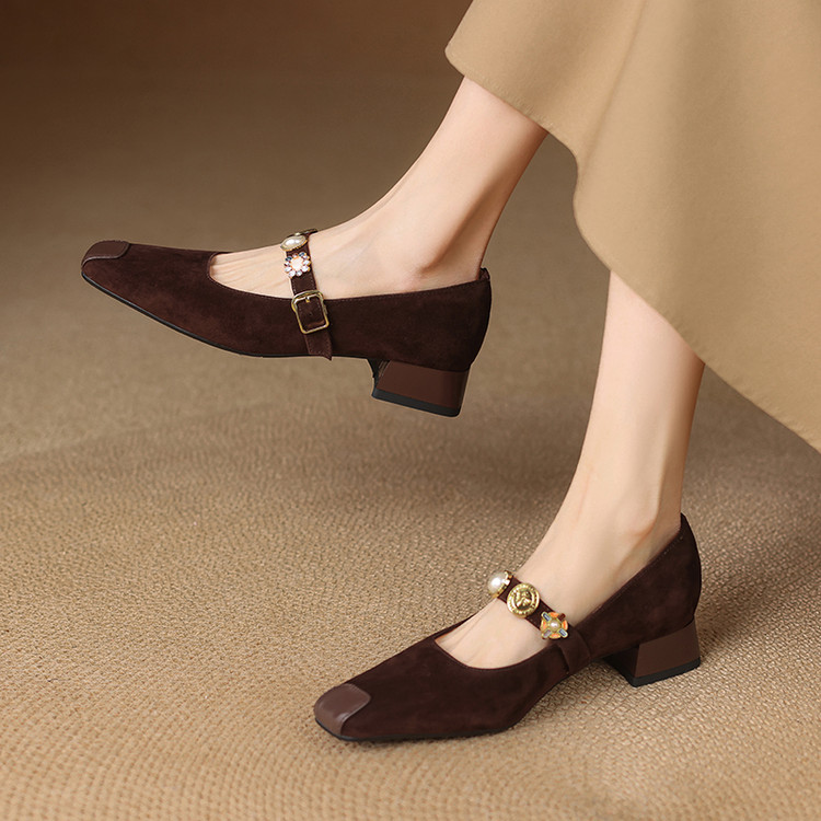 【预售5天】法式复古磨砂真皮一字带粗跟玛丽珍鞋女春秋新款方头中跟浅口单鞋SLLK&sl-7880