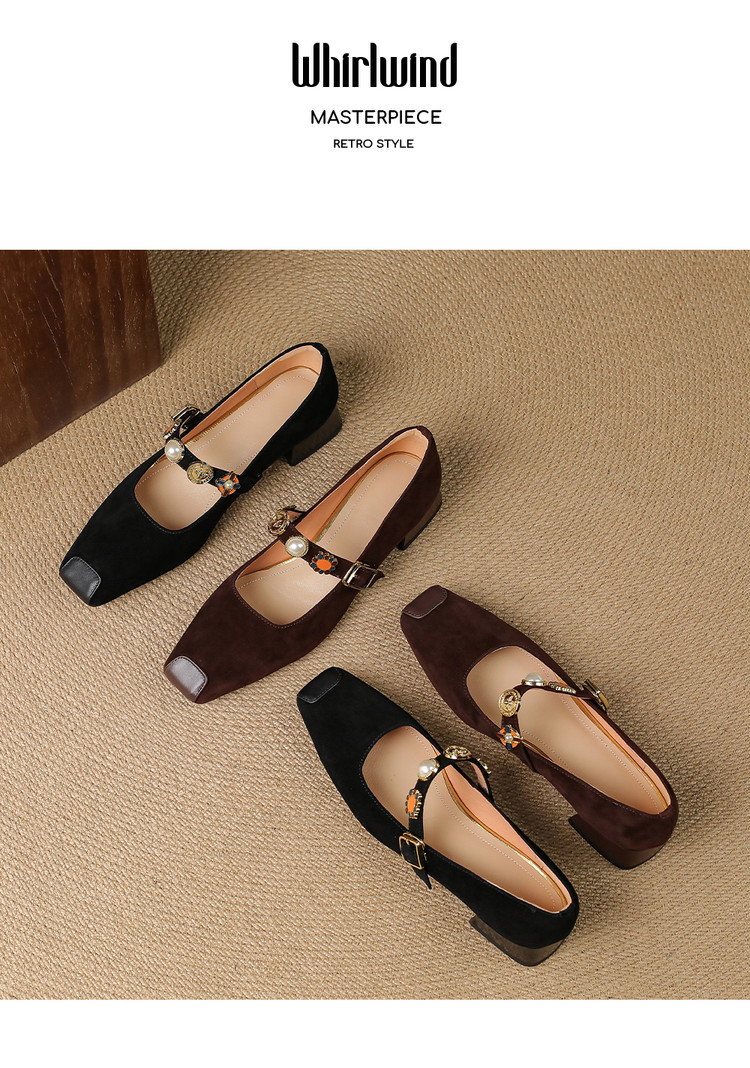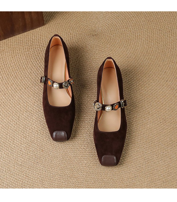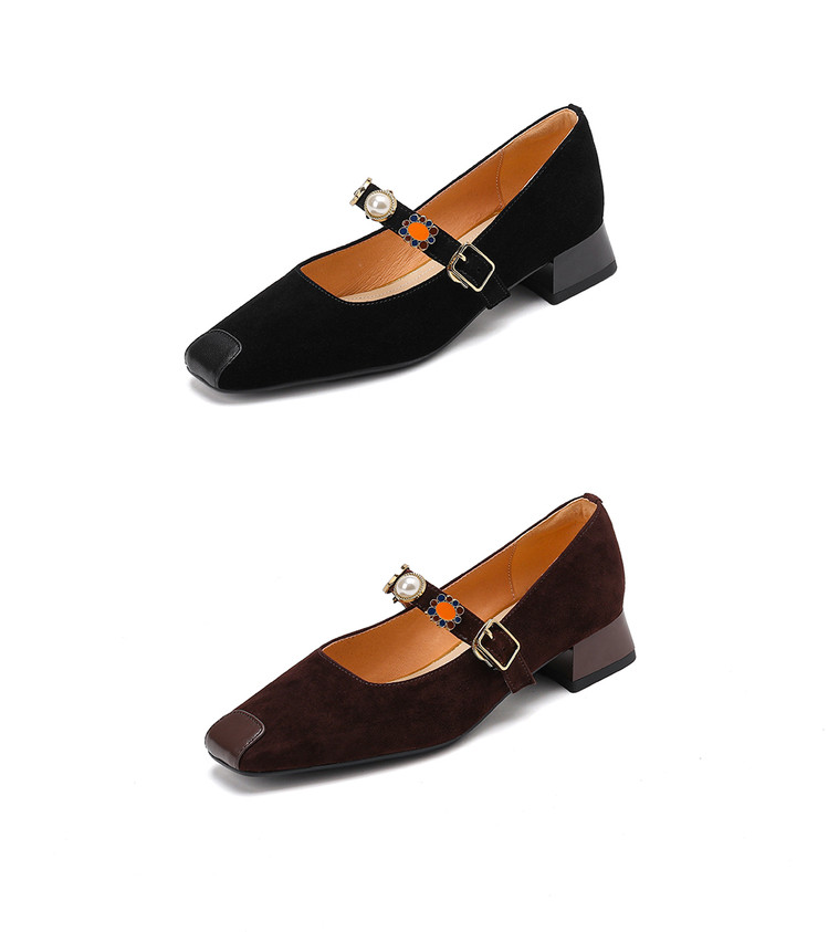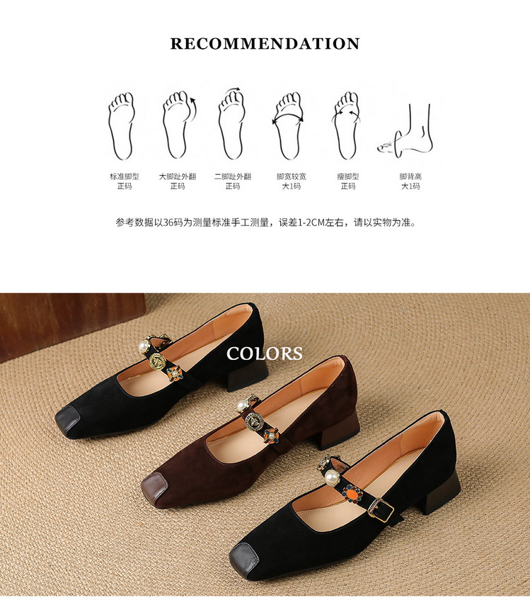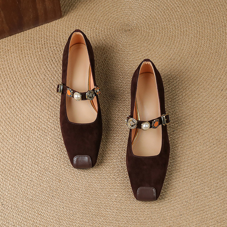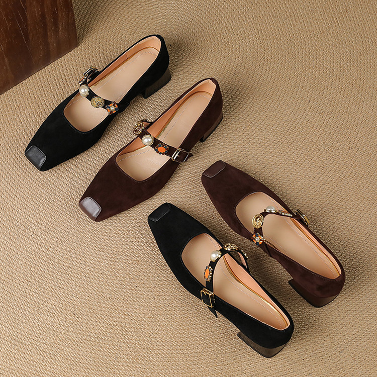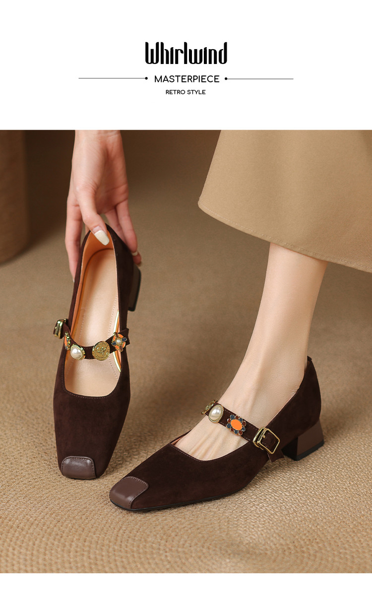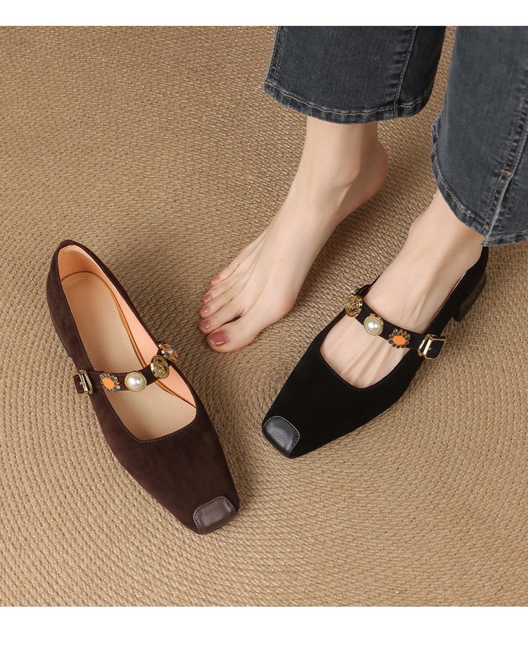 【预售5天】法式复古磨砂真皮一字带粗跟玛丽珍鞋女春秋新款方头中跟浅口单鞋SLLK&sl-7880