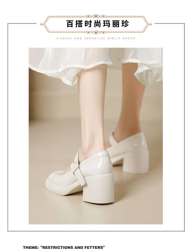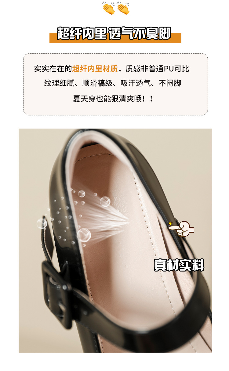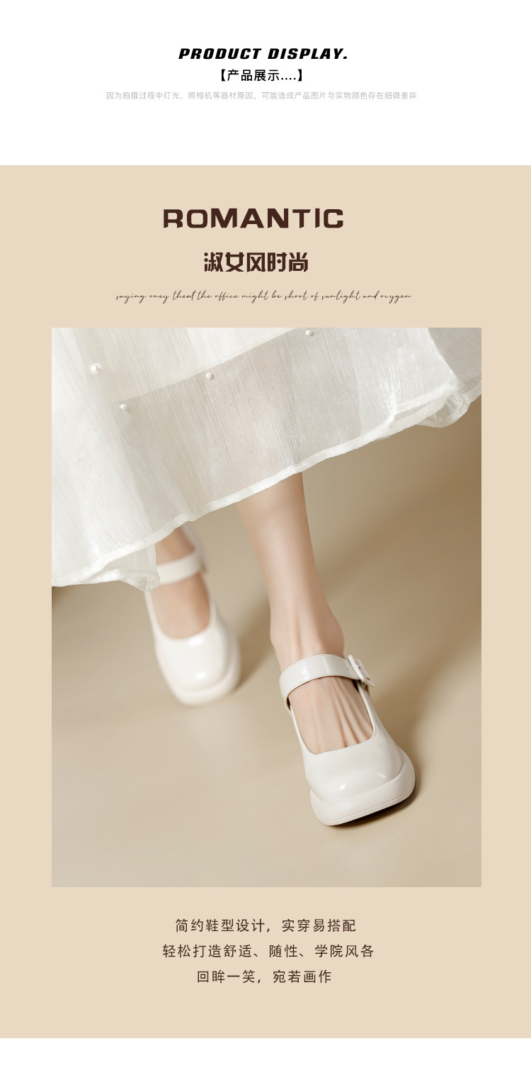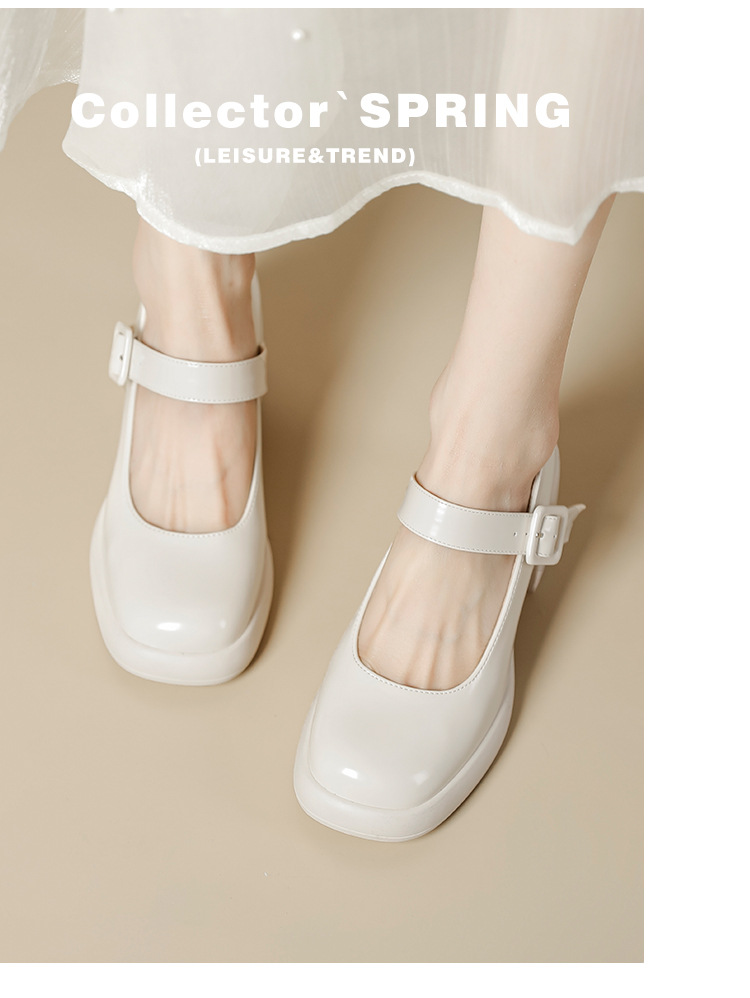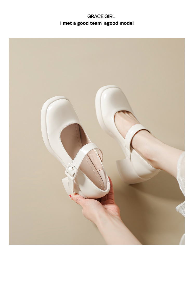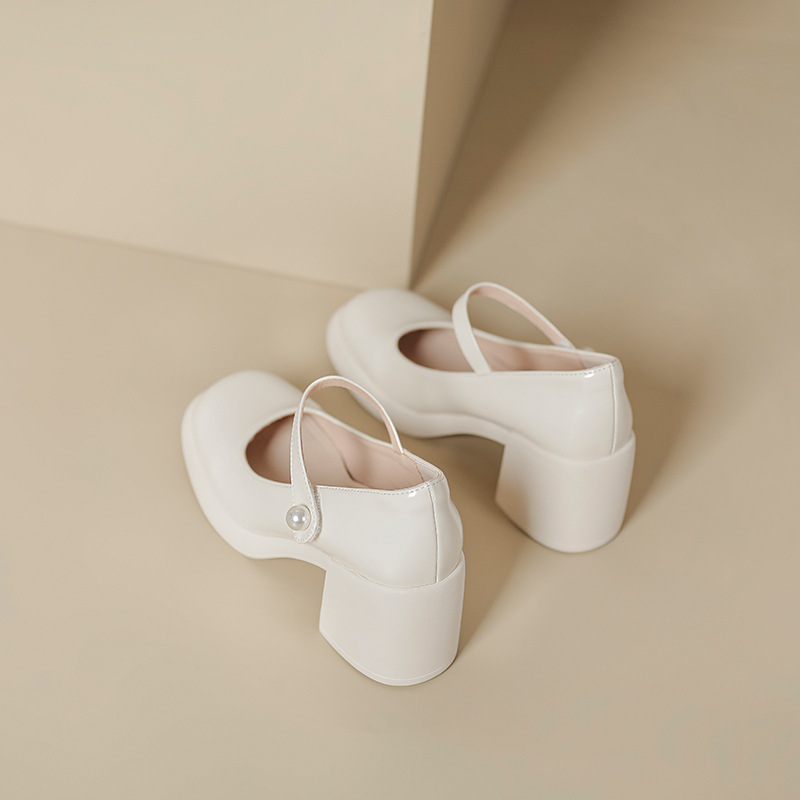 2023春季真皮玛丽珍粗跟单鞋女法式复古高跟鞋一字带浅口仙女鞋