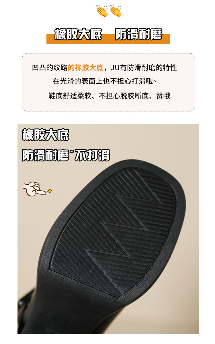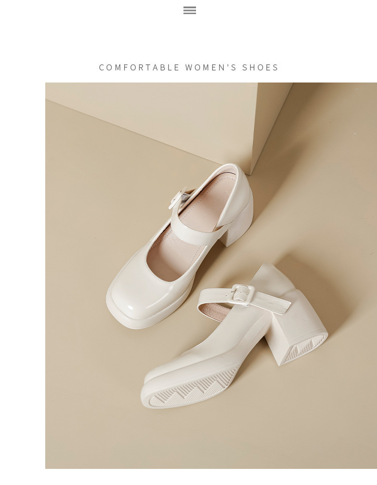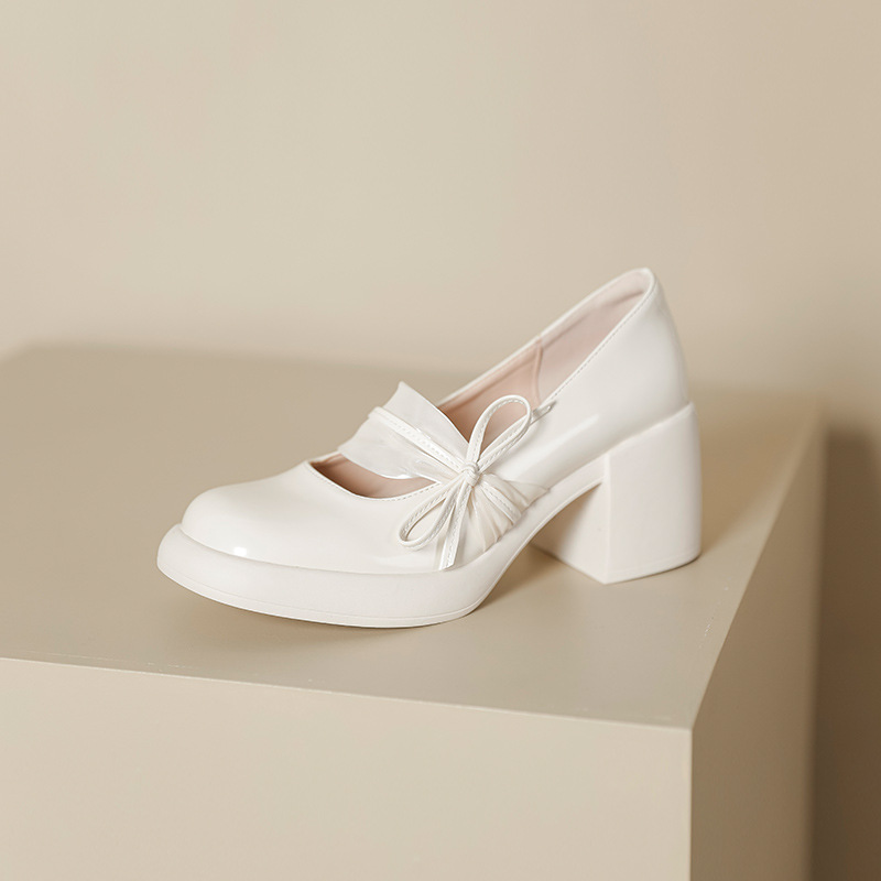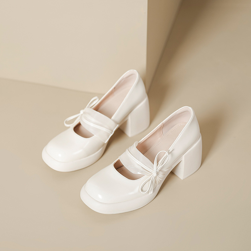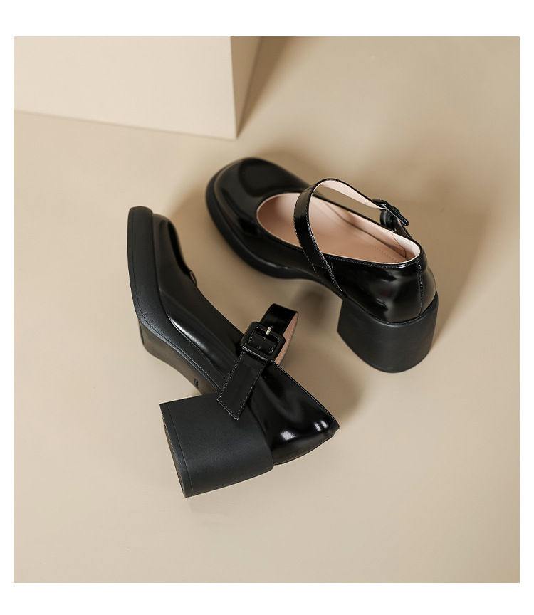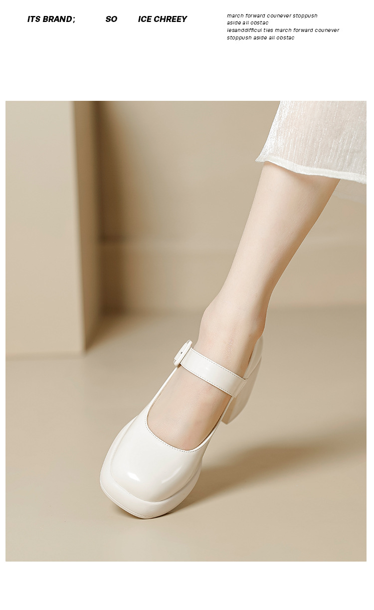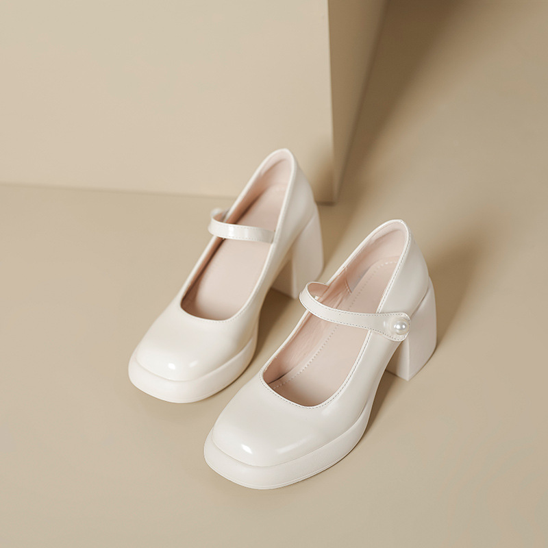 2023春季真皮玛丽珍粗跟单鞋女法式复古高跟鞋一字带浅口仙女鞋