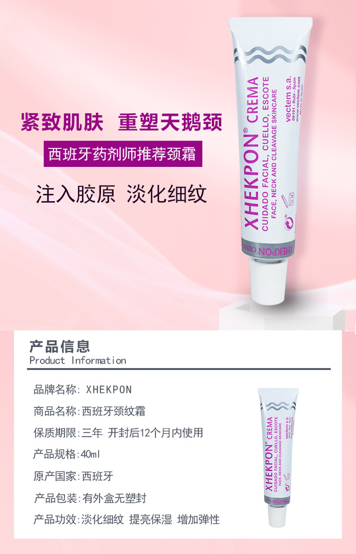【现货】西班牙XHEKPON颈纹霜 40ml脸部可用