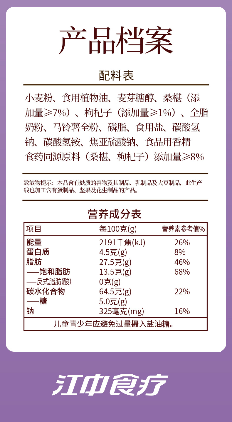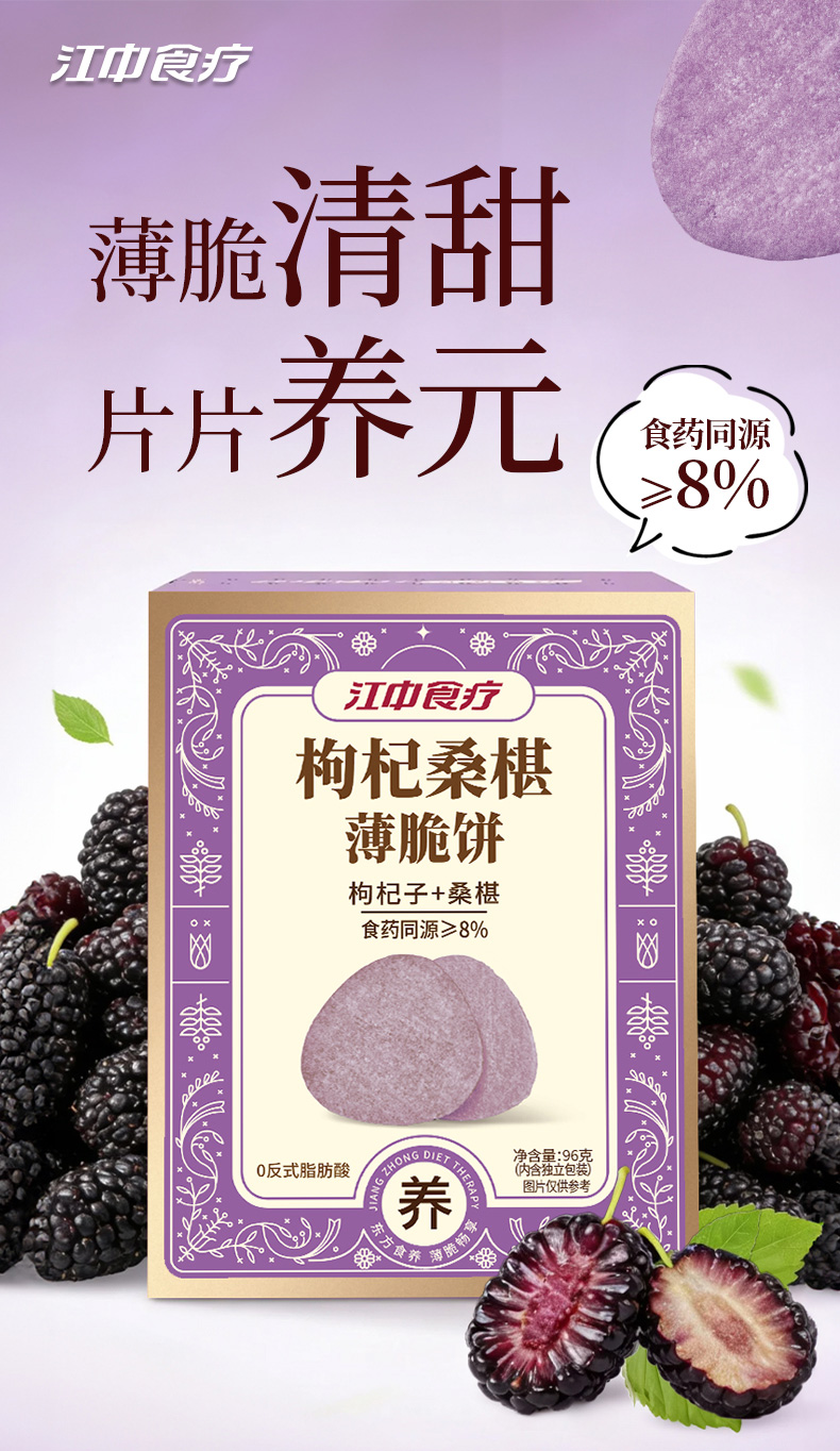 【枸杞桑葚】江中食疗枸杞桑椹薄脆饼干96g 生产日期2025年12月,保质期12个月