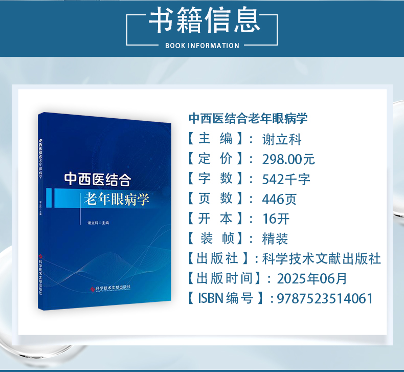 中西医结合老年眼病学 谢立科 主编 老年性眼病理论基础和专科学说 老年性眼病症状 眼表疾病等 9787523514061科学技术文献出版社