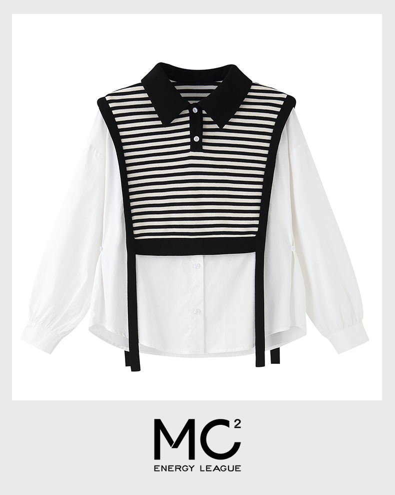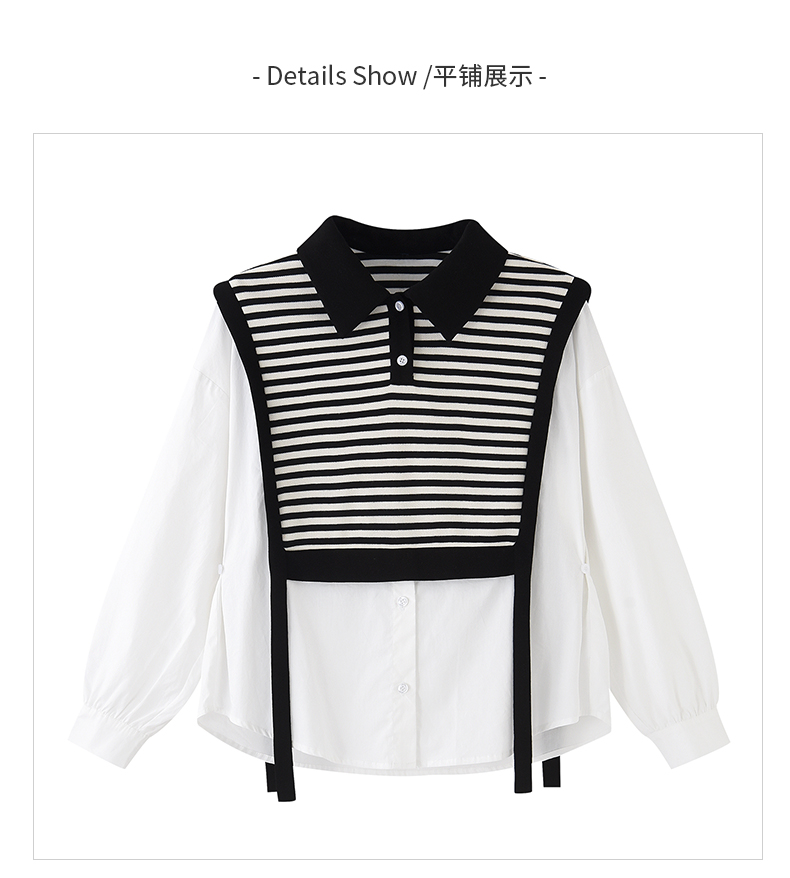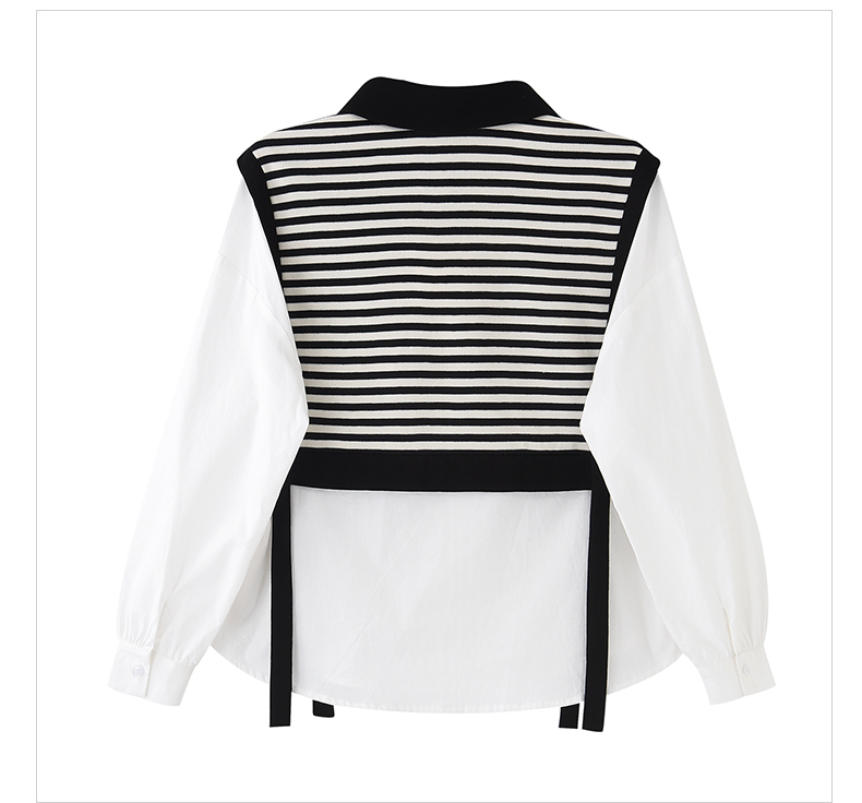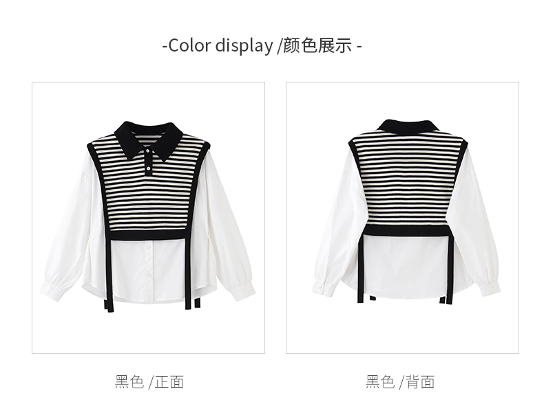 女装翻领假两件条纹拼接长袖衬衫C3212356