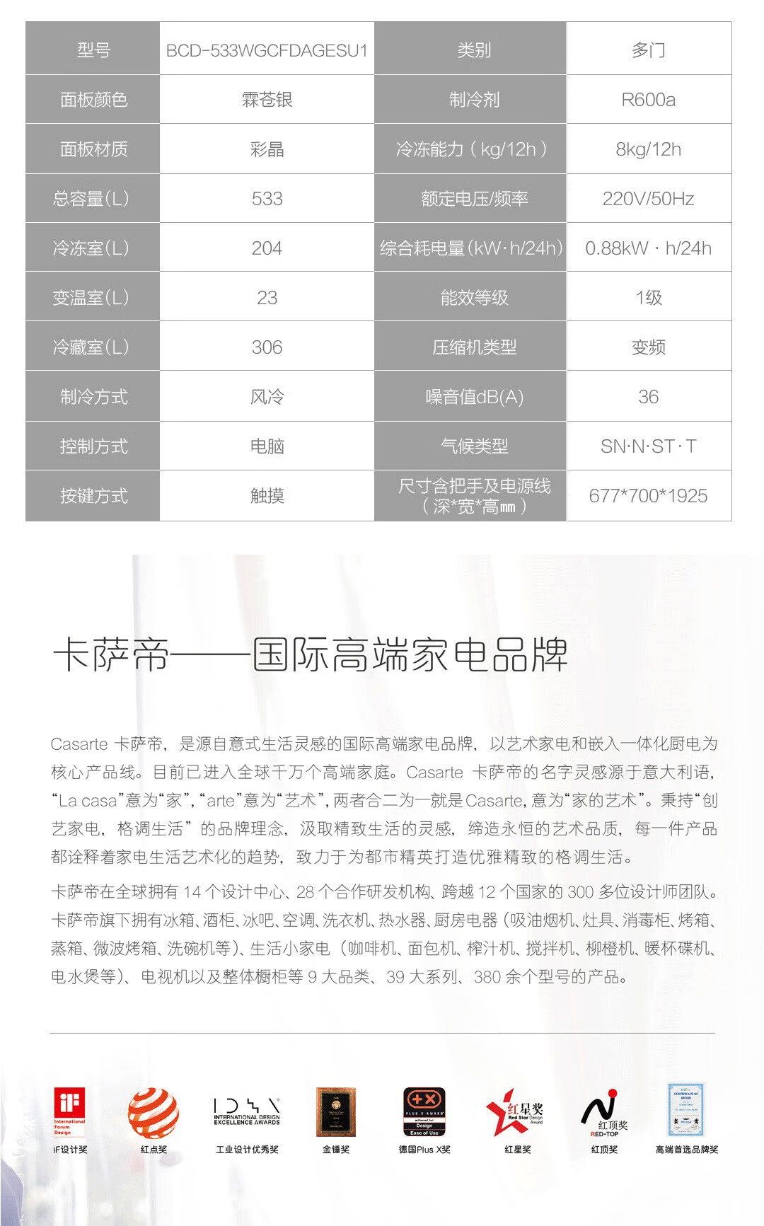 卡萨帝菁英系列零嵌冰箱BCD-533WGCFDAGESU1