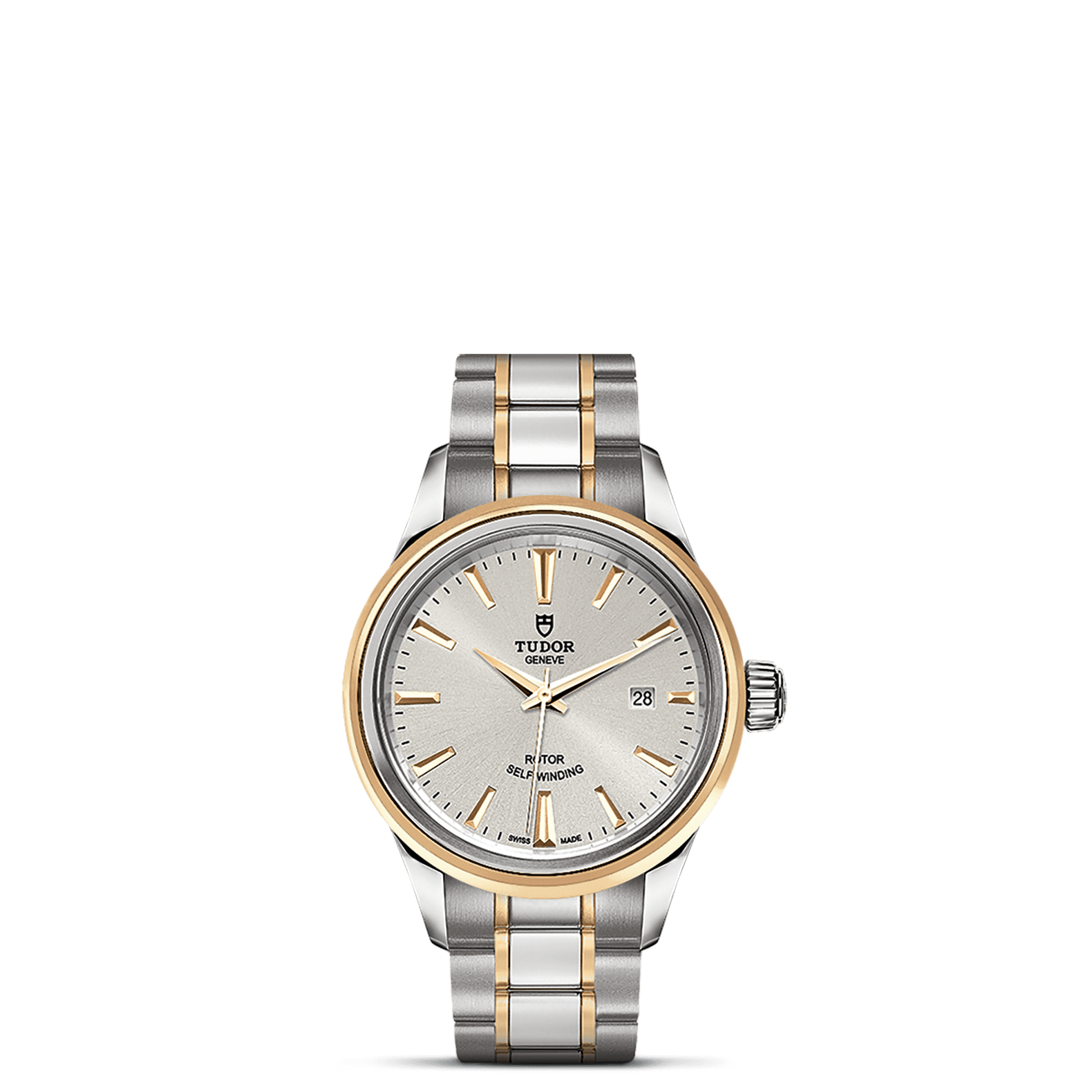磨光及磨砂钢表壳,直径28毫米
