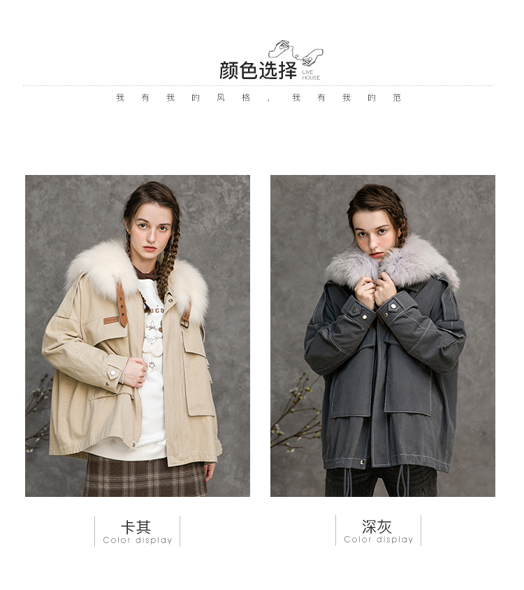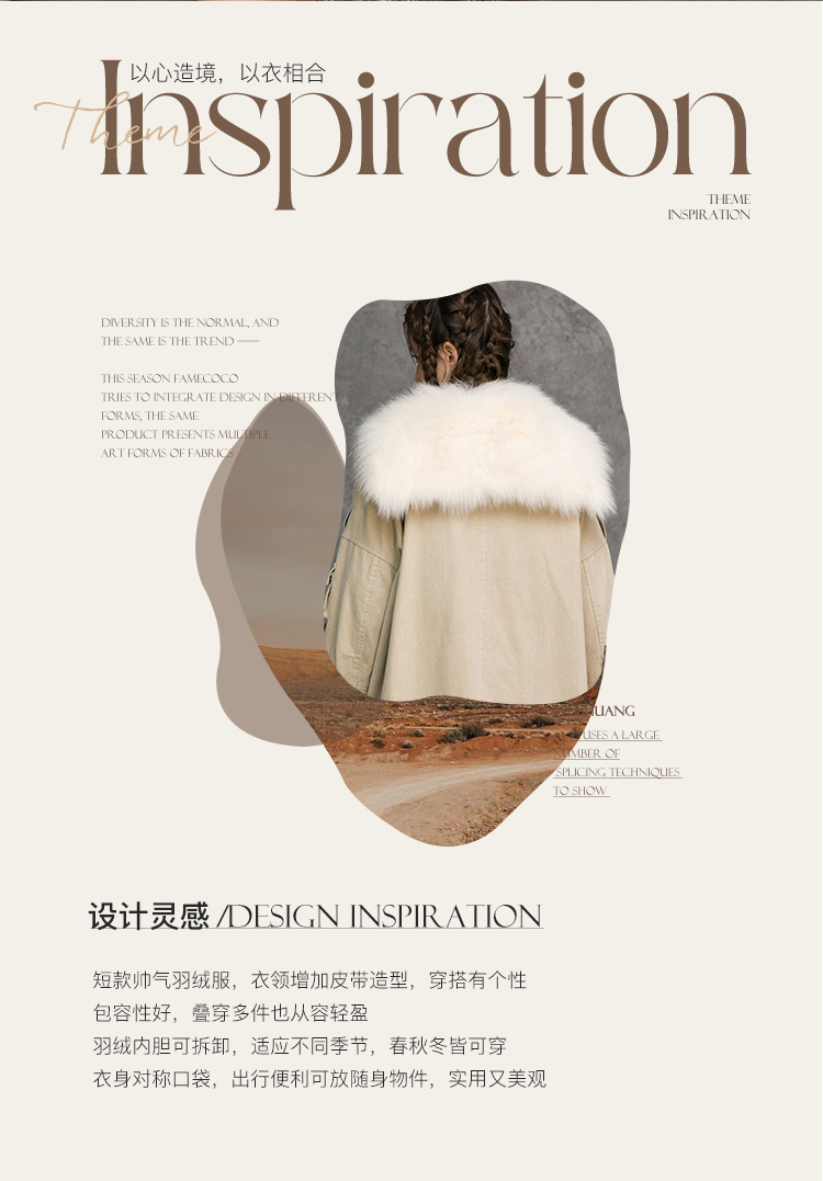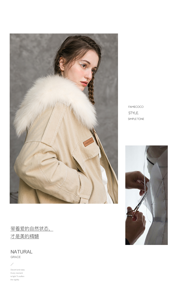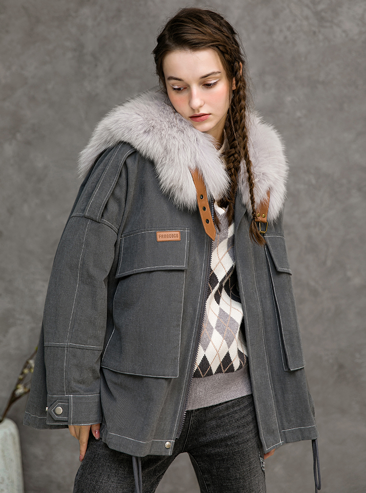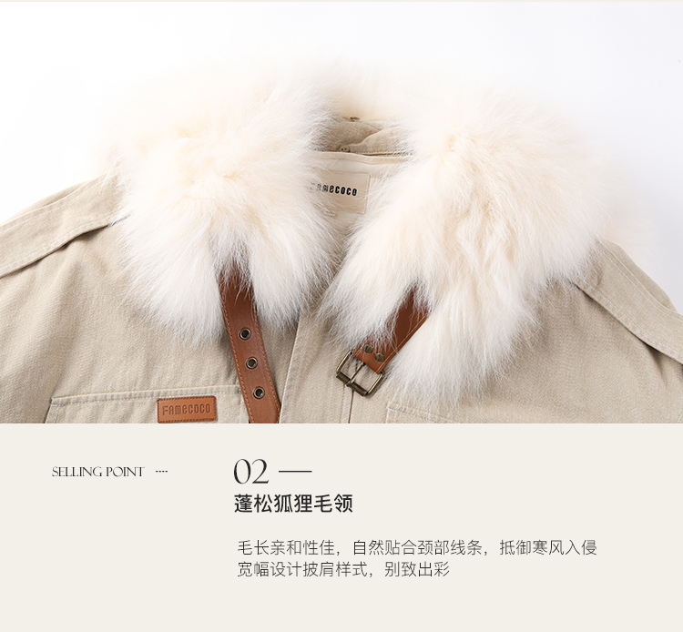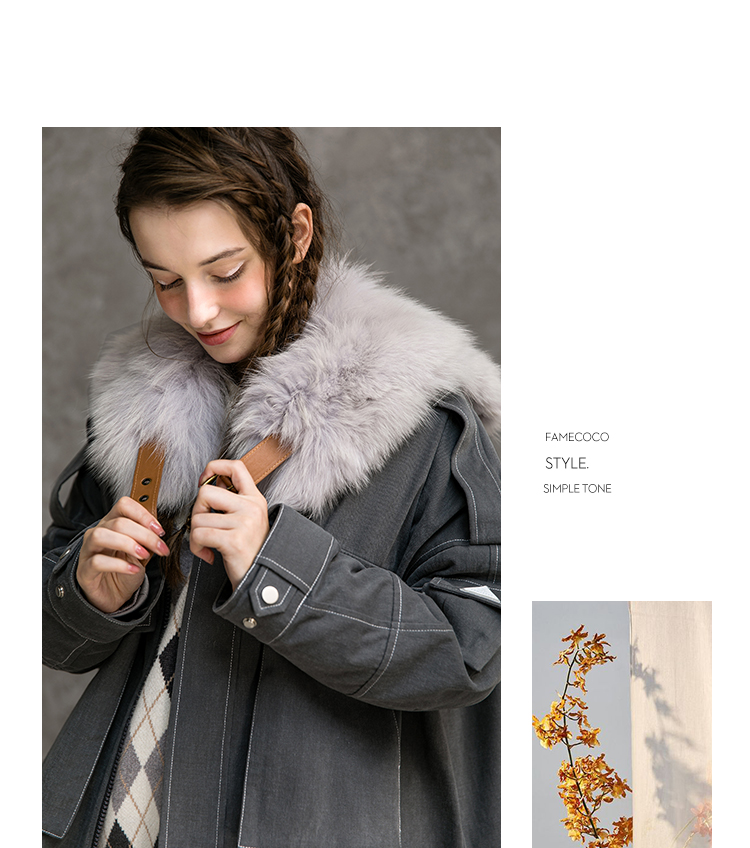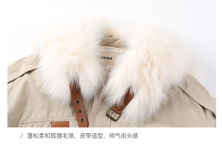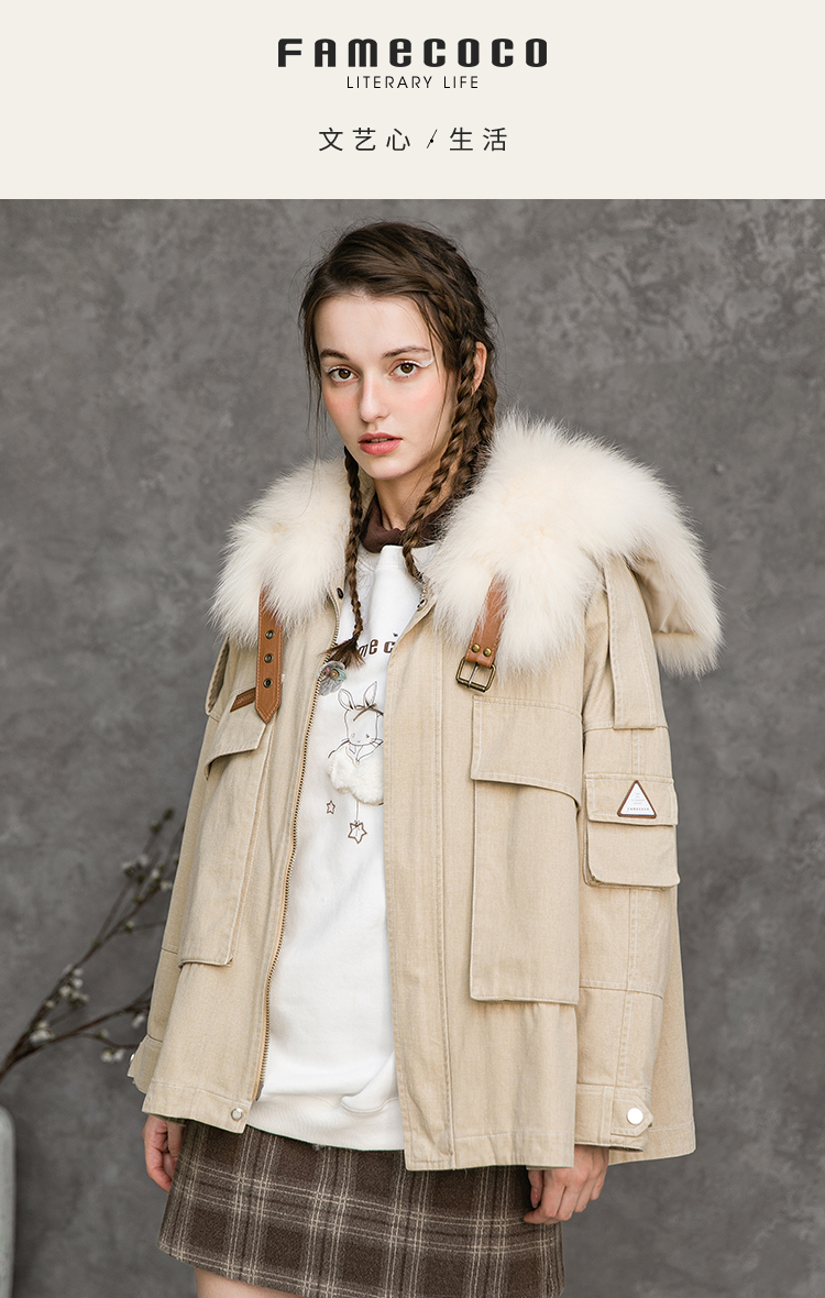 famecoco范可儿狐狸毛领羽绒服保暖白鸭绒外套F218AJ013