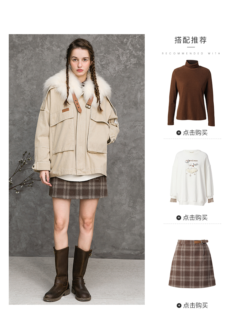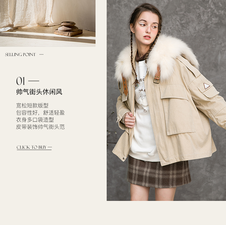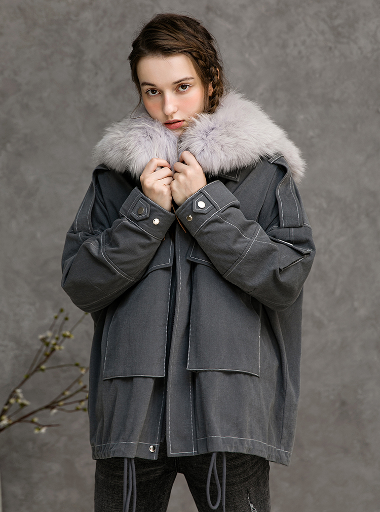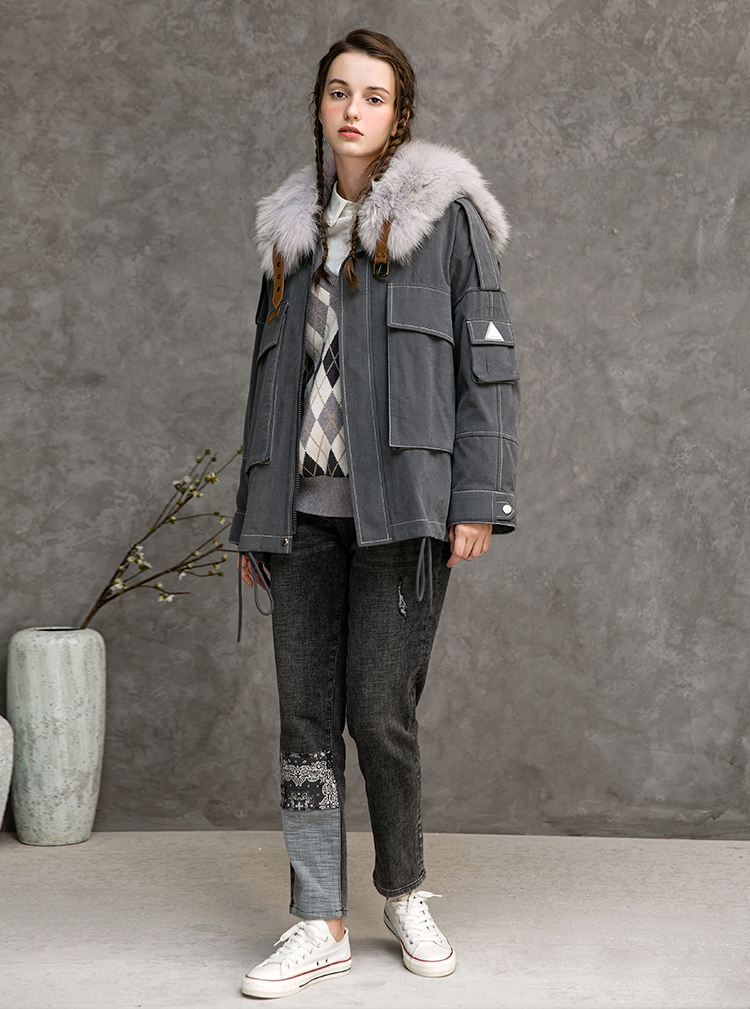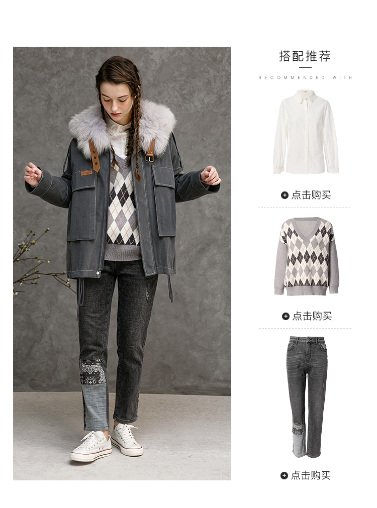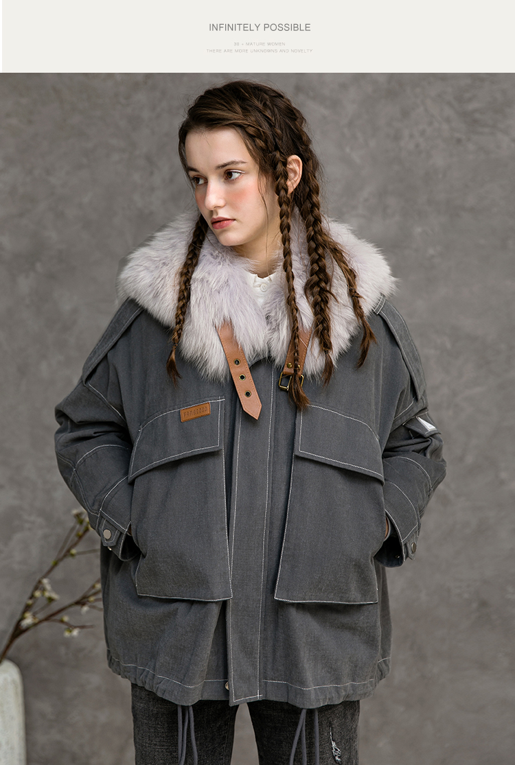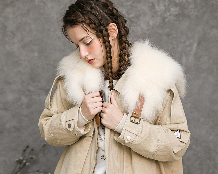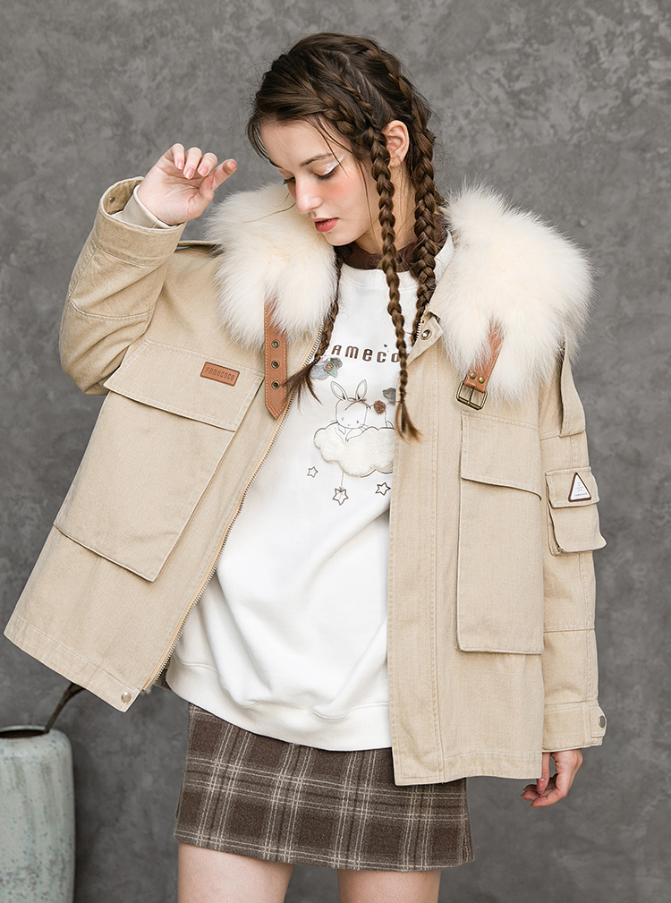 famecoco范可儿狐狸毛领羽绒服保暖白鸭绒外套F218AJ013