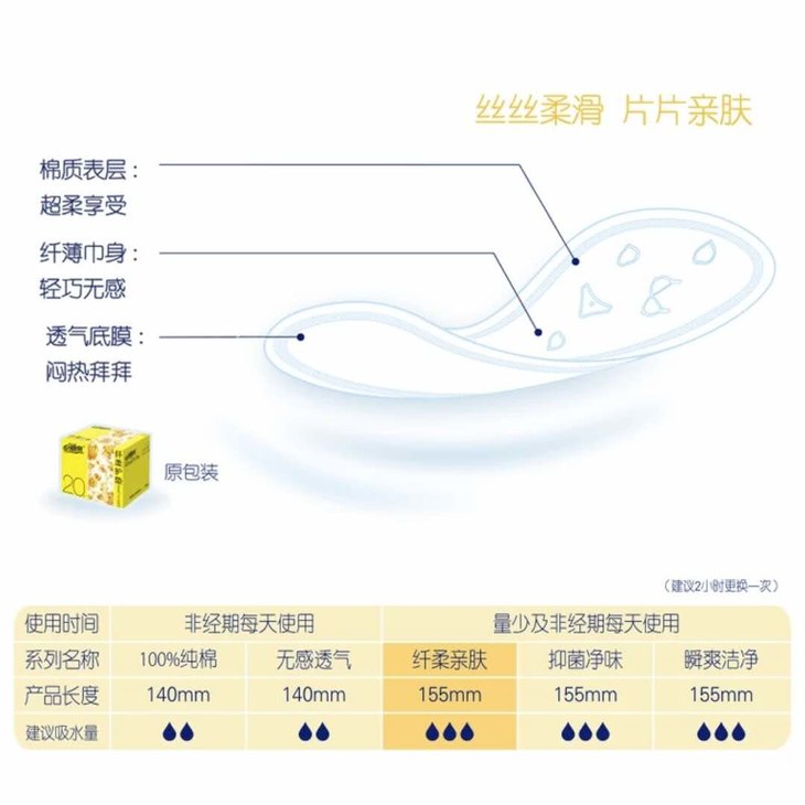 安尔乐纤柔亲肤护垫155mm40片装两盒(超薄无香)