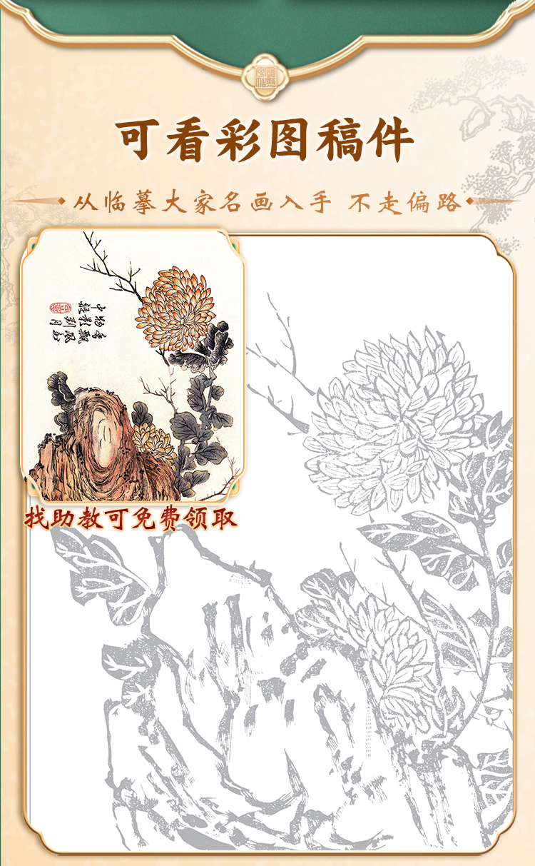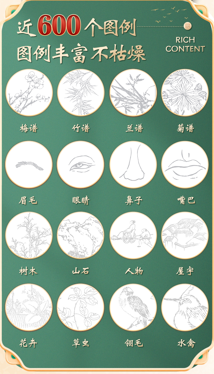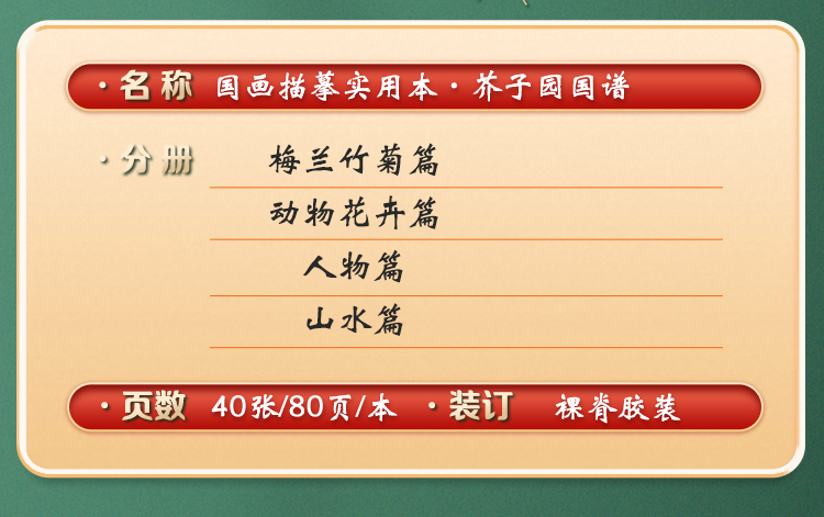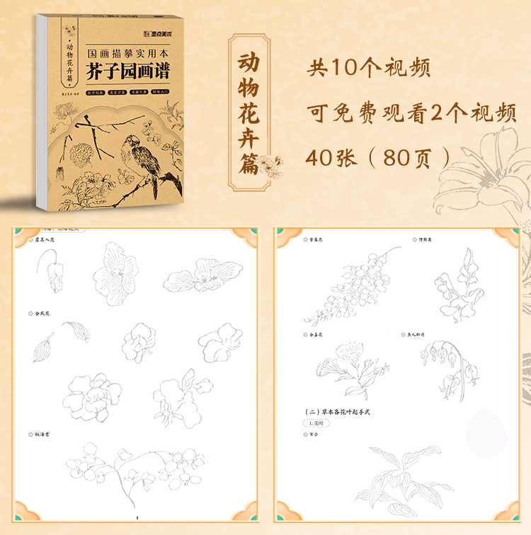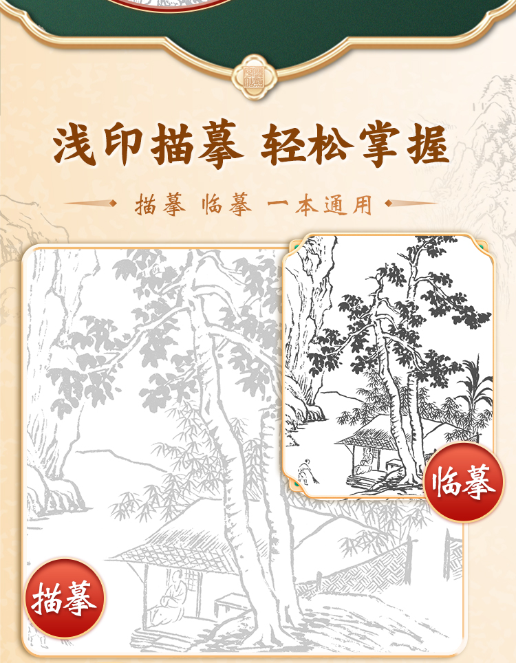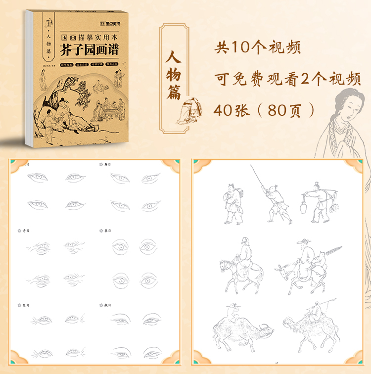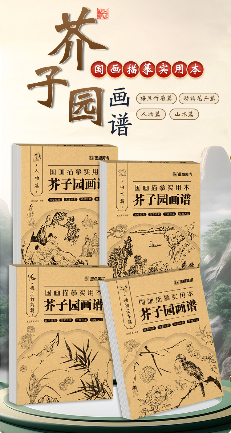 芥子园画谱国画描摹本入门山水篇人物篇梅兰竹菊动物花卉控笔工笔国风古风美术套装图册工具描红书初学者画画临摹画册毛笔练习教材