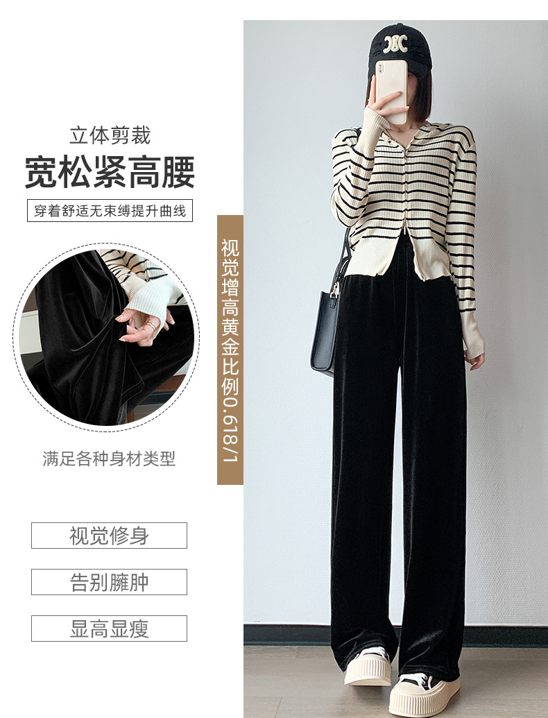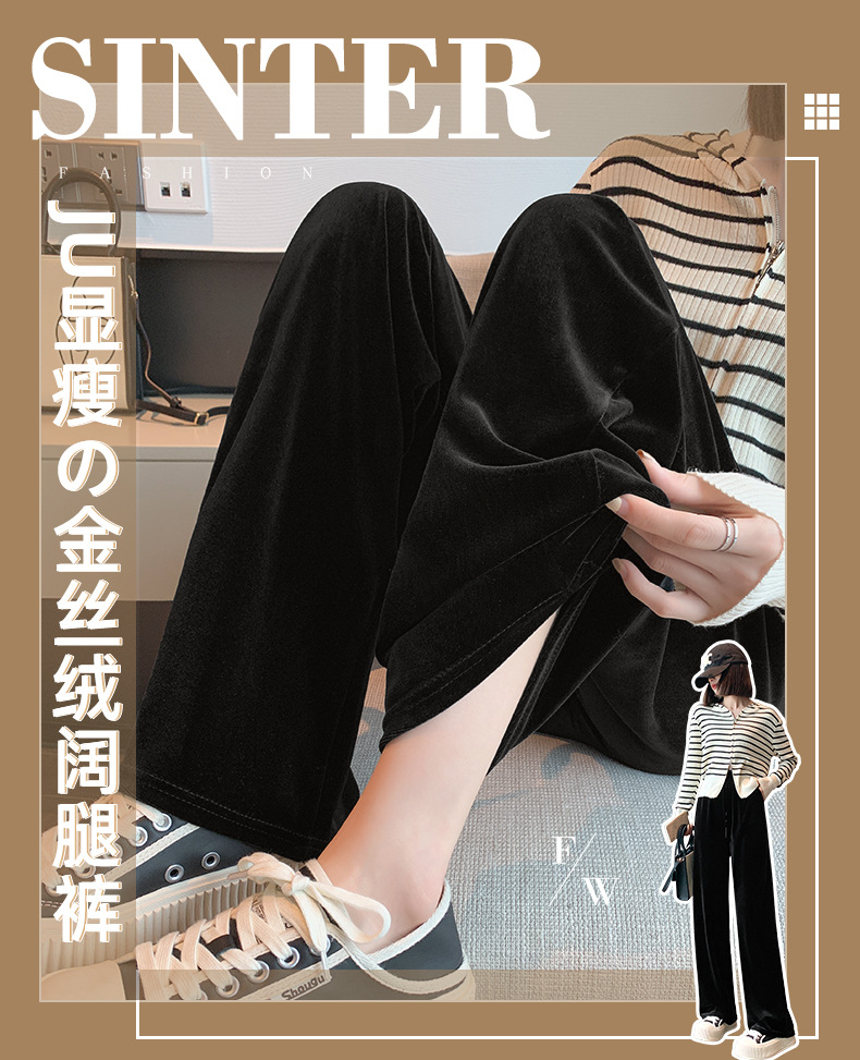 加绒保暖!【板嫣金丝绒阔腿裤】外层绸缎般暗光泽感 贵妇感十足 大厂工艺轻奢不倒绒 水洗不变硬 不易起静电 内里加绒 保暖防风抗寒!