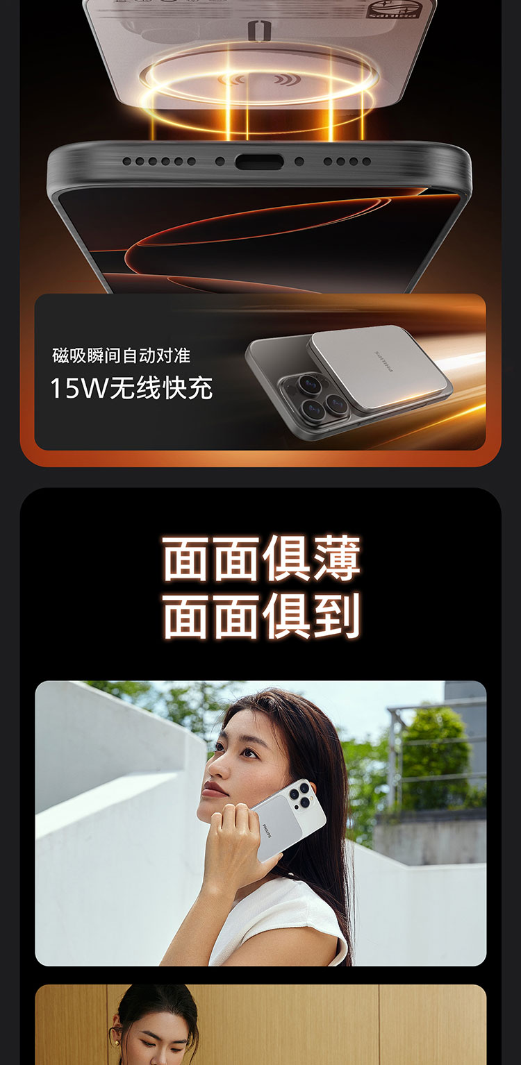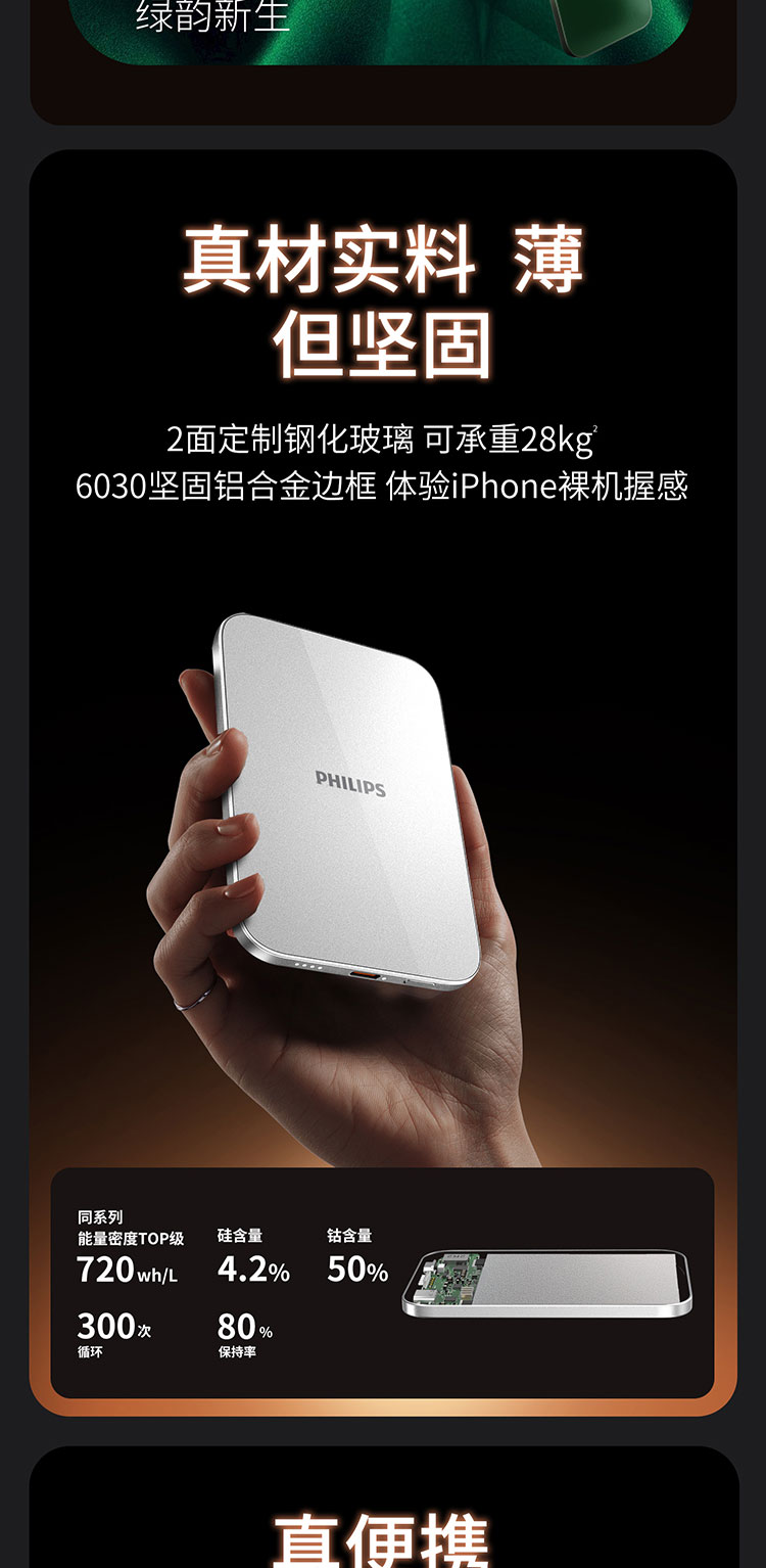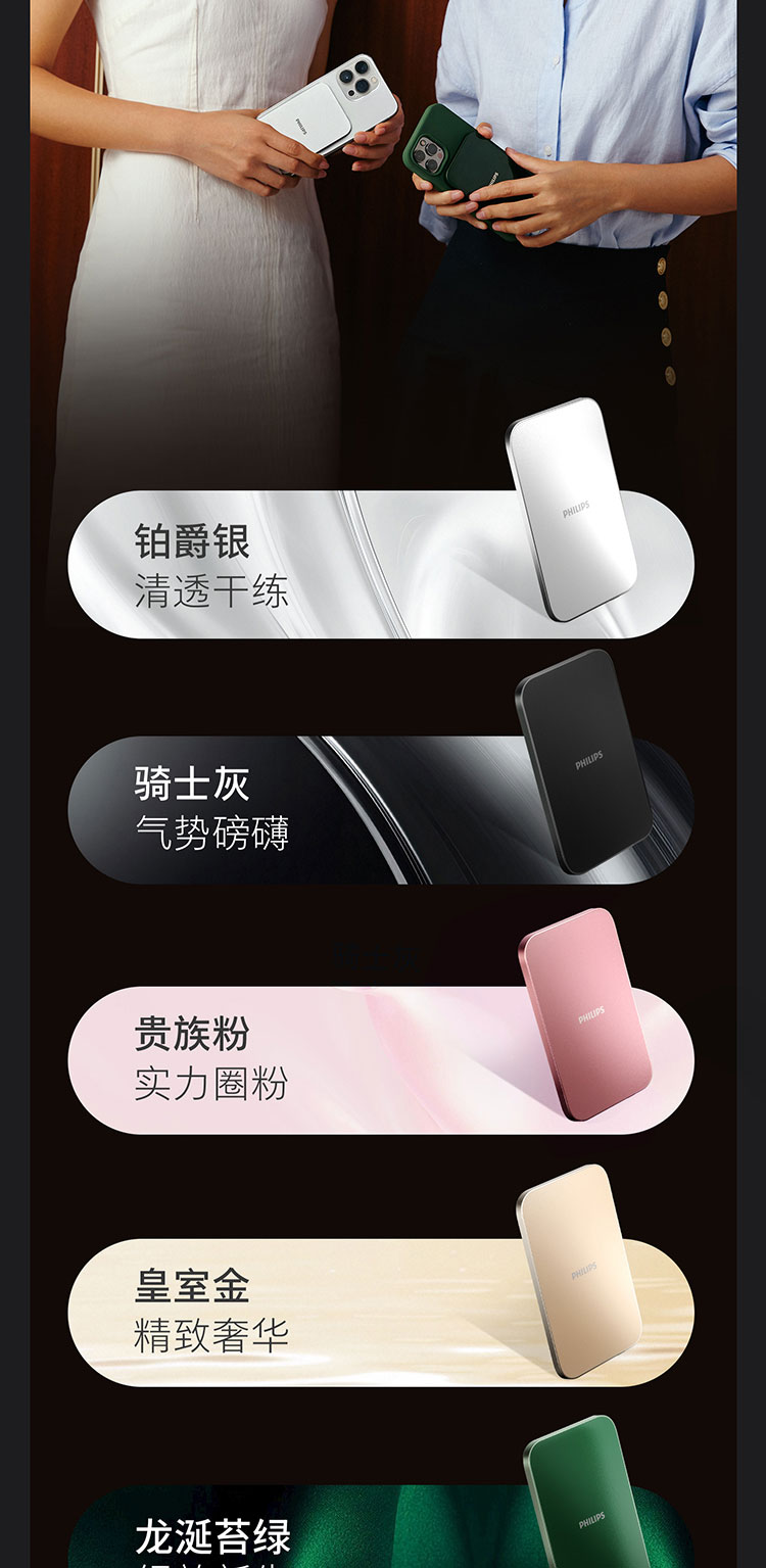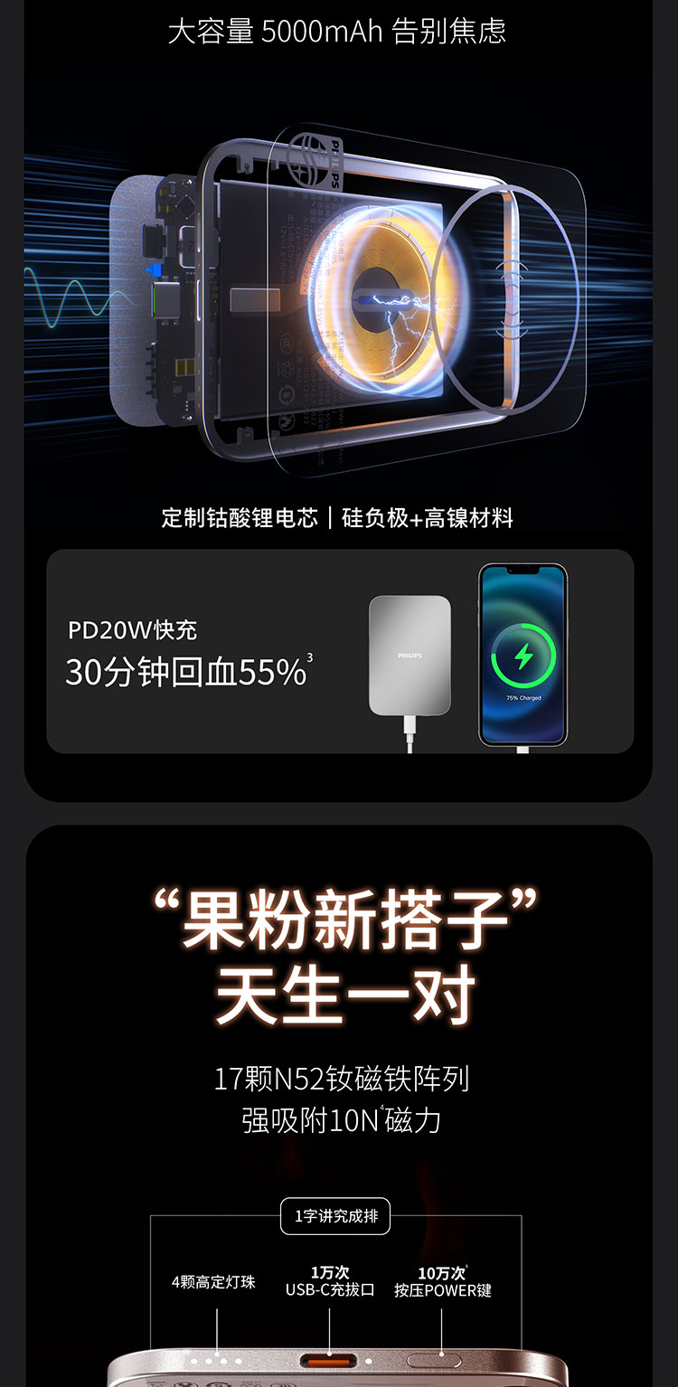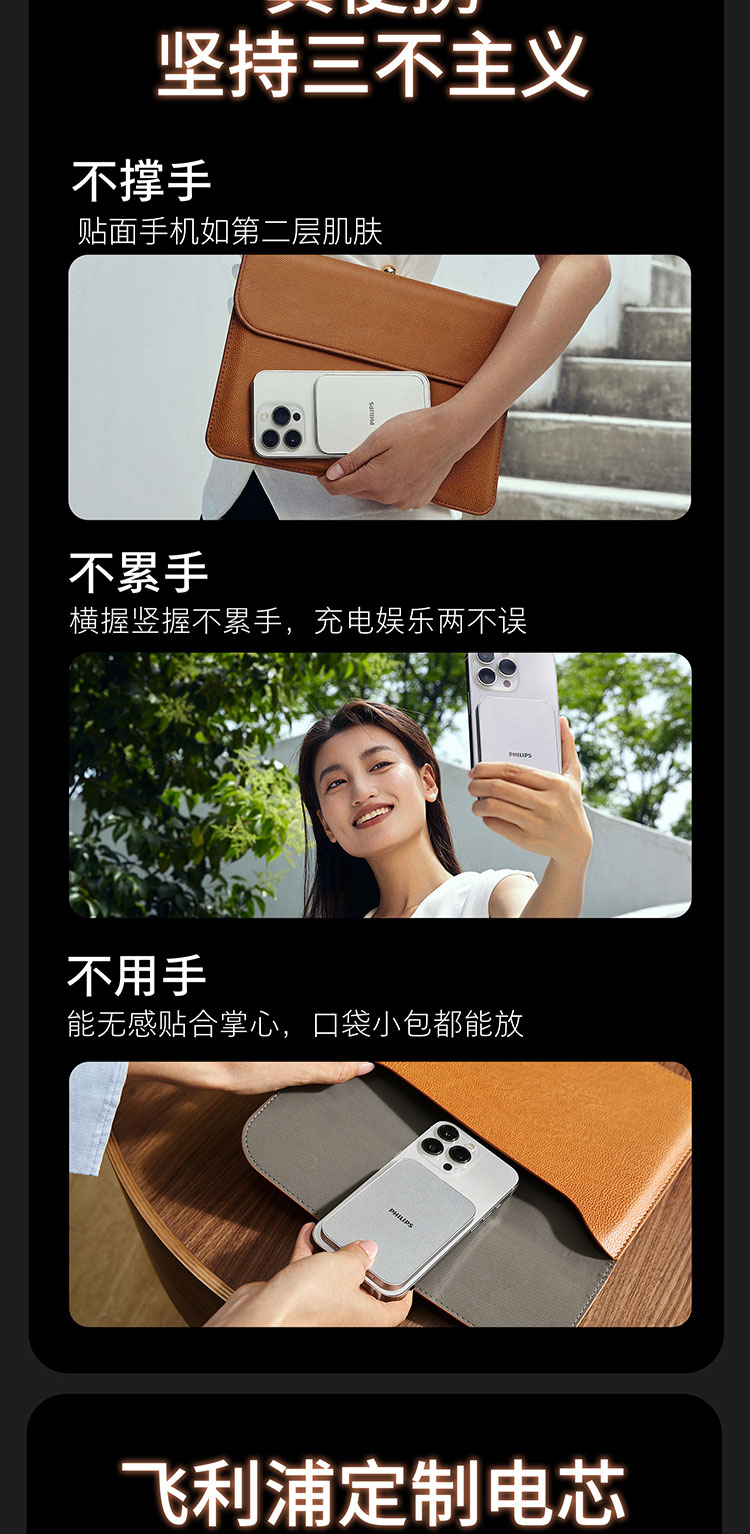 飞利浦(PHILIPS)磁吸充电宝可携带上飞机 3C认证 充电宝超薄5000毫安超轻薄充电宝超级快充无线快充迷你小巧便携 DLP9505 【0.75cm超薄磁吸】