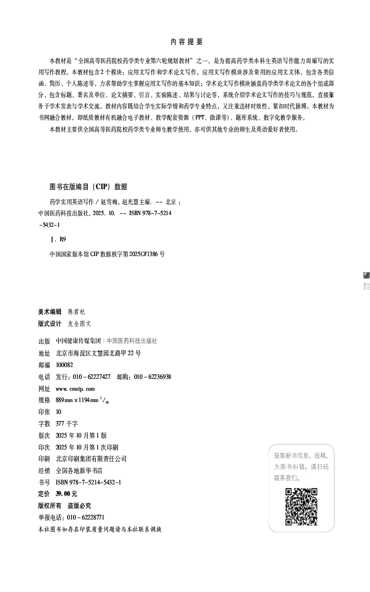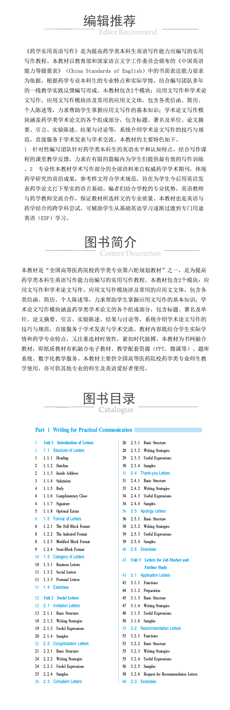 药学实用英语写作 全国高等医药院校药学类专业第六轮规划教材 赵雪梅 赵光慧 供药学类专业用 9787521454321中国医药科技出版社