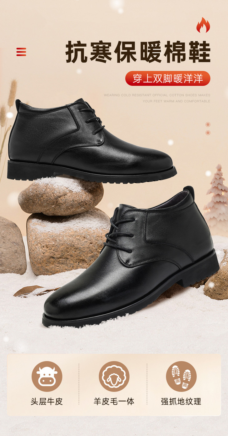 【牛皮羊毛抗寒棉鞋】羊皮毛一体牛皮皮鞋正装通勤加绒保暖棉鞋XM402