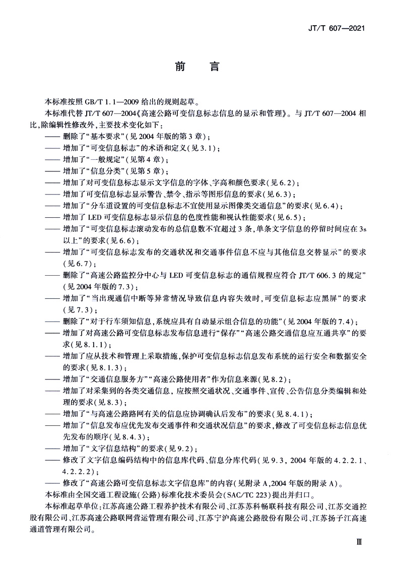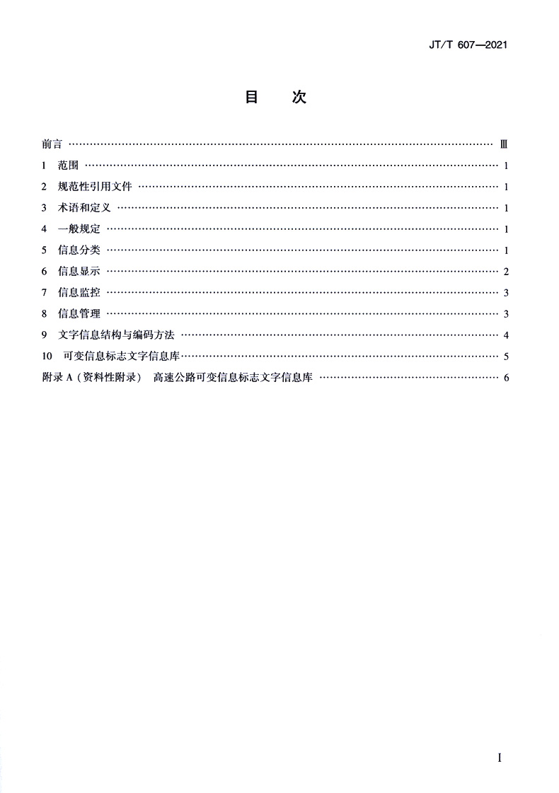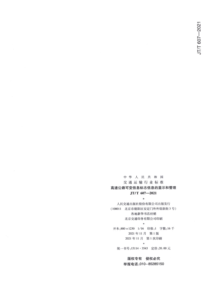 书名:高速公路可变信息标志信息的显示和管理(JT/T 607—2021)