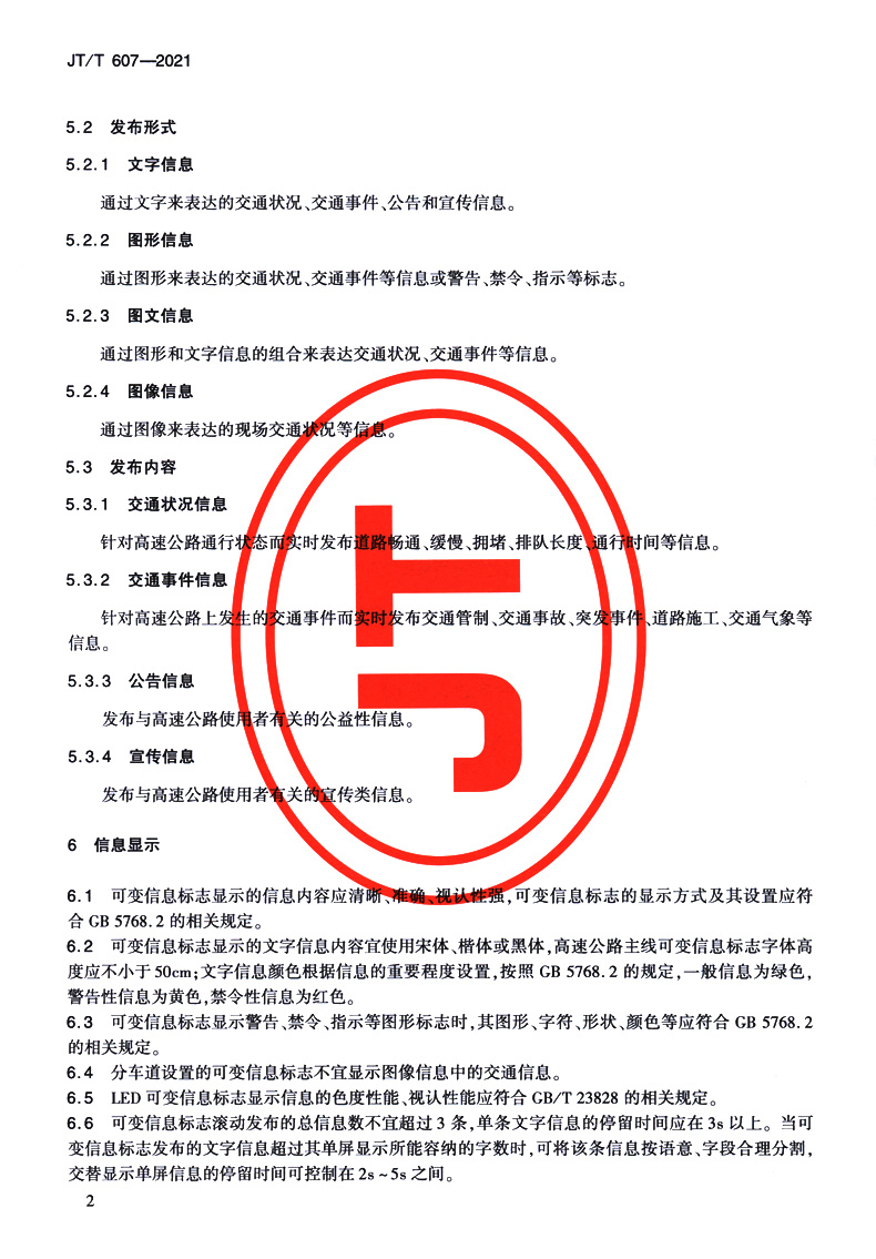 高速公路可变信息标志信息的显示和管理(JT/T 607—2021)