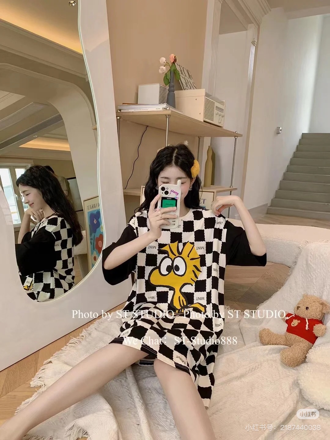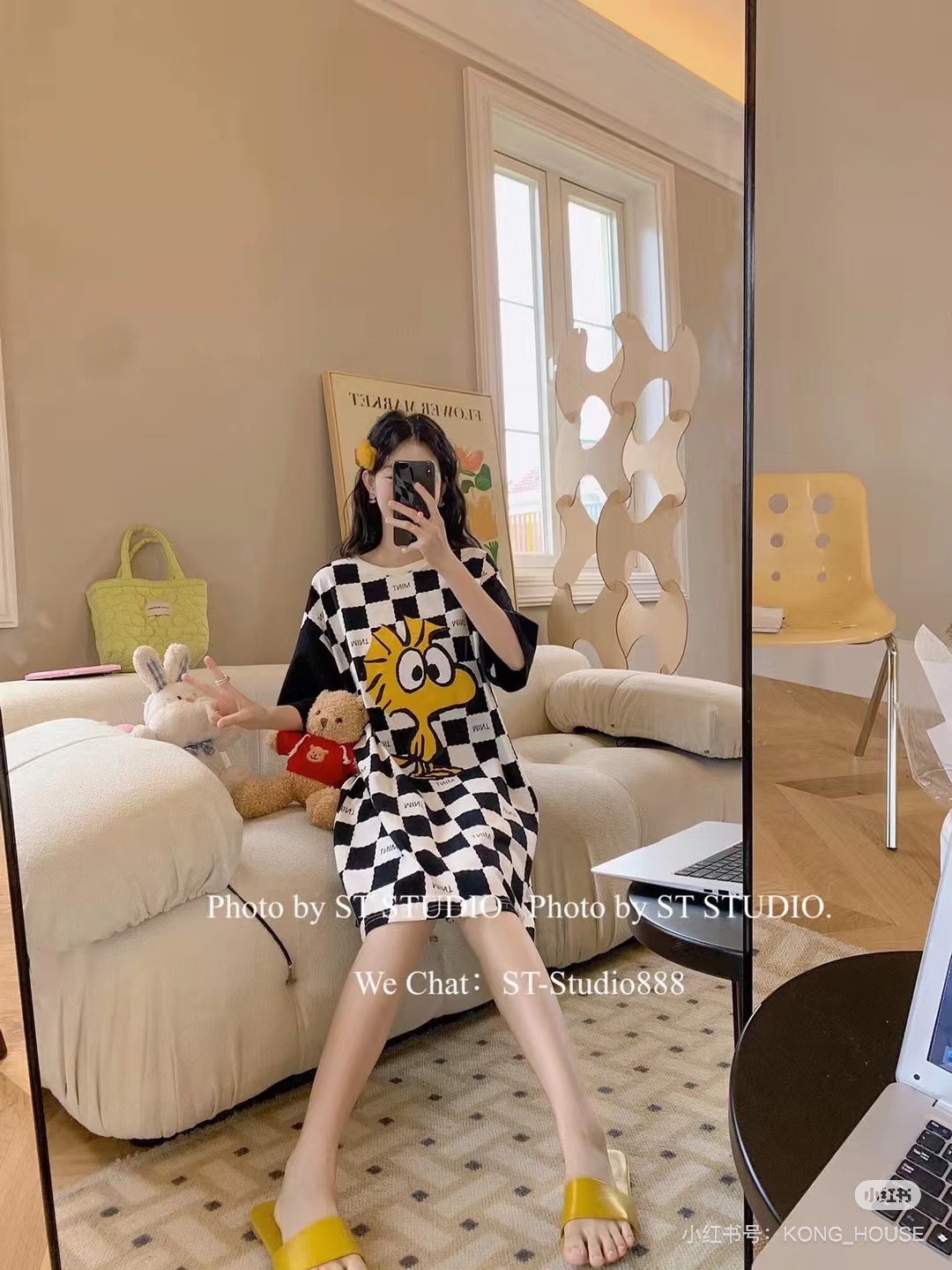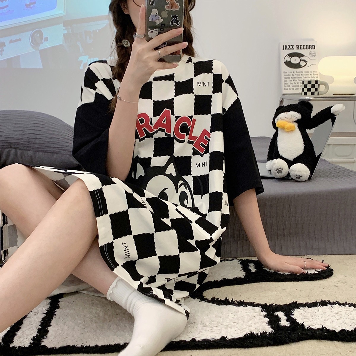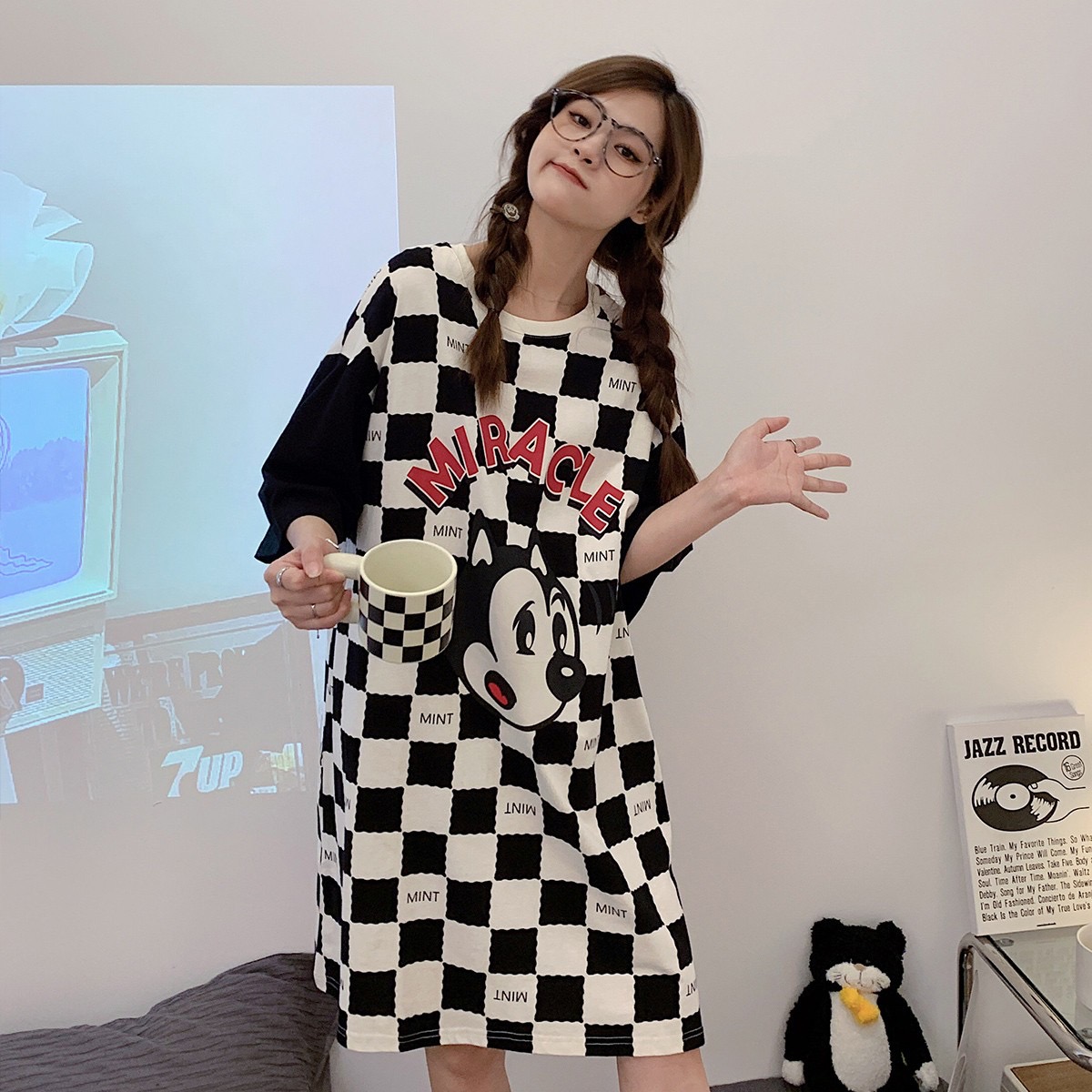 特!yso* 纯元,亲肤可爱棋盘格卡通纯棉睡裙~