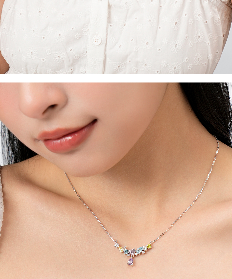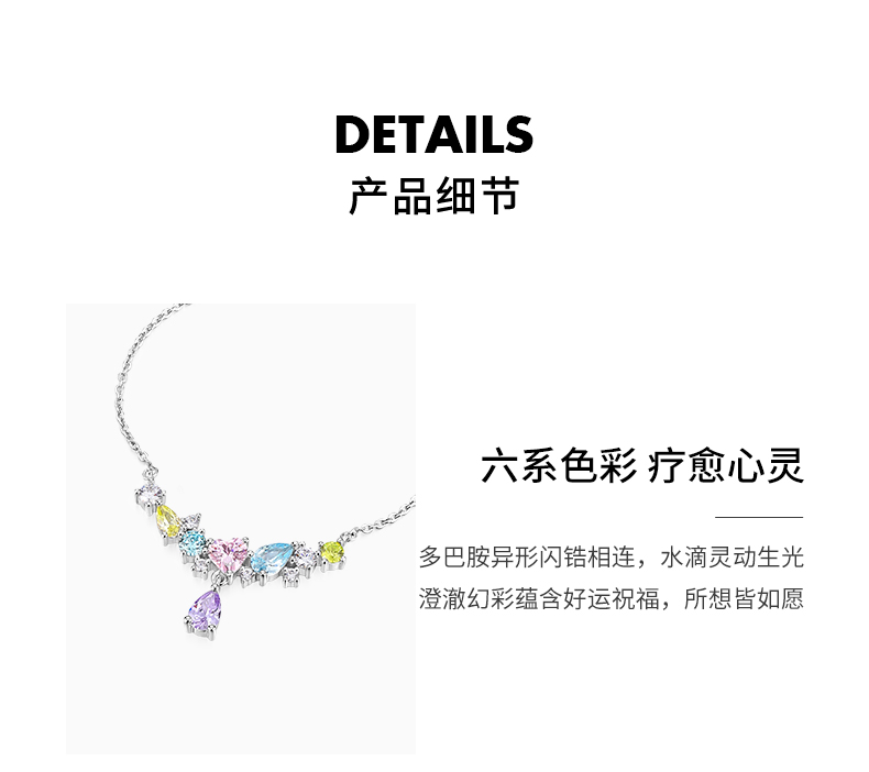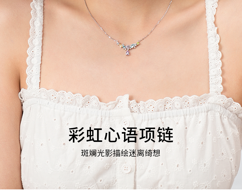 卡蒂罗/KADER 彩虹心语项链 夏日超闪多彩多巴胺色系 小众设计轻奢时尚气质可调节锁骨链 休闲甜美穿搭
