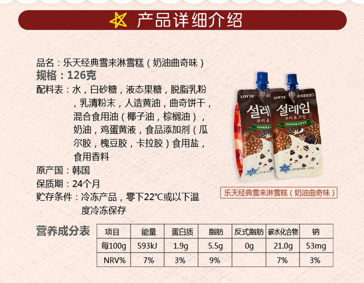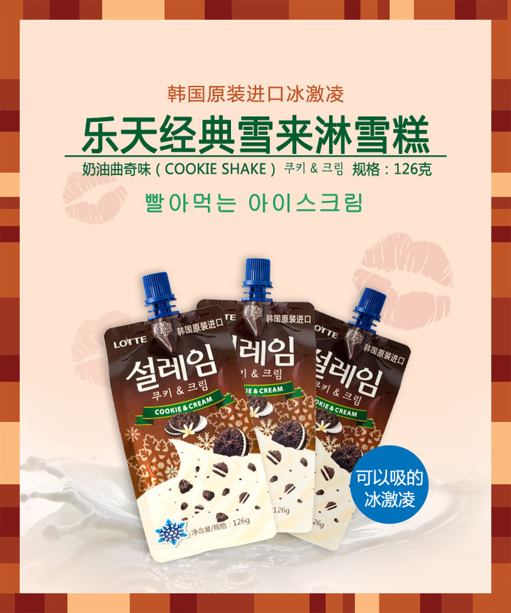 【捆绑】乐天 雪莱淋曲奇味125ml*5 【5묶음】 롯데 설레임 쿠키맛125ml*5