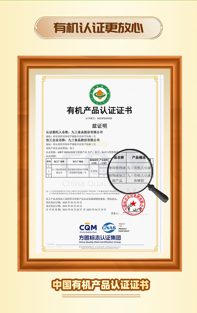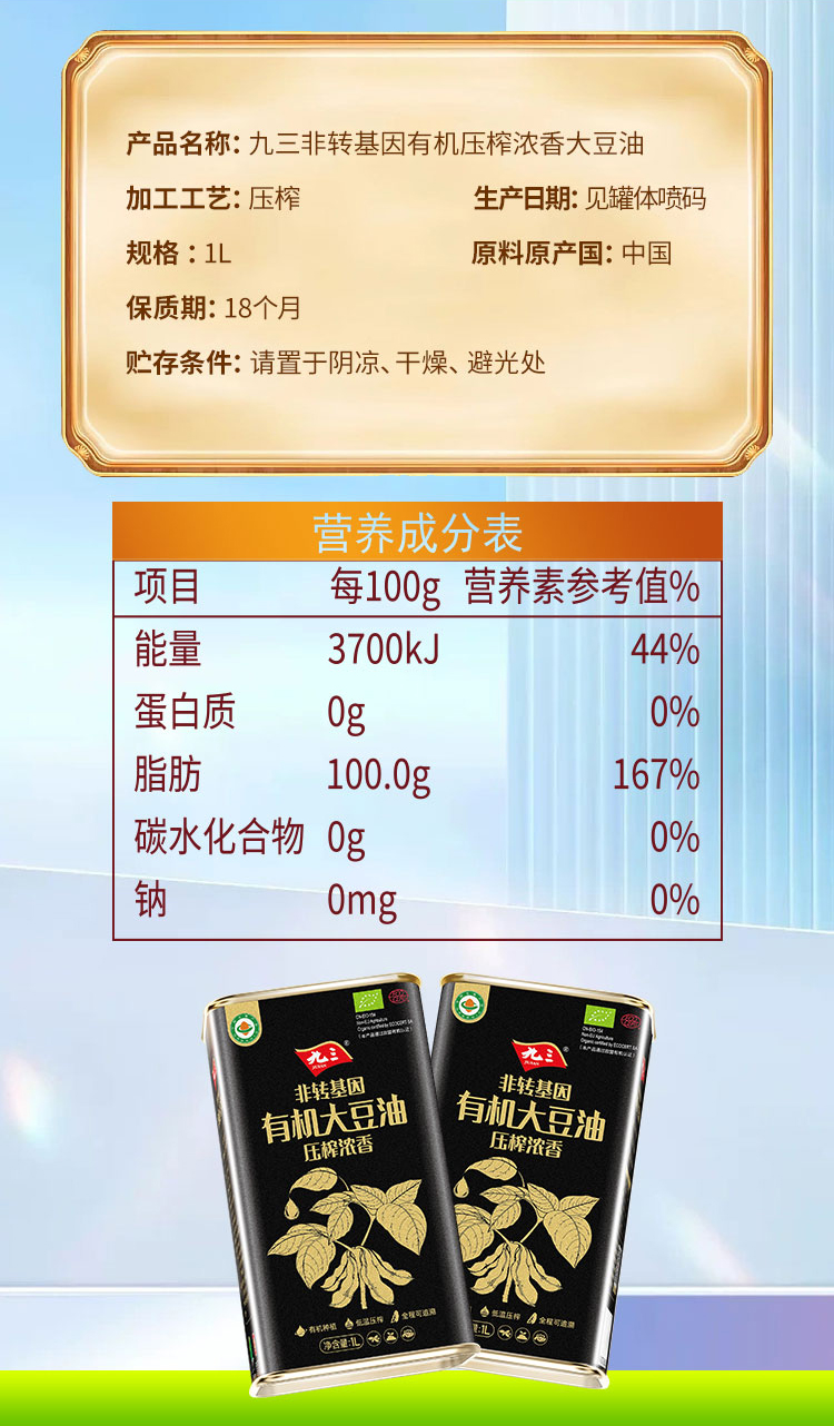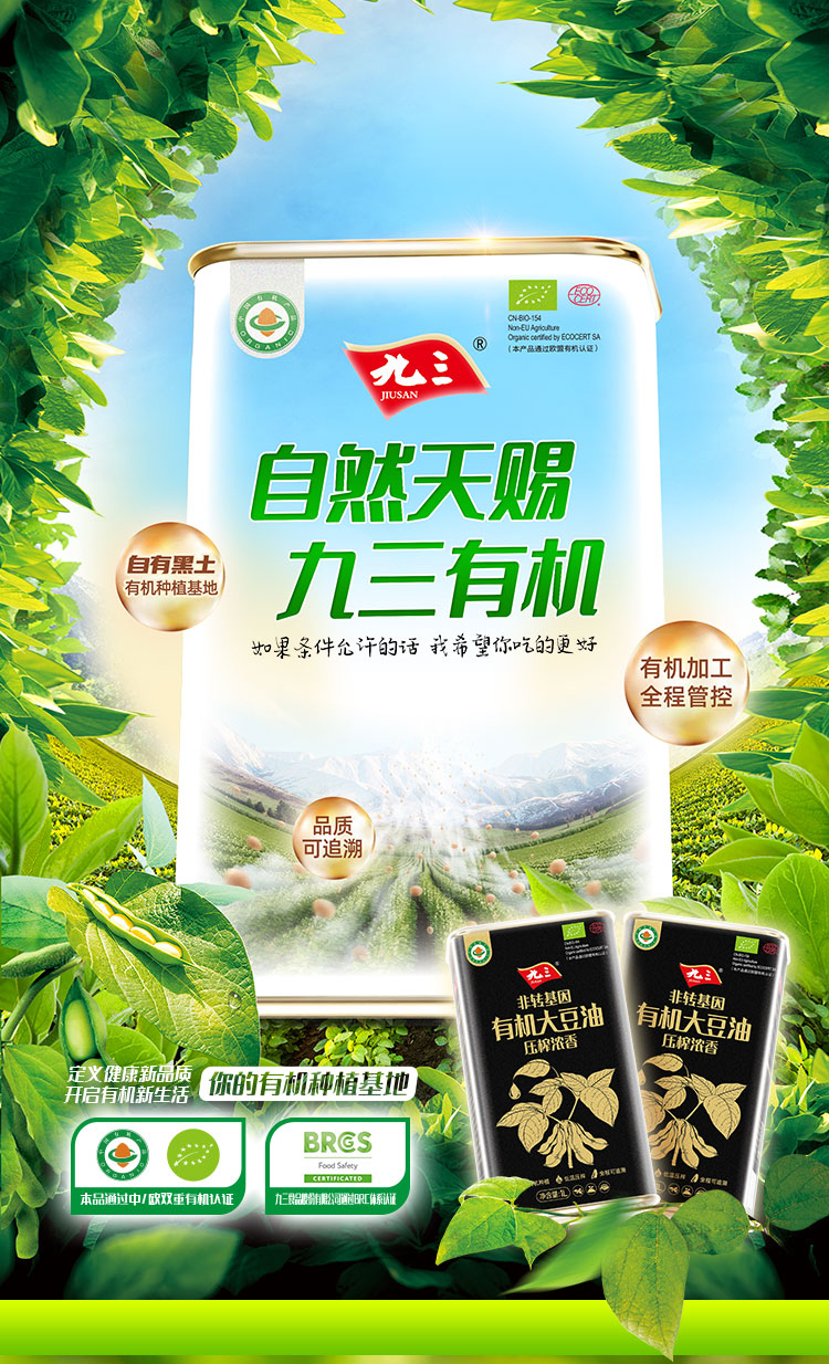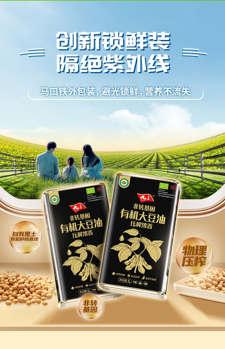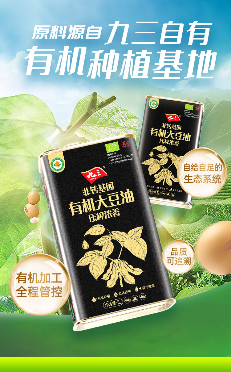 【中国农垦】九三非转基因压榨浓香有机大豆油1L