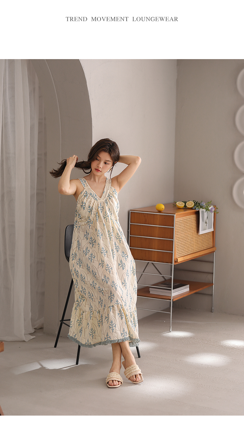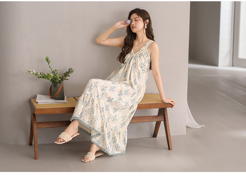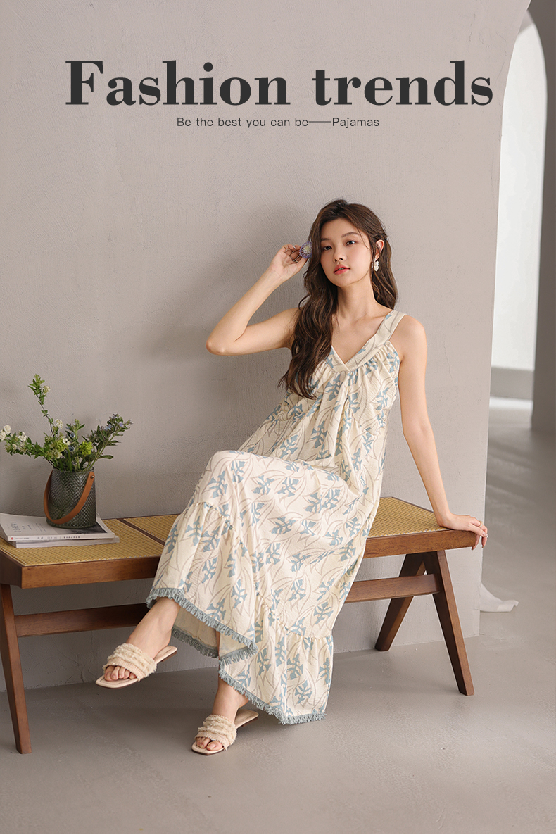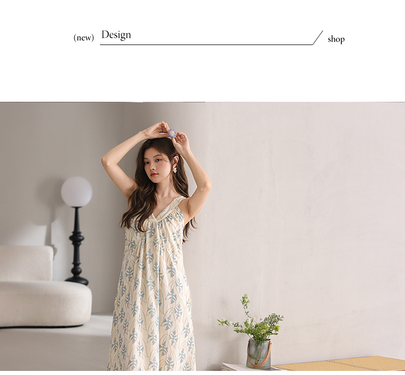 可人儿小众设计师新款泡泡绵女士睡衣夏季少女睡裙可外穿家居服