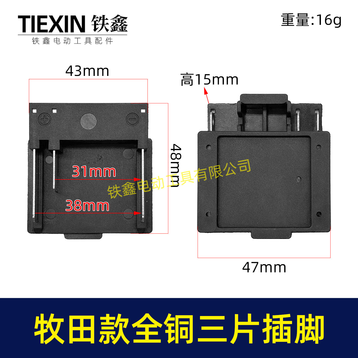 【货号08066】全铜牧田款锂电插脚三插脚三片全铜插脚磷铜插脚大电流锂电工具插脚
