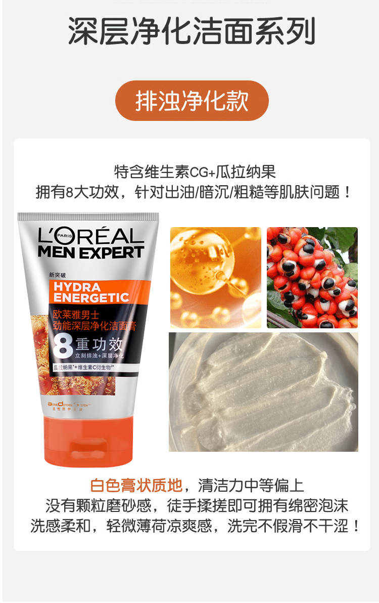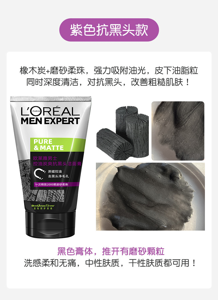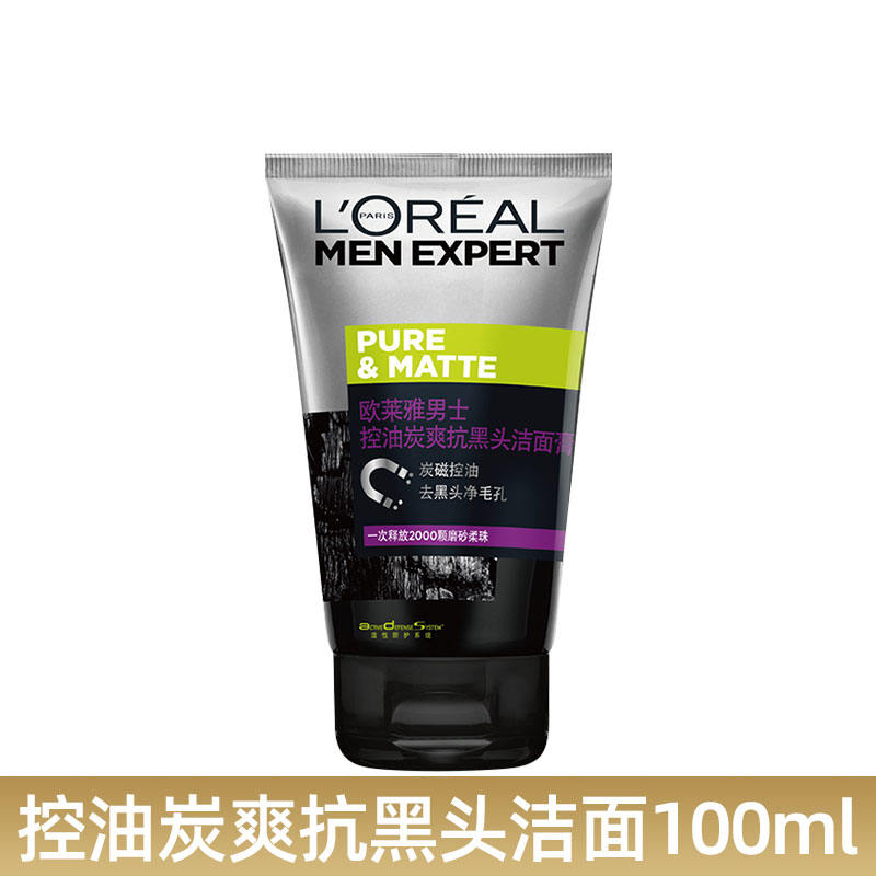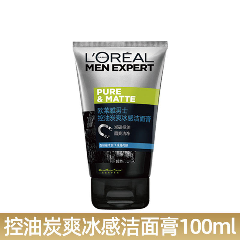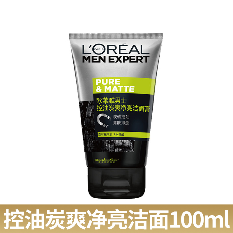 L'ORÉAL欧莱雅男士洁面膏100ml多款任选水能润泽双效火山岩清痘洁面膏洗面奶
