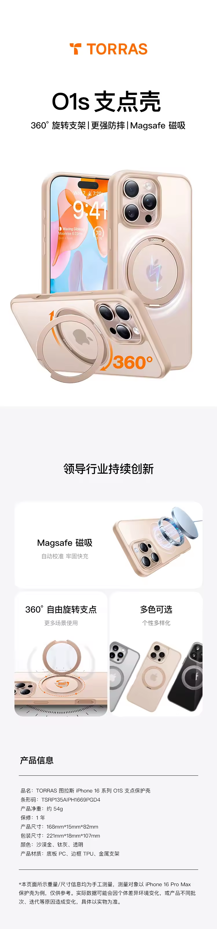 保护壳 iPhone 16 pro max 支架360度旋转磁吸 - 钛灰 - 图拉斯