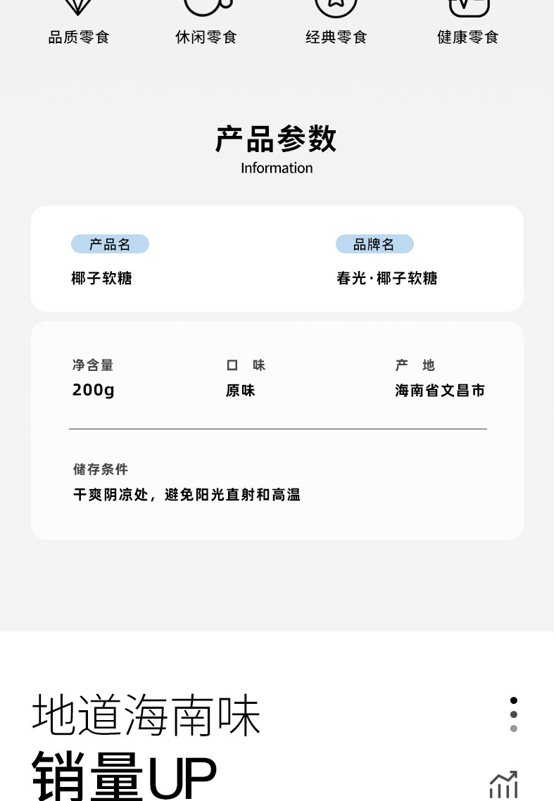 海南“著名手信品牌”春光食品,取材于海南椰子故乡,锁住北纬18°的新鲜美味。在这里,您能了解到春光食品旗舰店的最新优惠,享受优惠到不能说的价格。浓浓椰香,爱上春光!