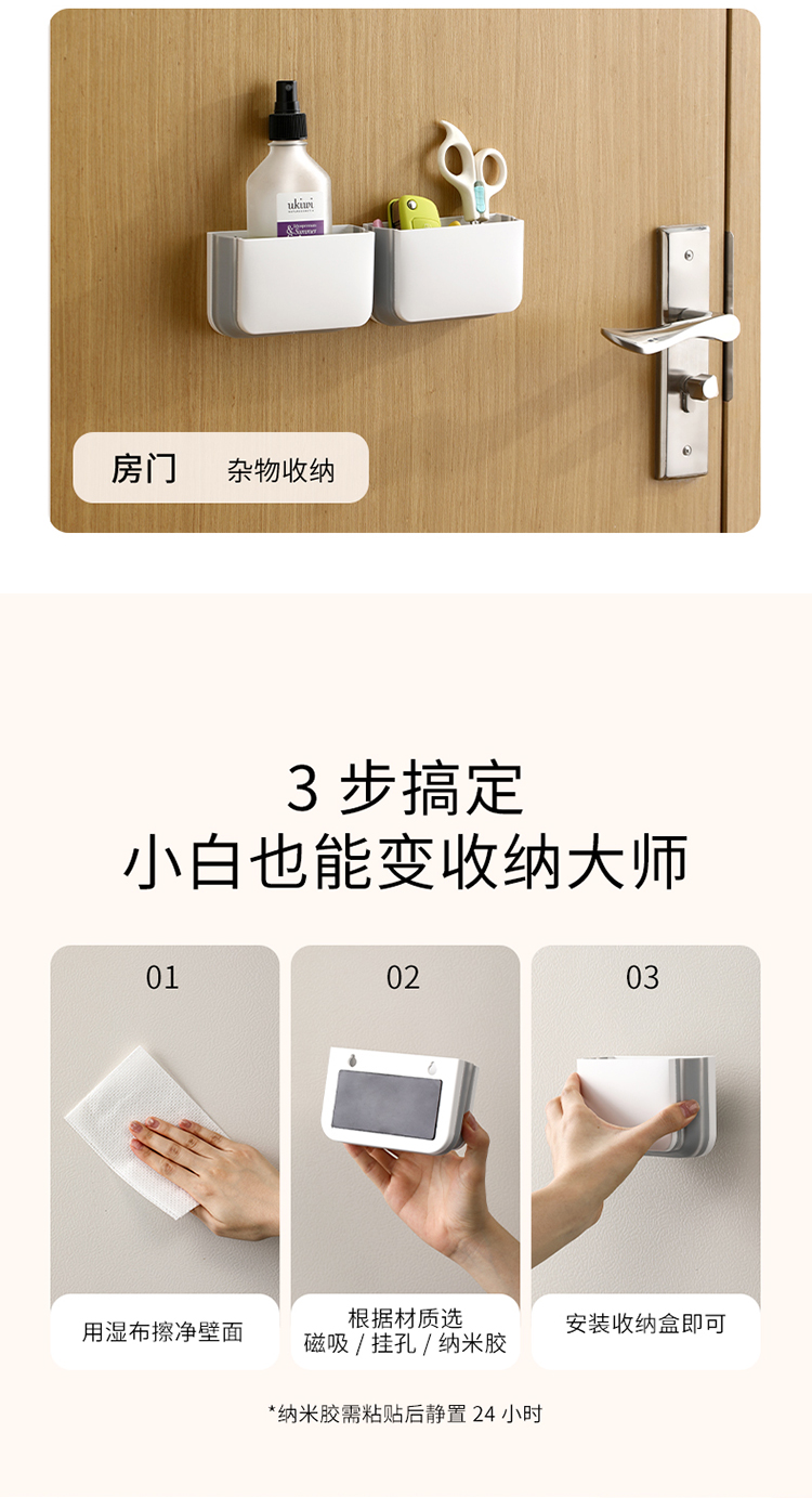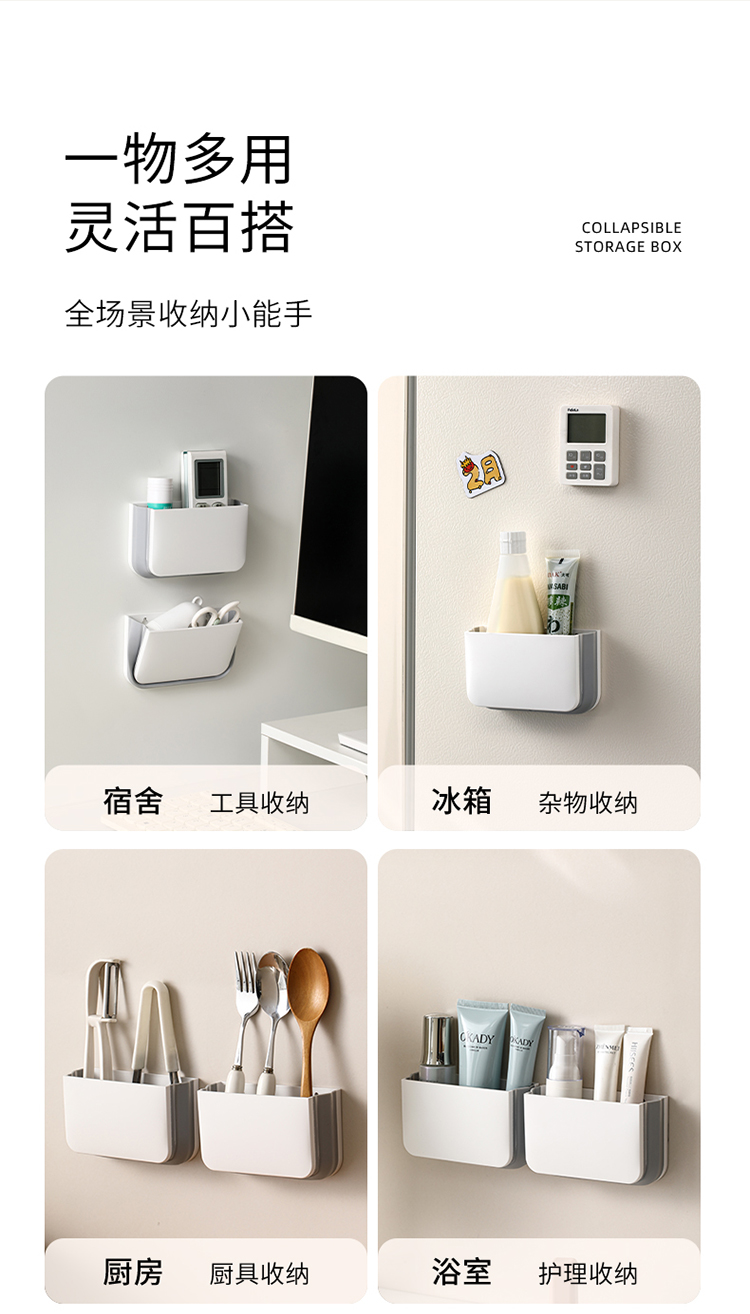 FaSoLa可折叠收纳盒磁吸壁挂式免打孔厨房收纳架浴室化妆品置物架